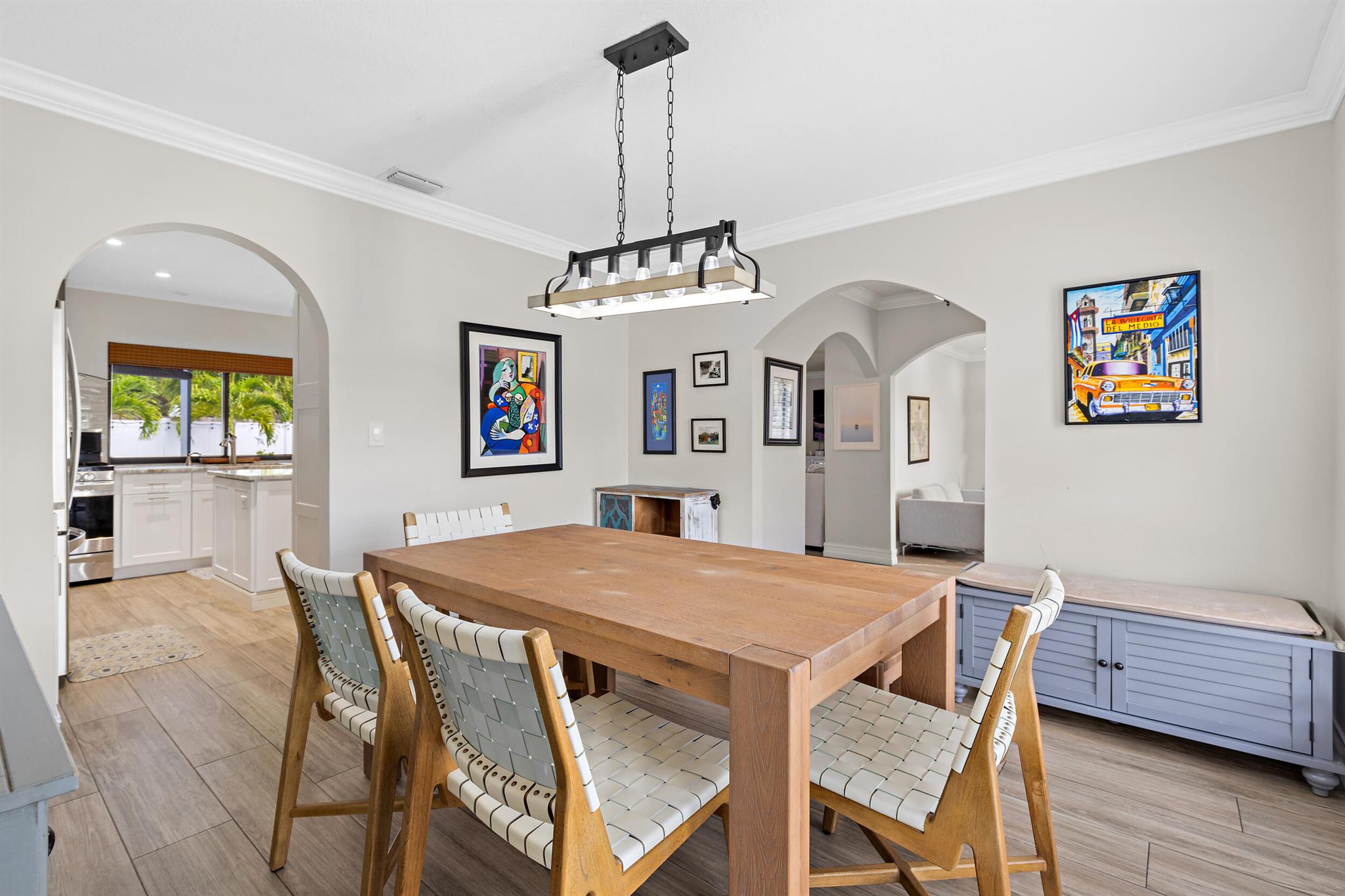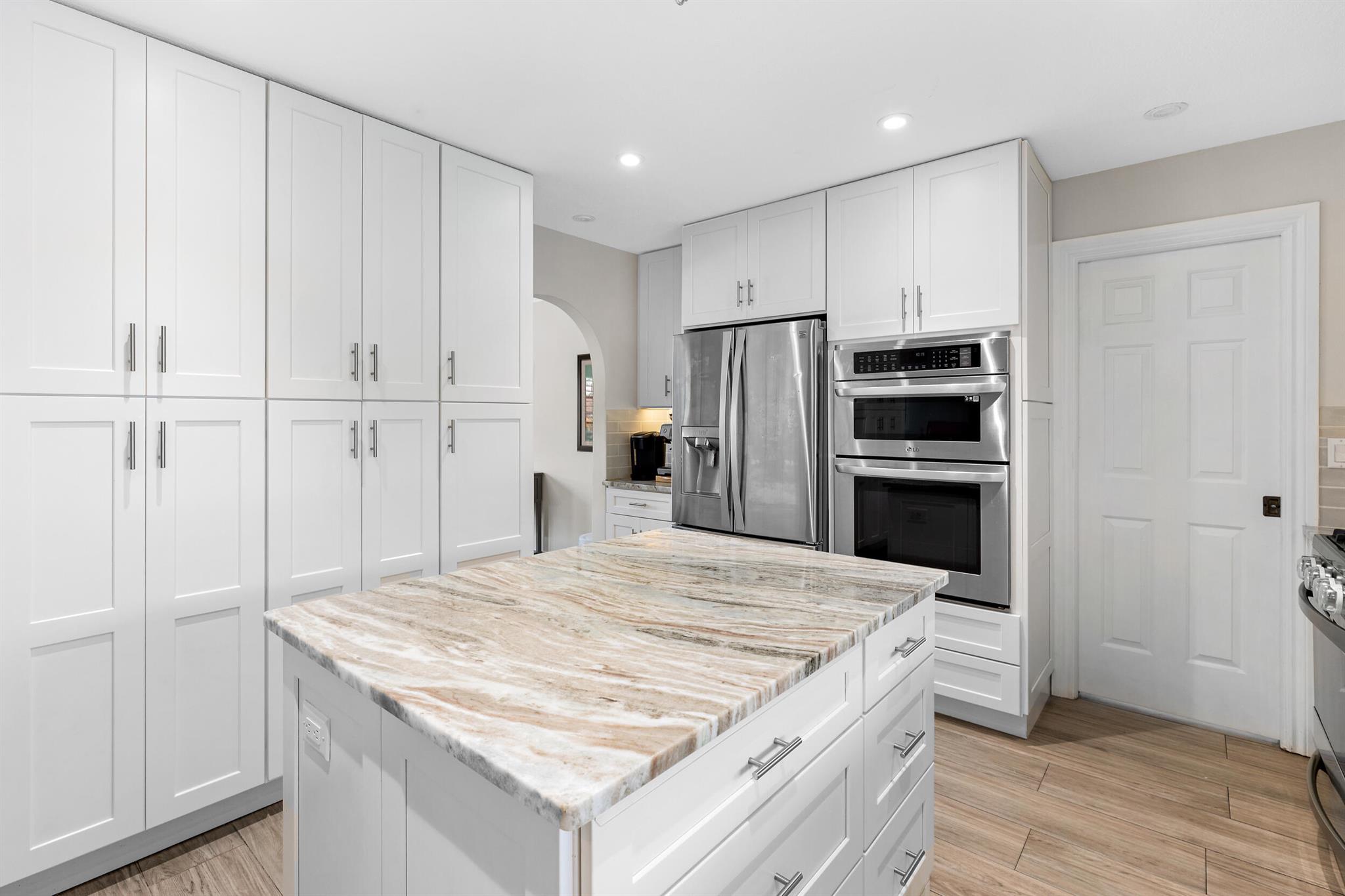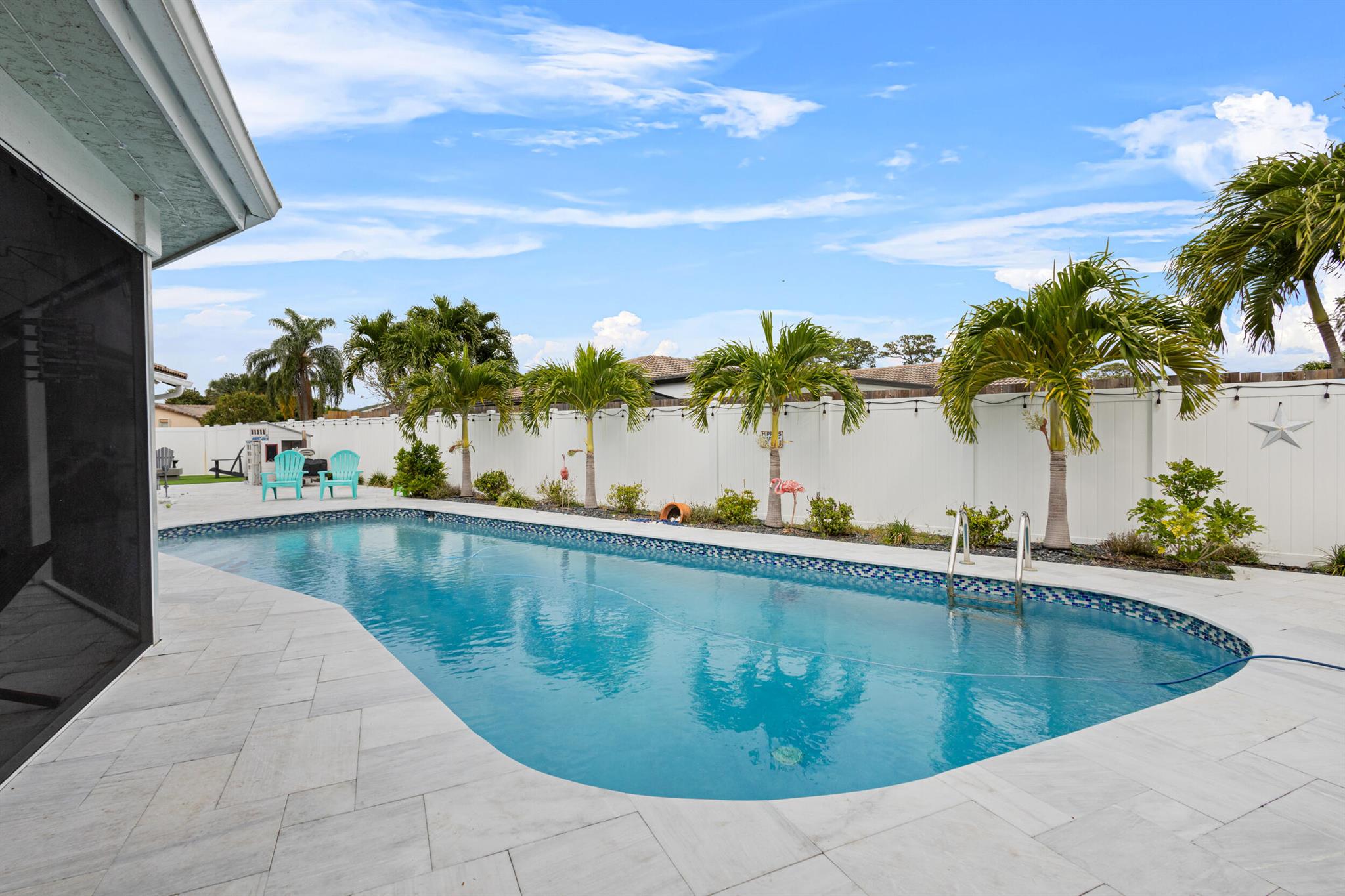 This 4-bed, 2-bath, pool home is updated throughout with over 2100 ft. of living space, 2-car garage & loads of storage! Oversize is the theme for this home. The spacious master suite overlooks the pool through a set of sliding glass doors, features his/her closets & walk in shower. In addition to the open concept kitchen & living area, you have an additional den/office and a formal dining room. Storage is not an issue with a wall of cabinets in the kitchen and the adjacent laundry room. This kitchen will not disappoint, compete with a generous size island, breakfast bar for four, gas range & large window overlooking the pool. Out back is set up for all occasions with a large screen patio, new travertine decking, new PVC fencing, multiple play areas & newly refinished pool.