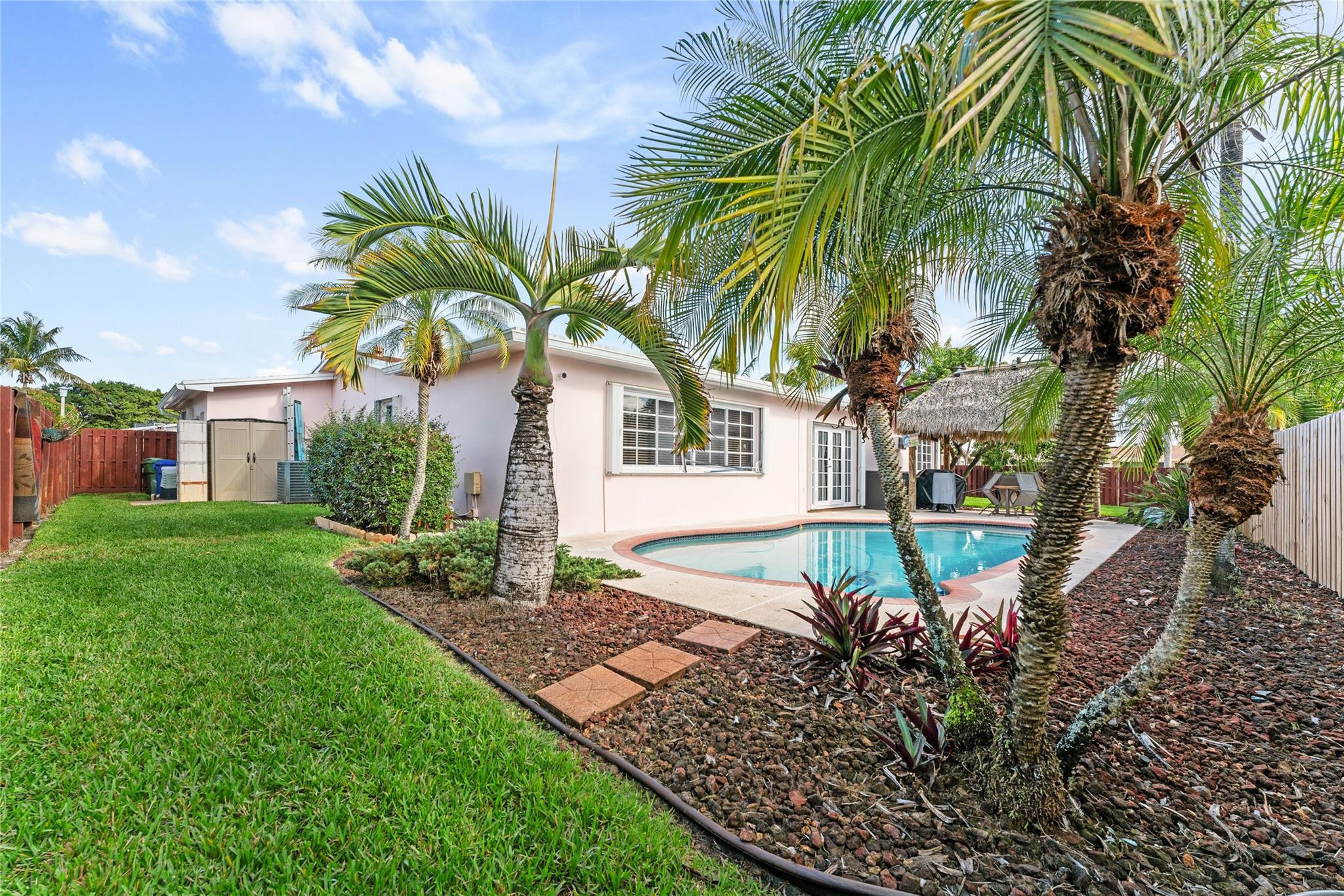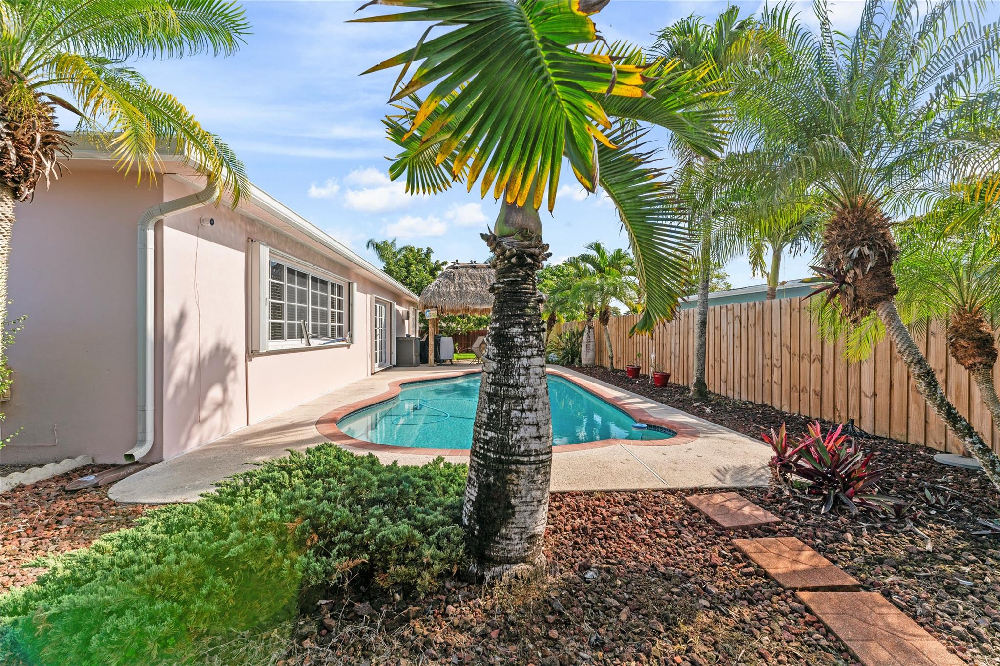 Discover the perfect blend of comfort, style, and outdoor living in this stunning 4-bedroom, 2-bathroom home on a spacious corner lot of over 10,000 sq. ft. One of the most significant under-air models at 2625 sq ft in the area, this property offers plenty of room for your family to live, entertain, and grow. The beautifully updated kitchen and bathrooms ensure modern convenience, while recent upgrades, including a new roof and AC installed in 2020, give you peace of mind. Step outside to your private oasis featuring a sparkling pool, a charming tiki hut, and a well-manicured lawn, perfect for hosting gatherings or simply soaking in the Florida sunshine. The fresh exterior paint and meticulous landscaping add to the home’s curb appeal, making it truly move-in ready.?