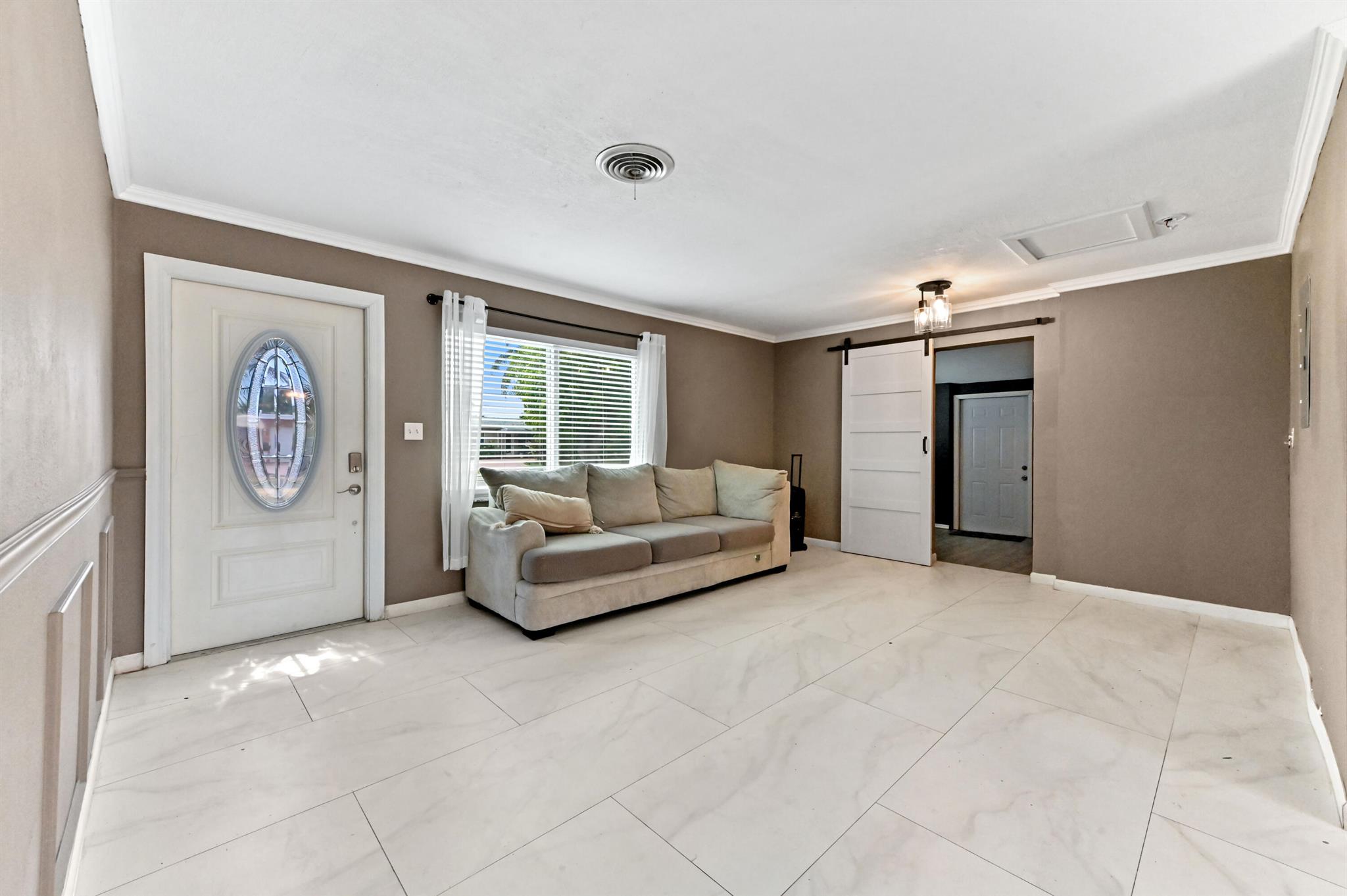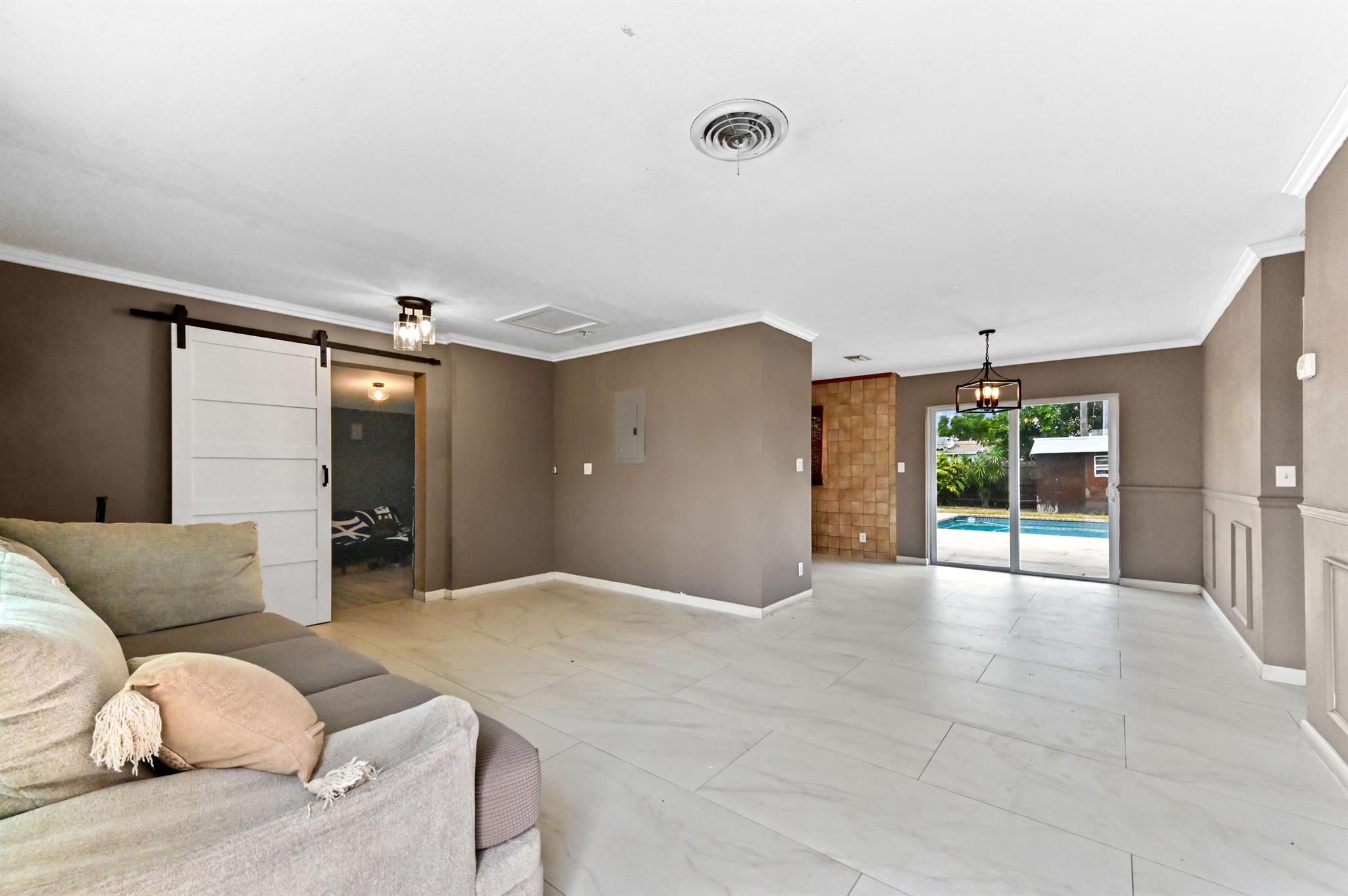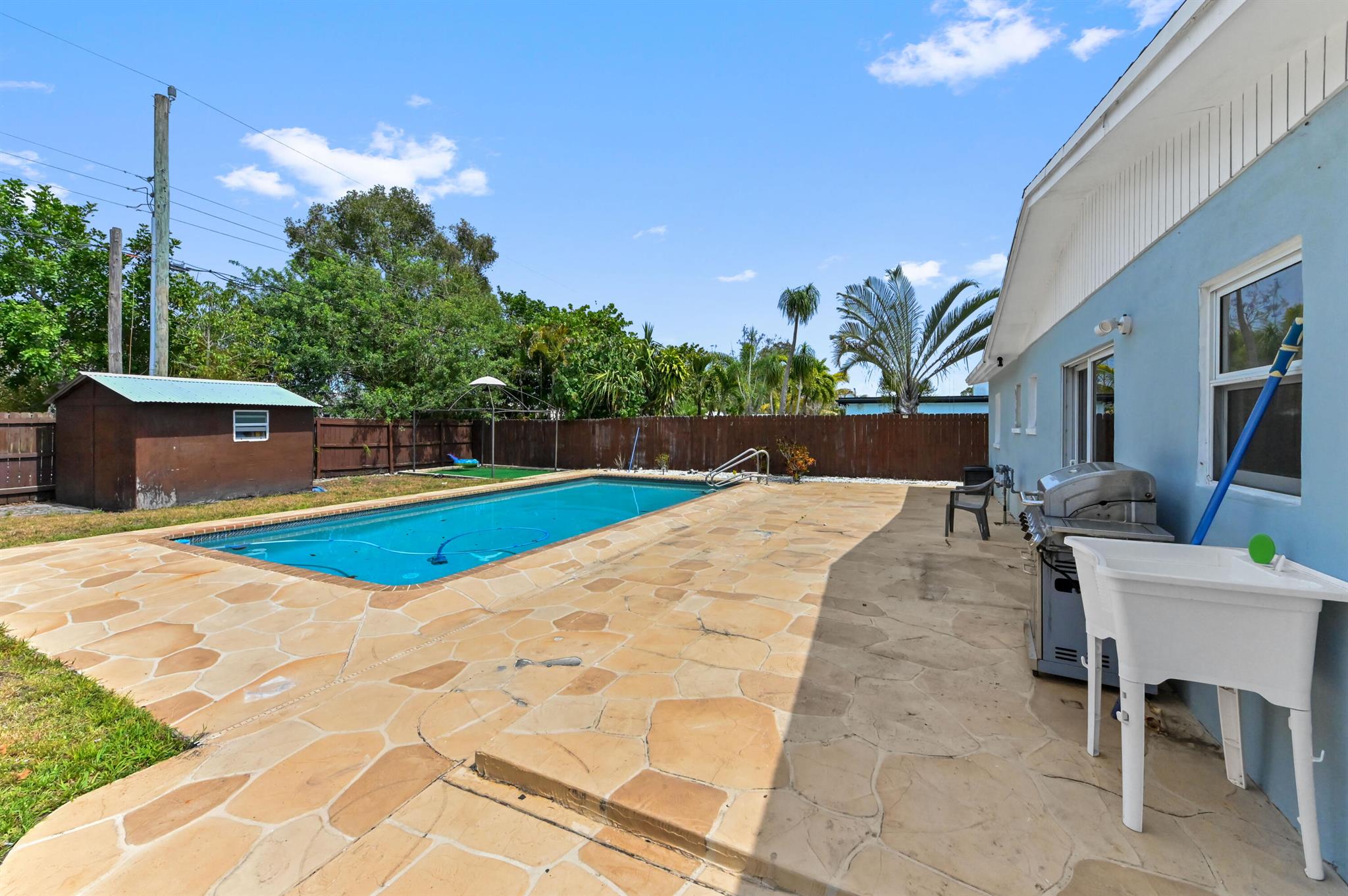 Discover the perfect blend of comfort and convenience in this charming 4-bedroom, 2-bath pool home nestled in the heart of Greenacres. This home boasts spacious living areas with large tile flooring, impact windows and doors and a new roof creating an inviting atmosphere. The open kitchen seamlessly connects to the dining area, where sliding glass doors provide effortless access to the sparkling pool--perfect for indoor-outdoor living and entertaining.