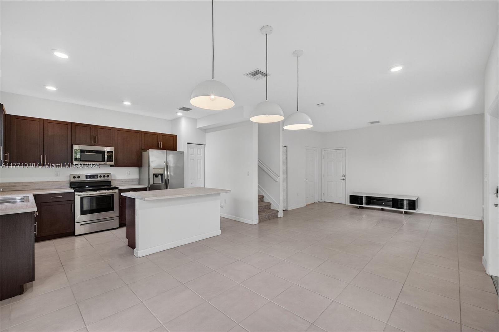 Just under 1900 sq ft of living space in this open concept 3/2.5 + den/office/or 4th bedroom. High ceilings and tile flooring throughout the first floor. Expansive kitchen featuring large center island, wood cabinets, and s/s appliances overlooking the spacious family room. Large primary suite with big walk-in closet and updated primary bath featuring dual sinks and walk-in shower. Big secondary bedrooms. Enjoy BBQ or morning coffee on your fenced in backyard patio. Full Hurricane protection, Low HOA, and minutes to 595 and Turnpike.