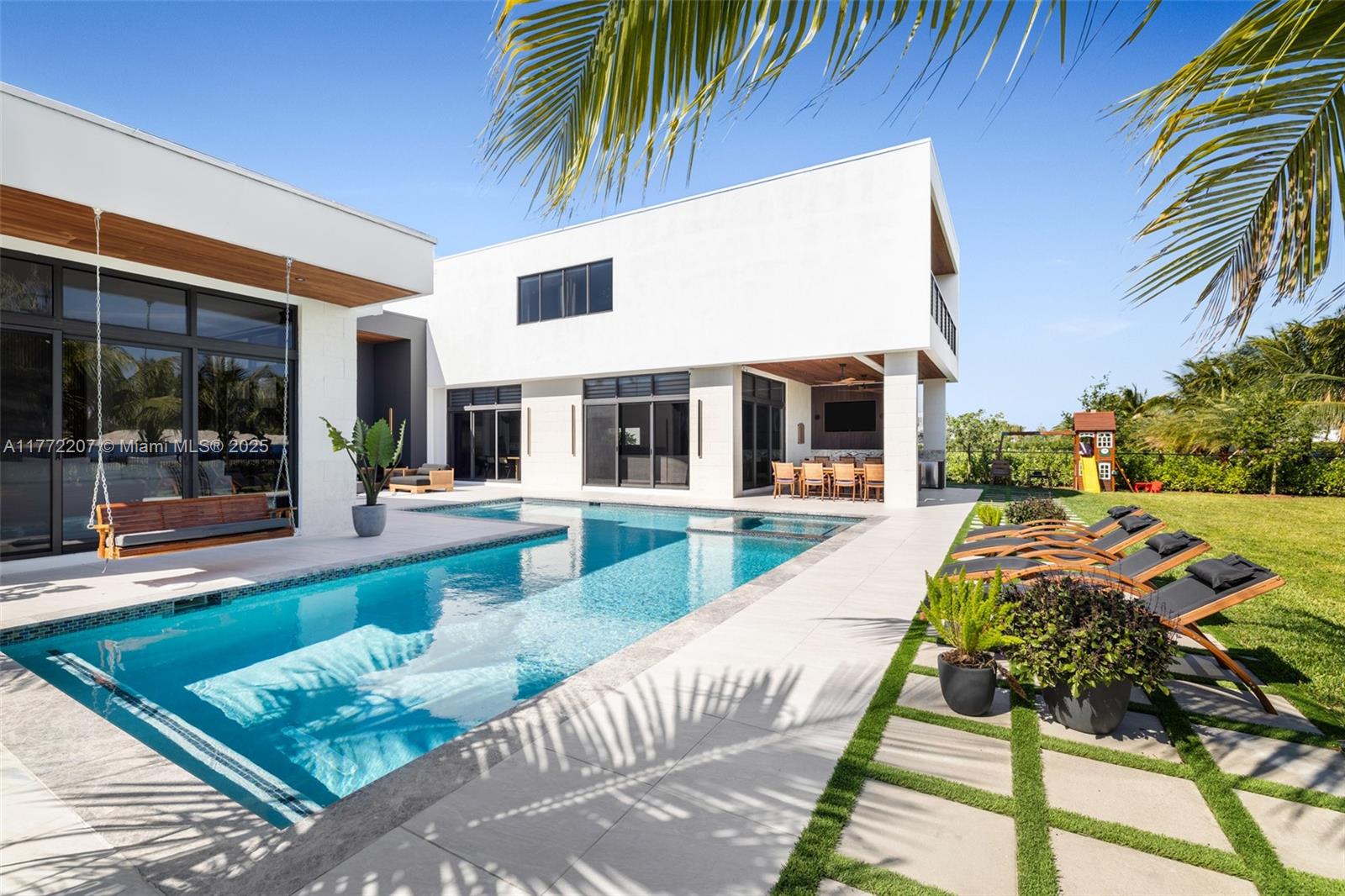 Welcome to this exquisite corner-lot residence, surrounded by water for exceptional privacy and tranquility. Step inside to 14-foot ceilings, a spacious living area and formal dining room with floor-to-ceiling windows framing the pool and garden. Designed by architect Oppenheim, this home includes a chef’s kitchen with Subzero/Wolf appliances, wine storage and two large pantries. The layout offers a media room, guest suite and maid’s quarters. Upstairs, a lounge leads to the primary suite and three en-suite bedrooms. The backyard is an entertainer's dream with a pool, outdoor shower and summer kitchen. Additional highlights include a four-car garage, guest parking & gated security in one of Weston’s premier communities close to top schools, parks, dining and shopping.