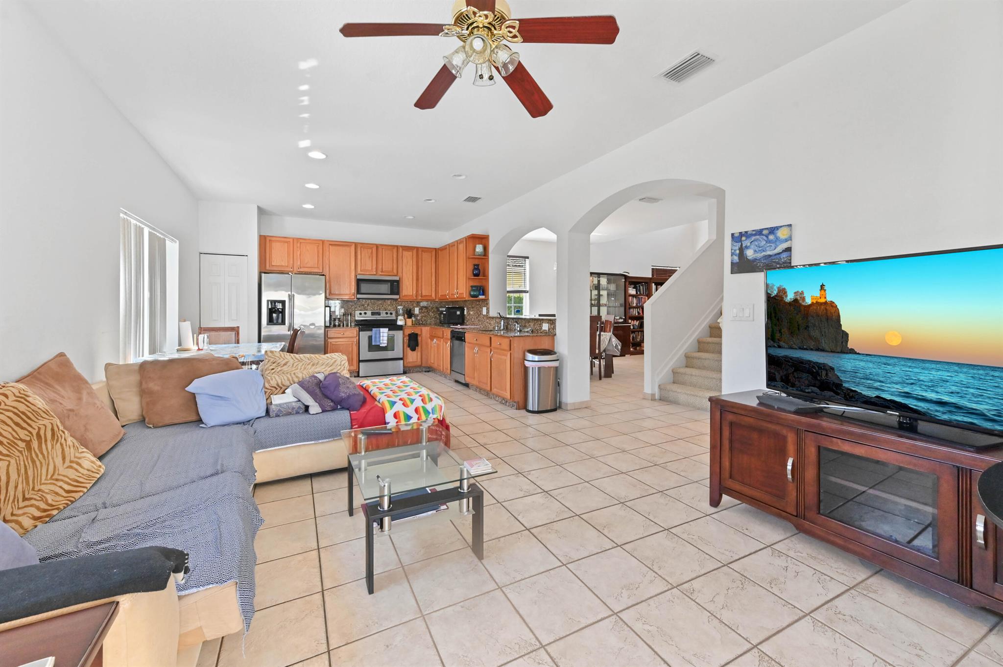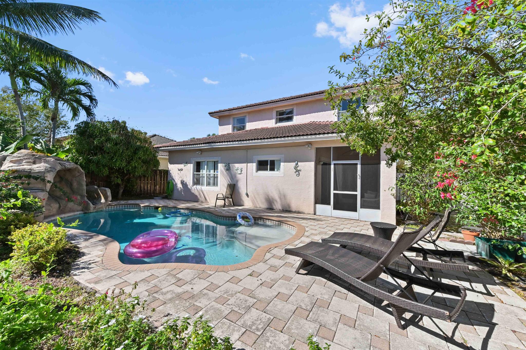 Welcome to this beautiful 2-story home in the gated community of Walnut Creek. With 2,318 sqft of living space, this home offers 4 spacious bedrooms and 3 bathrooms, perfect for family living. Enjoy a 3-car attached garage for ample parking and storage. The main level features a bright and open living and dining area with tile flooring and carpet in bedrooms.The home boasts several upgrades, including a new AC system (installed 2-3 years ago) and a heater for the pool. The covered and screened patio overlooks a fenced backyard with a sparkling pool, ideal for relaxation and entertaining.