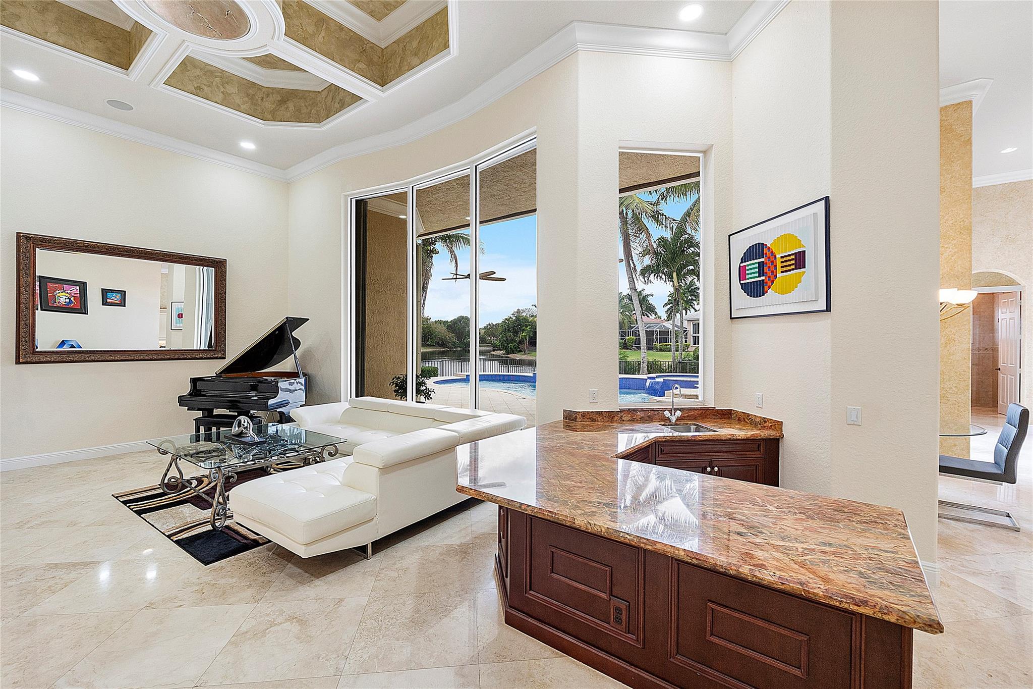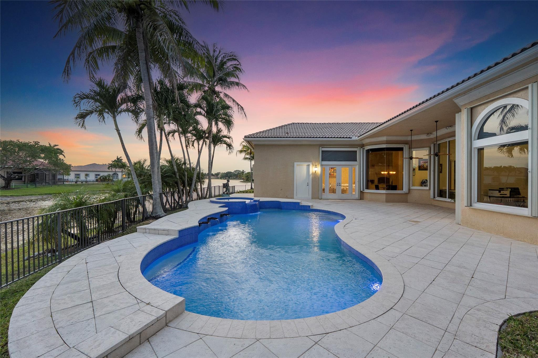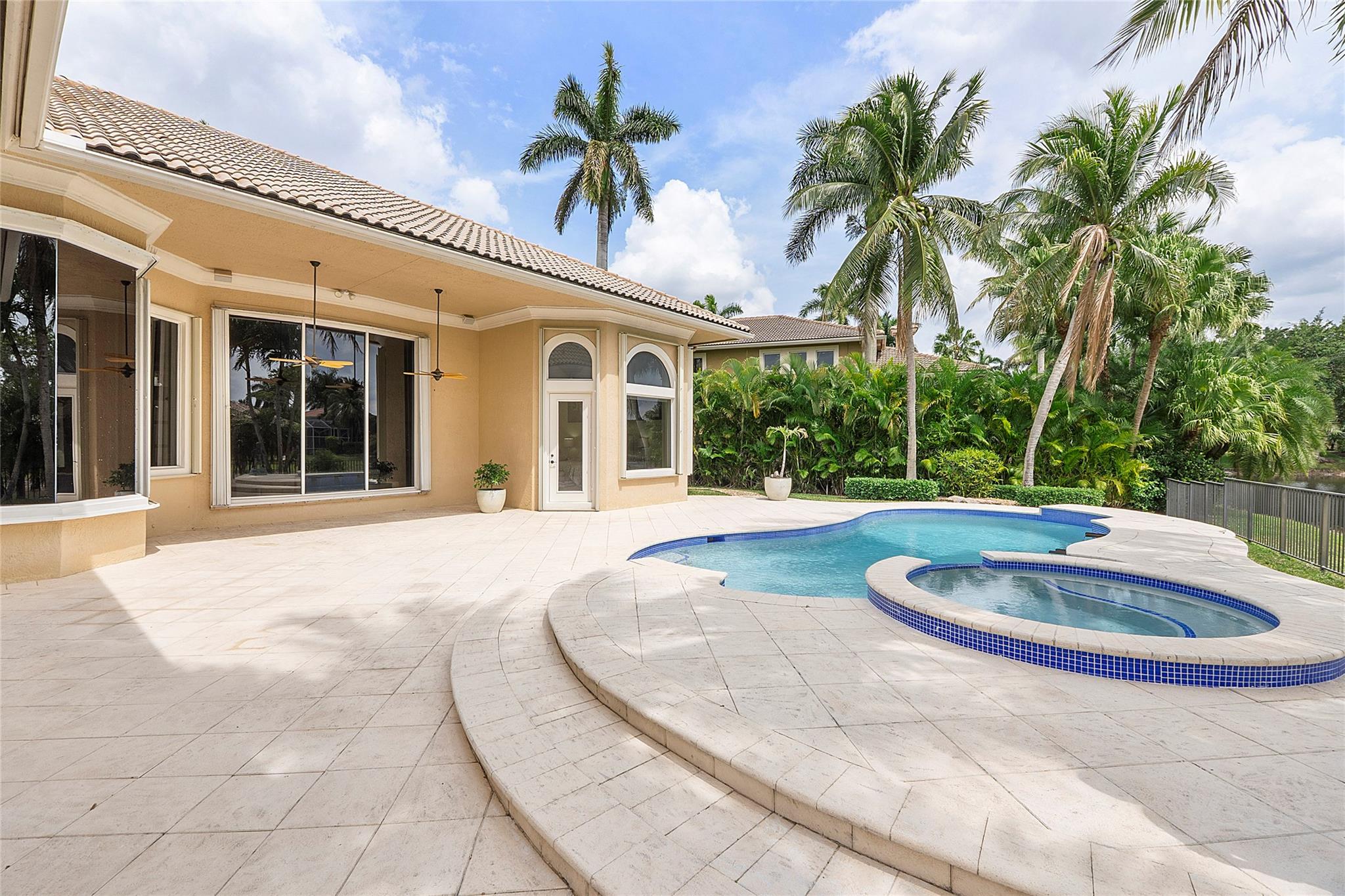 "The Falls" The first double gated custom designed community in Heron Bay, Double security gates to get through for extra privacy & security, The Courtyard is also Gated at the front of the home, This luxury hidden subdivision surrounds a small island of waterfall & lakes, Custom built 4 way split open floor plan home, Brand new roof (paid by seller) installing April 25, New sapphire modern resurfaced heated oversized pool with multi color LED lighting, Hurricane impact windows & doors, 3 newer A/c units, Newly polished Creme de Marfil marble flooring, European country kitchen & top of the line cabinetry, Huge rooms with wet bar & carved built-ins, High custom 14 foot ceilings & crown moldings throughout, 15,508 sq foot oversized pie shape fenced lot overlooking a serene quiet water lake,