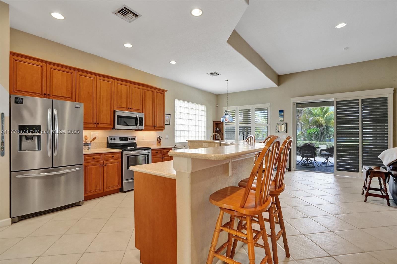 Original Owner in this very well cared for 1 story home w/ high volume ceilings! It's a neutral palate with great open spaces that flow perfectly! Serene water views from your MD, LR & Good morning rm! Crown Molding on wood cabinets. Stainless steel appliances & corian counters. Tiled in the main living area & wood floors in the bdrs & formal dining room! Split bedroom design where one room is used as a den! Plantation & Accordion Shutters! Fully fenced yard off of extended covered patio! 3 separate gated entrances! Heron Bay community features 2 resort style pools, fitness centers, 2 Clubhouses, library, sauna, meeting rooms, outdoor tennis, pickleball, racquetball & so much more! Walking paths envelopes the whole community with magnificent sunsets on the border of the Everglades!!