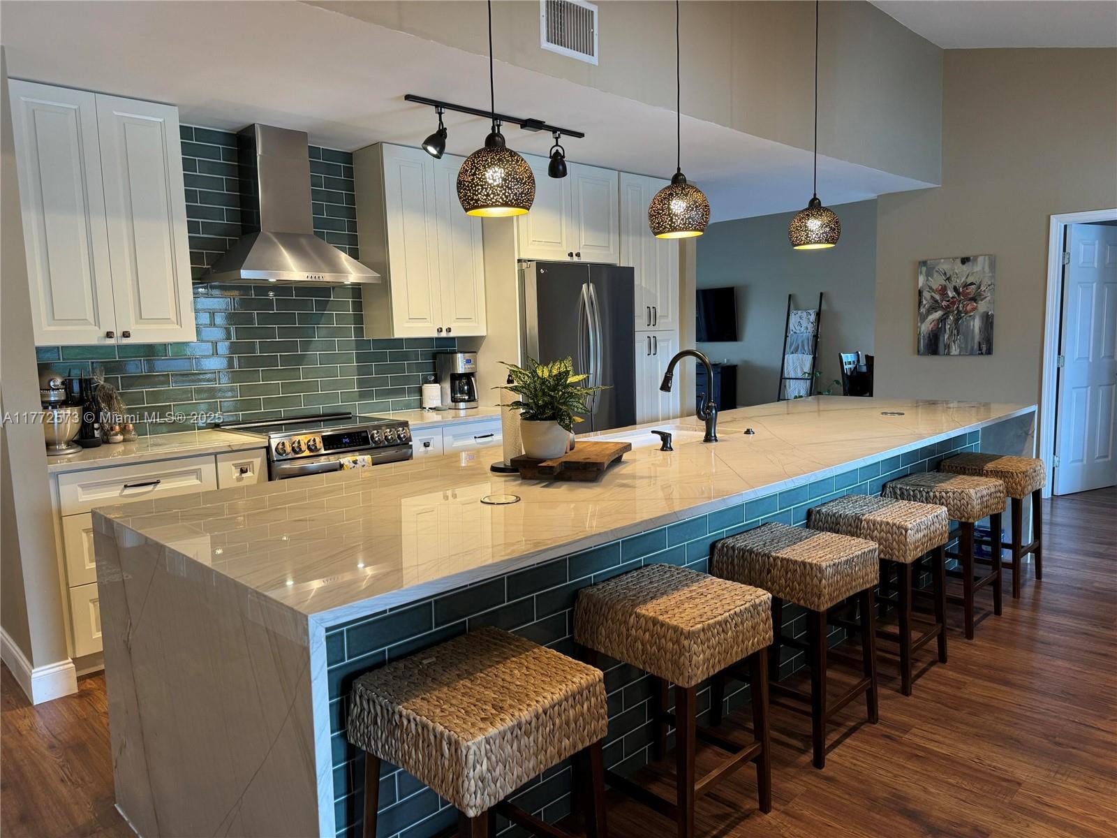 Stunning 4-bed/2-bath with den, 2-car garage, luxury finishes, and vaulted ceilings on large corner lot. Fully remodeled and prewired for home automation, built-in audio/visual system inside and out. Expansive open floor plan, two living areas, large kitchen featuring 14-foot island with waterfall quartzite stone, oversized cast iron sink, and new appliances. Master suite with walk-in closet and wet room. Split bedrooms. French doors lead to resurfaced pool, outdoor wet bar, television, and shower. Laundry room with front-load W/D, deep soaking sink, and storage. Impact windows /doors. New tankless water heater. Full house water filter. Electric car charger. A/C 3 years. No HOA. Close to schools, grocery, shopping, dining, and Sawgrass Expwy.