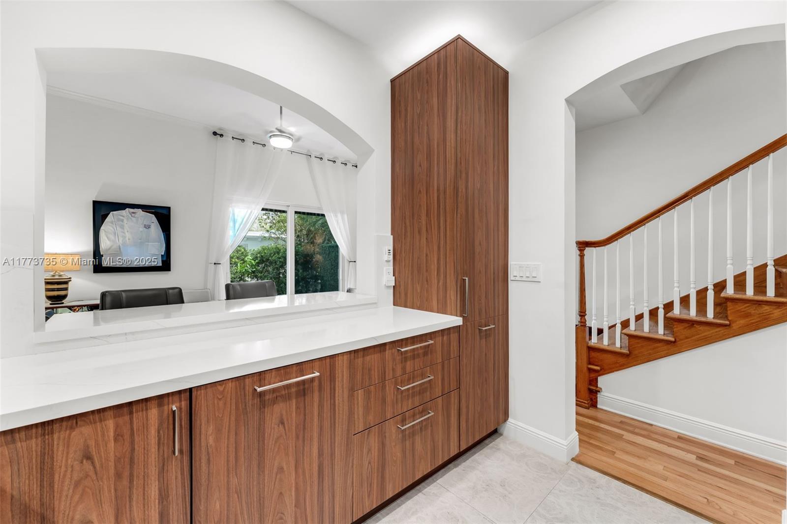 Located in the heart of Coral Gables, this rarely available turnkey townhouse blends modern luxury and prime location. Just a short walk to shopping, fine dining, Granada Golf Course, & the Coral Gables Country Club. Featuring 3 bedrooms, 2.5 baths, & 1,690 sq. ft. of meticulously renovated space, this home is move-in ready with high ceilings & beautiful oak hardwood floors. LED lighting throughout creates a modern ambiance. All windows & doors were replaced in 2023 with new hurricane impact glass. The stylish kitchen was completely remodeled with quartz countertops and backsplash. Stainless steel Samsung appliances offer style and convenience. The townhouse includes two assigned parking spaces, and the private patio with mood lighting adds a serene outdoor touch.