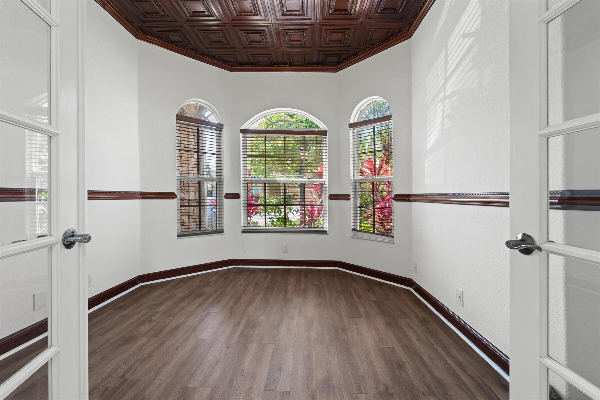 Welcome to a stunning masterpiece in the prestigious Versailles community of Wellington! This residence is a true gem, offering an exquisite blend of elegance, comfort, and luxurious living. With 5 bedrooms, a spacious office/den, and an expansive upstairs loft, there's room for everyone to thrive.The home boasts breathtaking volume ceilings adorned with intricate tin details, while the hardwood flooring and high-quality granite and cabinetry add warmth and sophistication throughout. The gourmet kitchen is a chef's dream, featuring a gas range, double wall ovens, a wood-paneled refrigerator, and 42'' custom wood cabinetry perfect for whipping up culinary creations that delight the senses.Impact windows & doors throughout.Whole home generator! Roof certified for 10 more years.