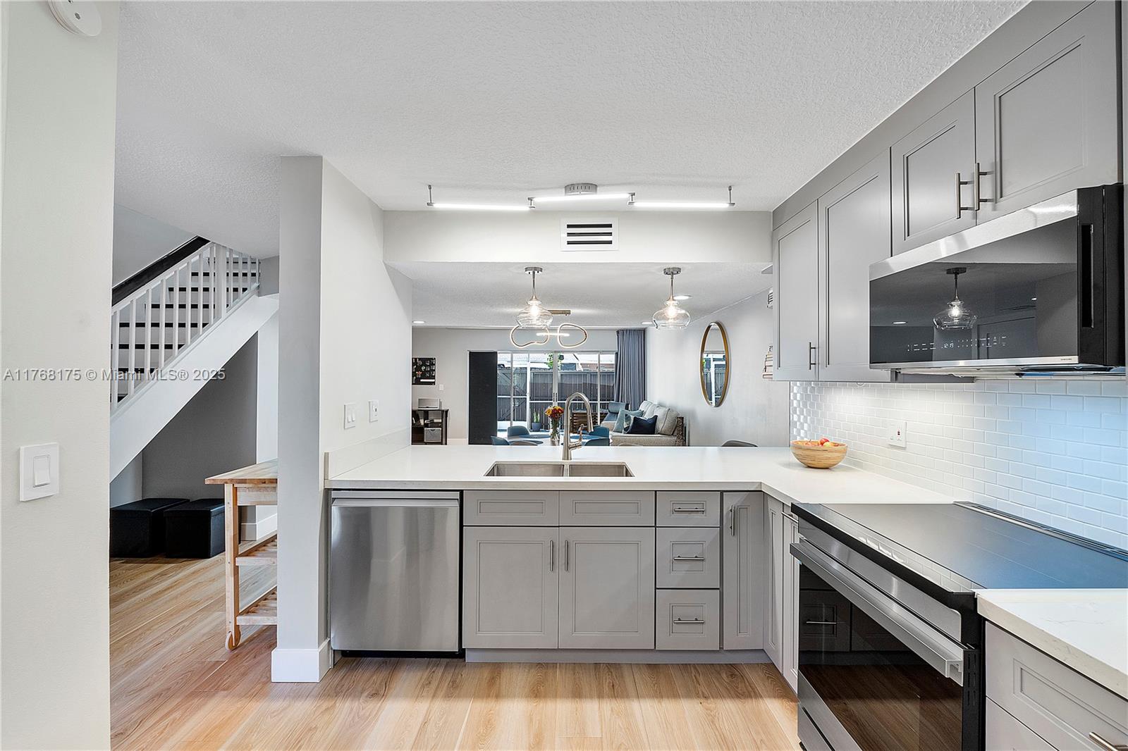 Don't miss the opportunity to own this completely renovated and rare townhome. This 2/2.5 unit features a brand new roof with a transferrable warranty. Everything has been updated! This home is complete with impact windows, a modern kitchen with quartz counters and top of the line, Samsung appliances, beautiful cabinetry with ample storage, contemporary bathrooms, LVP flooring throughout, LED lighting, new LG Washer/Dryer, Smart home with Ring, Nest and even an EV outlet! It's the perfect layout with an open floor plan and a spacious kitchen with abundant natural light & a serene private patio. Ample parking with a 1 car garage and 2 additional assigned spots. Gated community with pools, tot lot, tennis, gym, etc. Prime location near hospitals, shopping, restaurants and good schools.