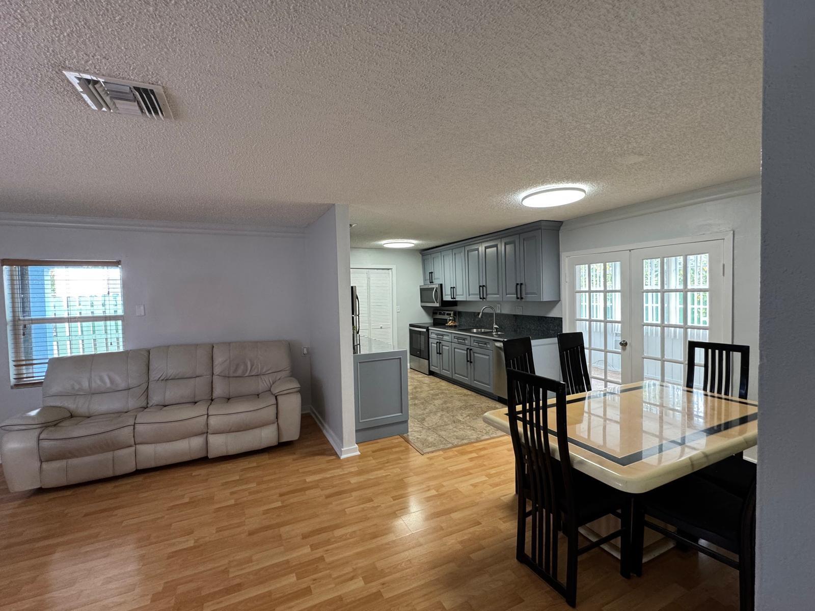 2 beds 2 baths plus a Florida room with extra closet that can be your 3rd bed. Newer contemporary kitchen wood cabinets with granite countertops & newer SS appliances. Tile floors in kitchen, baths and bedrooms. Laminate wood floors in living areas. New air conditioning & ducts installed in 2024. New Roof installed 12/21 baths remodeled about 3 years ago. Fenced back yard with large patio, several fruit trees. Circle driveway & carport that fit up to 5 cars. The house comes with hurricane shutters. New water heater. Crown molding. Linen closet in the hallway & inside laundry room. Updated electrical panel. French doors to the Florida room. Access to the patio by the laundry room and the Florida room. Great location on a quiet avenue, close to shopping, gym, restaurants and coffee shops.
