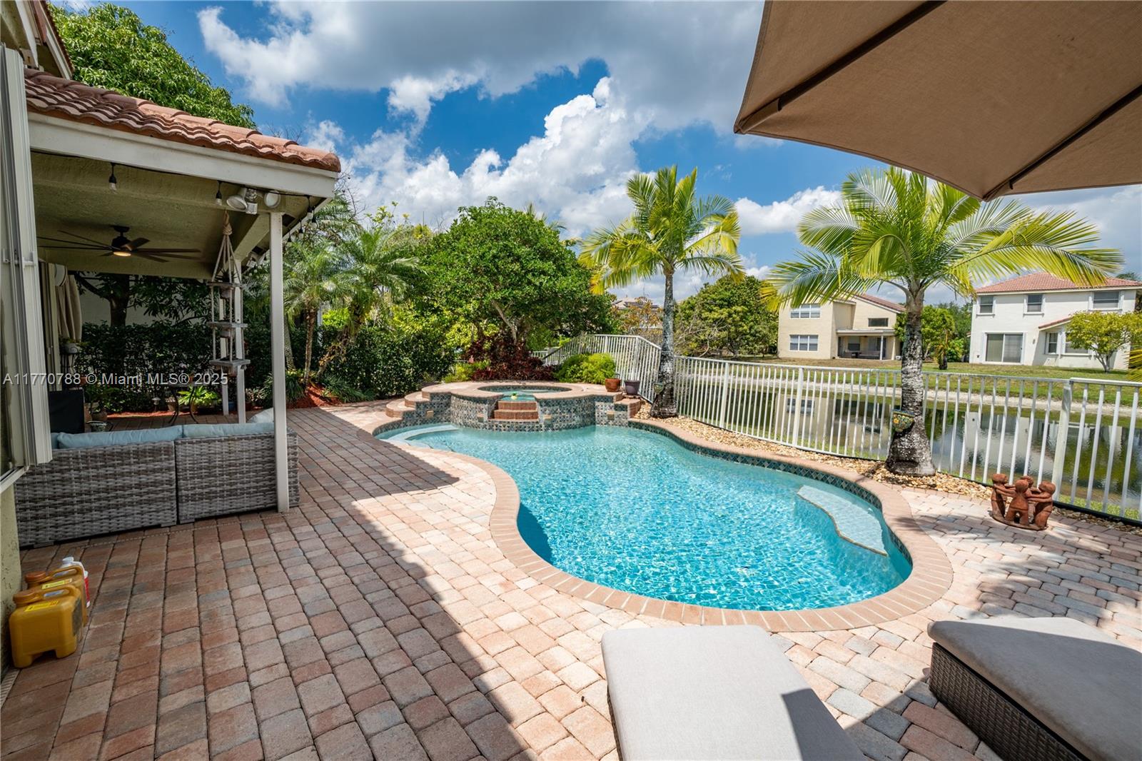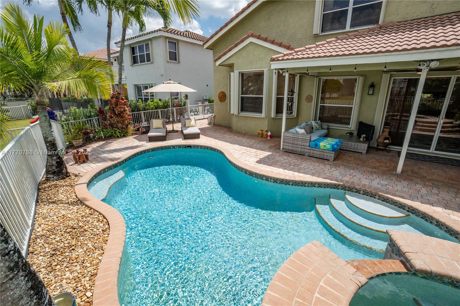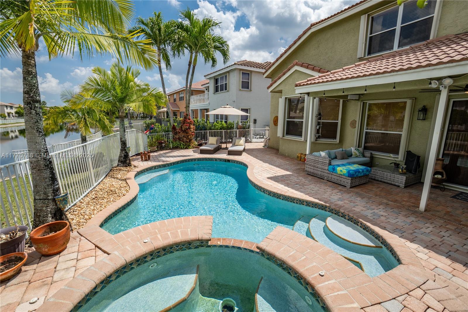 Stunning two-story home in the desired Silver Isles community offers spacious living area with plenty of natural light. Enjoy a unique multi-level layout featuring a convenient downstairs bedroom and full bath. The primary suite has walk-in closets and a split main bathroom with two toilets, two vanities, a soaking tub, and a shared shower. The kitchen offers stainless steel appliances and granite countertops. Enjoy a view of the pool and the lake from the breakfast area. Step outside to a sparkling pool, jacuzzi, and tranquil waterfront views. With a 300A electrical panel, accordion shutters, and a 2-car garage, this home is both stylish and practical. The community has a pool, gym, and playgrounds. Close to hospital, highways and shopping. Don't miss this amazing opportunity!