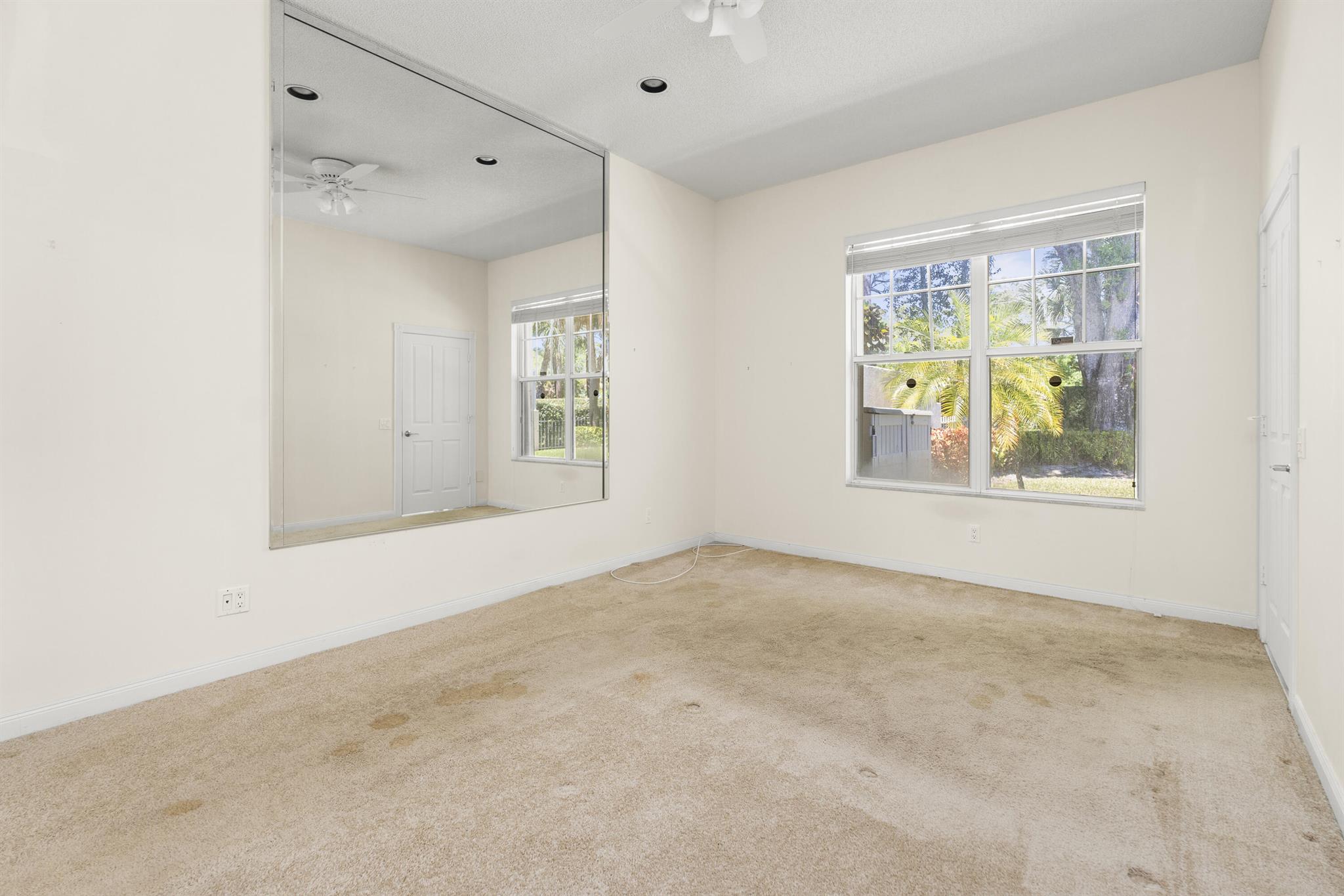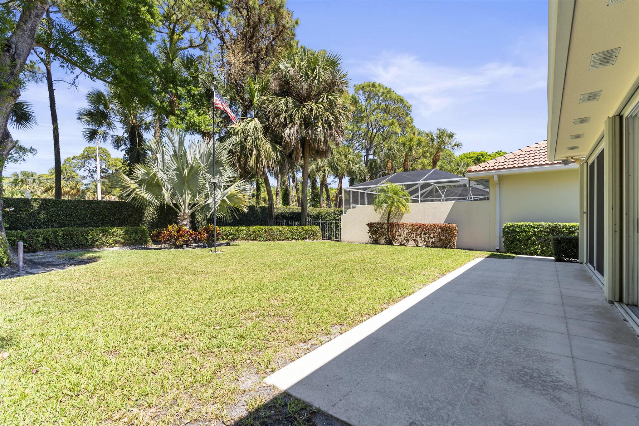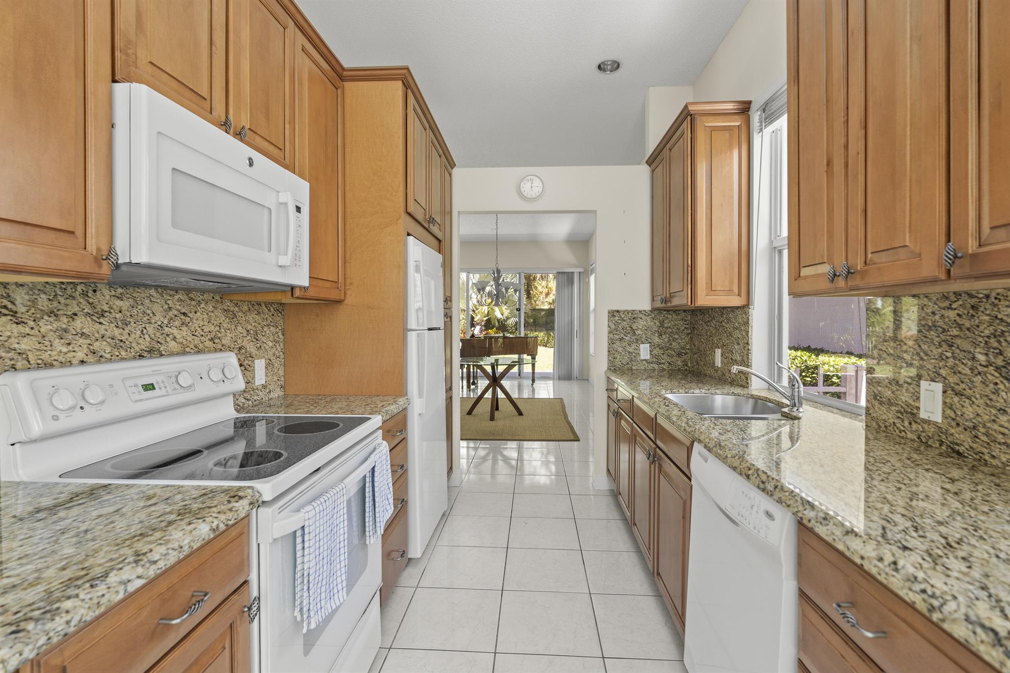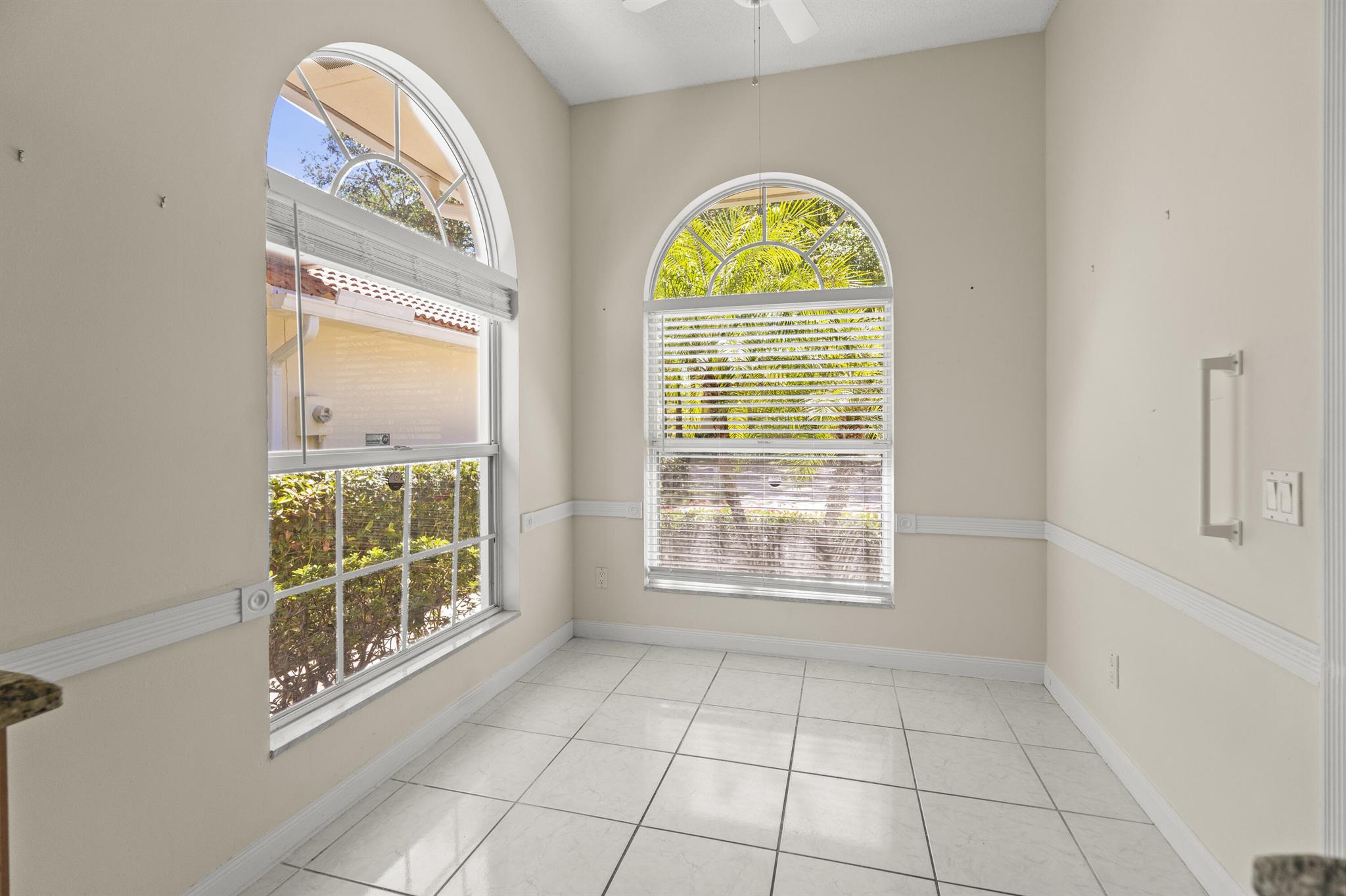 Bedford extended model featuring a spacious fenced backyard with room for a pool, perfect for entertaining. Interior highlights include a newer roof (2021) & HVAC in (2018), open spacious plan w/ great storage space, ceramic tile throughout the kitchen and great room. A lovely kitchen offering tall cabinetry, upgraded granite countertops & backsplash. Enjoy the light and bright great room with high ceiling space and built in shelving & lighting. The primary bedroom offers walk in closets plus additional closets, as well as double sinks and a private water closet in the ensuite bath. The den may be easily converted to a third bedroom or enjoyed as it is. Wonderful community centrally located and convenient to all that Palm Beach Gardens and the surrounding areas have to offer.