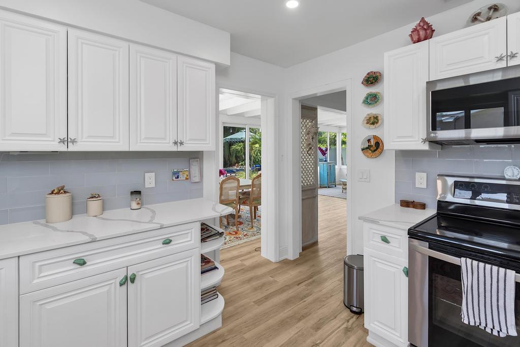 Sunny Bermuda style one story house with open floor plan one block from intracoastal in the heart of the College Park neighborhood in Lake Worth Beach. Spacious 3 bdrm/2 bath completely renovated, including metal roof, complete impact windows and doors, updated appliances and tankless water heater. Large windows and doors provide natural light throughout, opening to saltwater, free-form pool and patio, in private, fully fenced stylishly landscaped backyard. Just minutes away from golf, beaches, restaurants and culture.