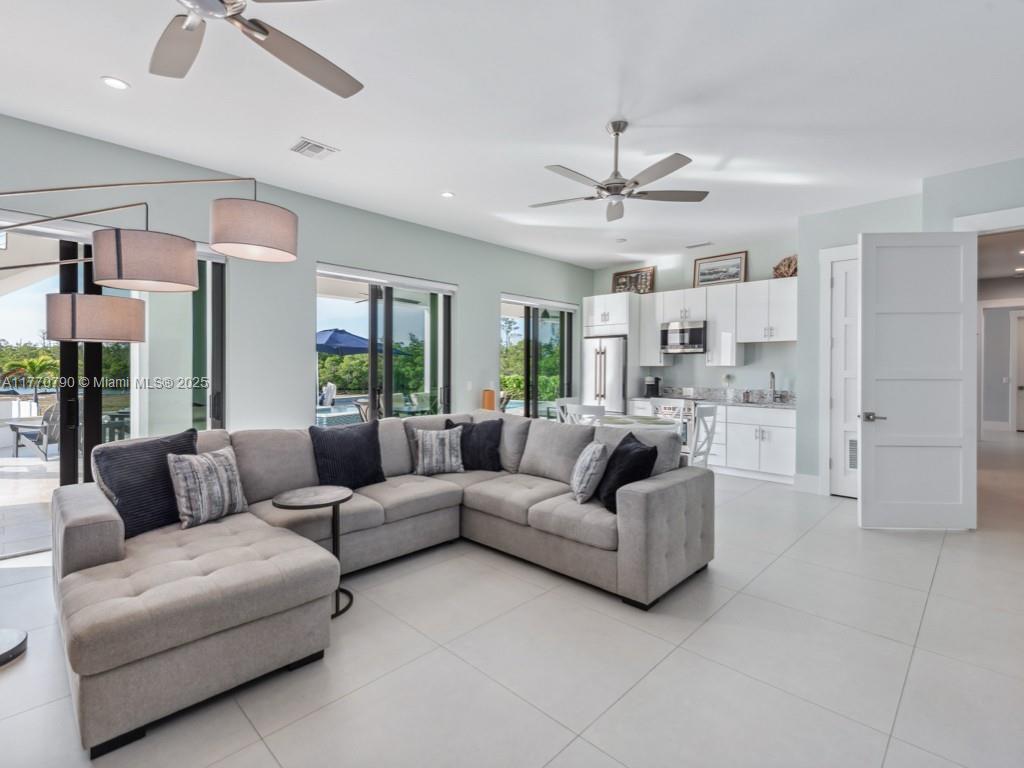 Spacious 4 BR. Plus home. Built in 2021. Waterfront home with Western exposure. Quick out to Naples Bay. One mile to Downtown Naples. Water views & pool views from every room. Elegant entry with soaring 17ft. ceiling all glass. Elevator, linear fireplace, pantry, 2 kitchens, Great room design with coffered ceilings. 12 & 10 ft. ceilings throughout. Two master suites. Covered patio & pool deck 1900 sq.ft. with gas heated pool & 8-man spa with fire pit. Dock 70 ft. in length 1100 sq ft. with lift for boat. Family room 556 sq.ft. possible in-law suite, home gym or 5th BR. Outdoor summer kitchen. 2–5 ton A/C, generator, 3 car garage. Electric storm shutters. Impact glass. Fenced in yard. Home being sold below appraised value. NO WATER IN HOME OR ON POOL DECK DURING IAN.