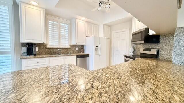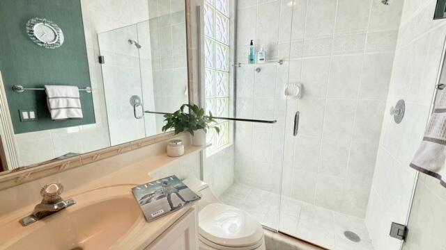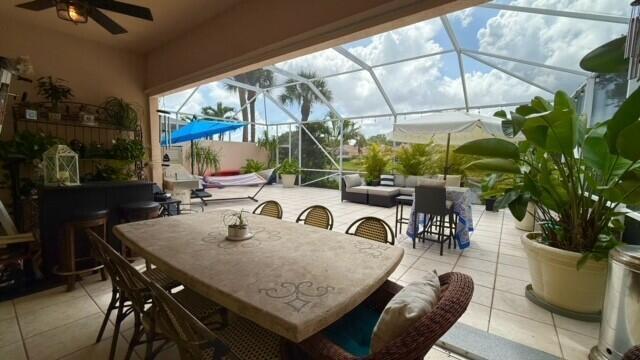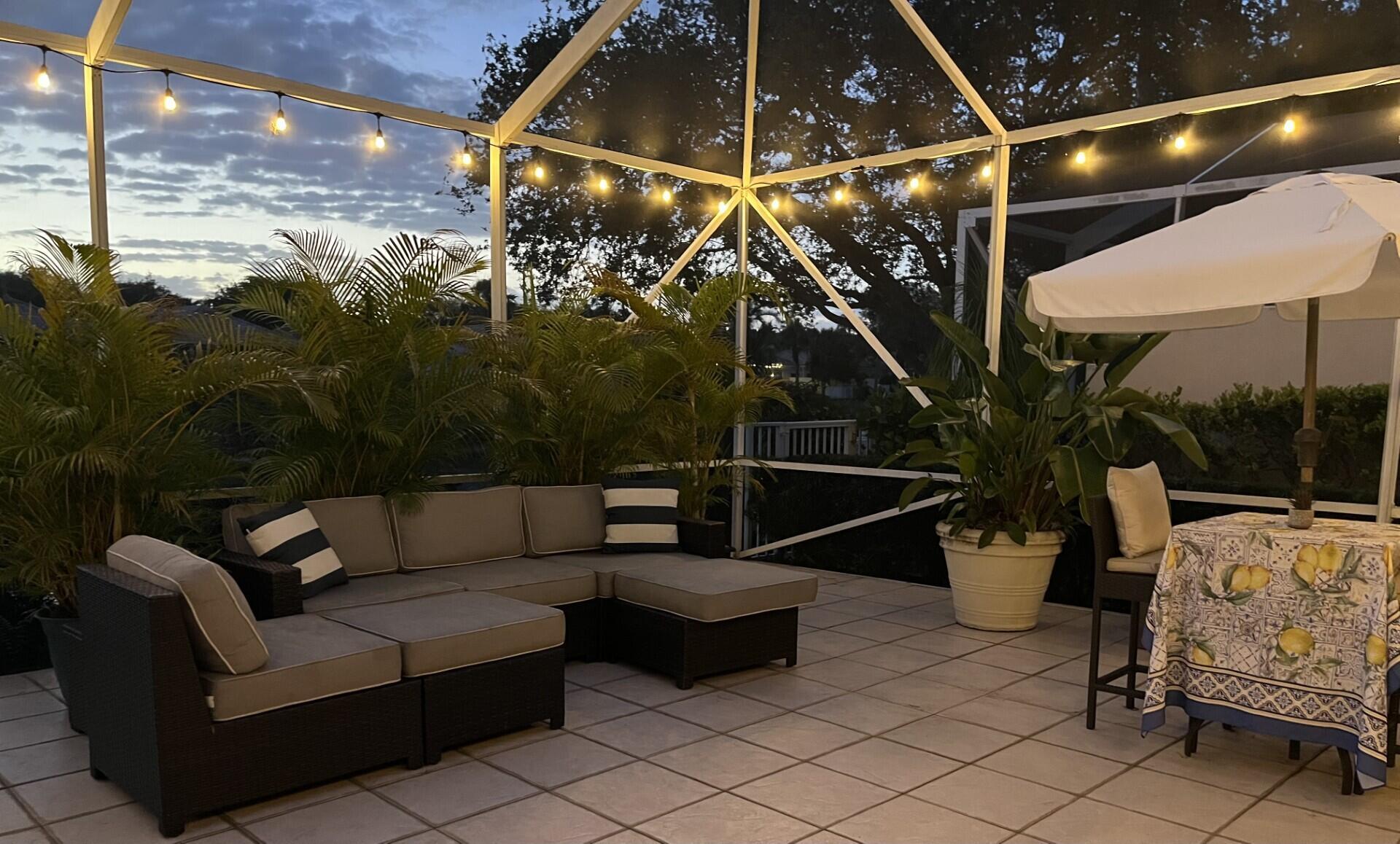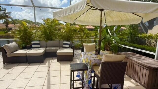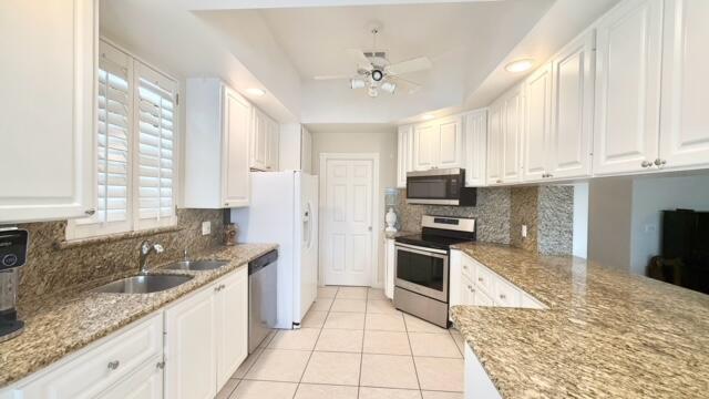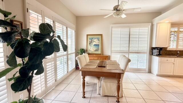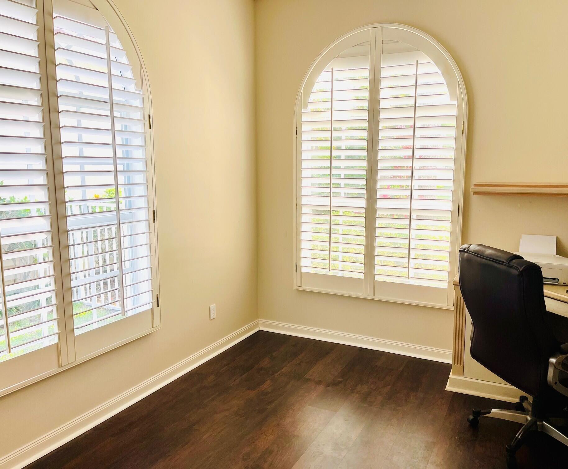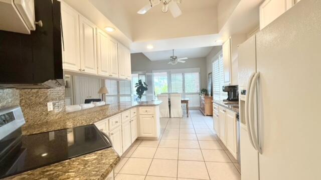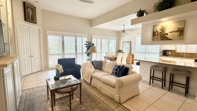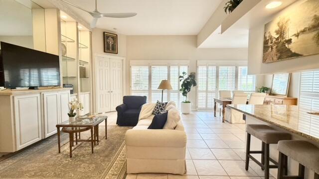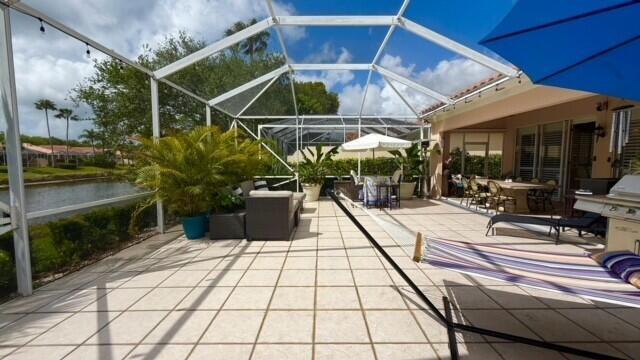 Extra, extra!! That is exactly what this great Oakmont model has!! NEW ROOF! Porcelain flooring in the main areas, natural bamboo in all bedrooms and den. Plantation shutters throughout. Spacious tiled screened patio, the perfect place for entertaining, overlooking a tranquil lake and surrounded by lush foliage.The Great Room features a customized wall unit, 12 ft volume ceilings and two triple sliders leading to the large covered lanai. The principal suite has a unique dual bathroom arrangement, large walk in closet in addition to two built in closets and linen closet. The guest bedrooms are split from the principal offering privacy with a shared bathroom that has an updated walk in shower. Designer touches throughout the home, adorable curb appeal, fenced side yard,