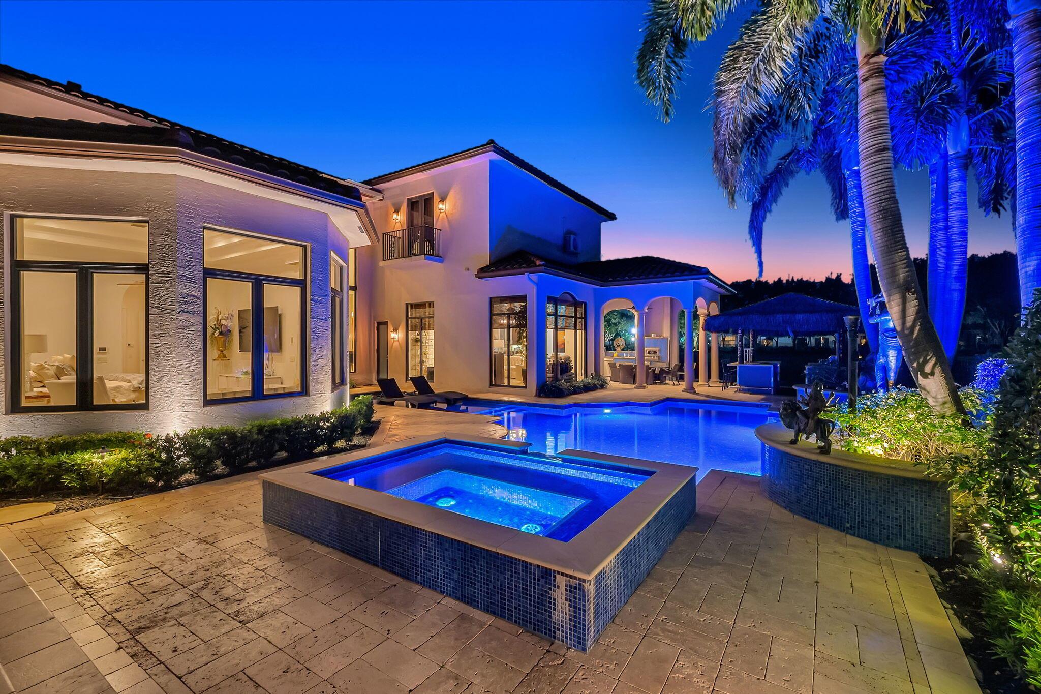 Experience resort-style living in this meticulously crafted oasis! Nestled within the prestigious gated community in Boca Raton. Discover unparalleled luxury and privacy in this lakefront masterpiece next to a nature preserve setting. Step inside to explore the fully appointed showcase former builder model, now elevated to new heights of perfection. Indulge in ultimate relaxation within your own saltwater pool and spa. Gas flame lamps create a captivating ambiance, while a commercial-grade tiki bar beckons for leisurely evenings. State of the Art Movie Theatre, first floor master suite, library, top of the line appliances include a Sub-Zero, Wolfe, Asko, and Alfresco. State of the art waterfall feature comes off the roof of home.