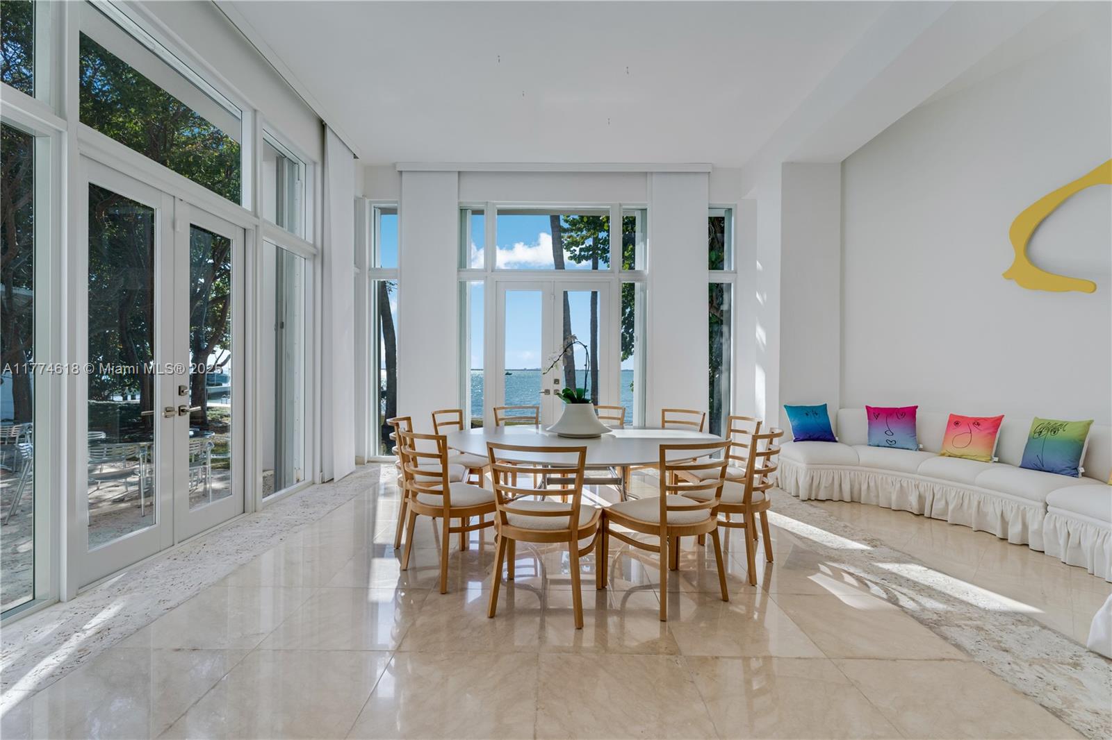 Nestled on exclusive Harbor Point, only private road in Key Biscayne, this exceptional residence sits on an oversized 28,800 sq. ft.lot, offering unparalleled privacy & breathtaking views of the Miami skyline. 1 of just 12 waterfront estates in this prestigious enclave, the property boasts private road, a secluded beach, and a dedicated dock, creating a sanctuary of exclusivity & tranquility.This contemporary masterpiece globally recognized as part of the Rosa de la Cruz Collection will appeal to both art collectors & families, soaring 20-foot ceilings, elegantly curved walls, expansive entertainment areas ,offering endless possibilities for customization to suit a more conventional or uniquely personalized floor plan. definitely a rare gem in one of Miami’s most coveted locations.