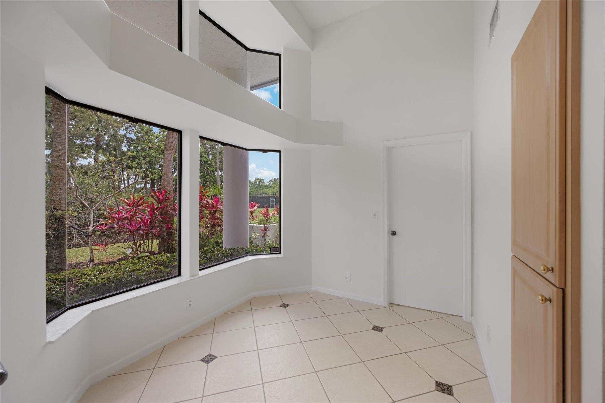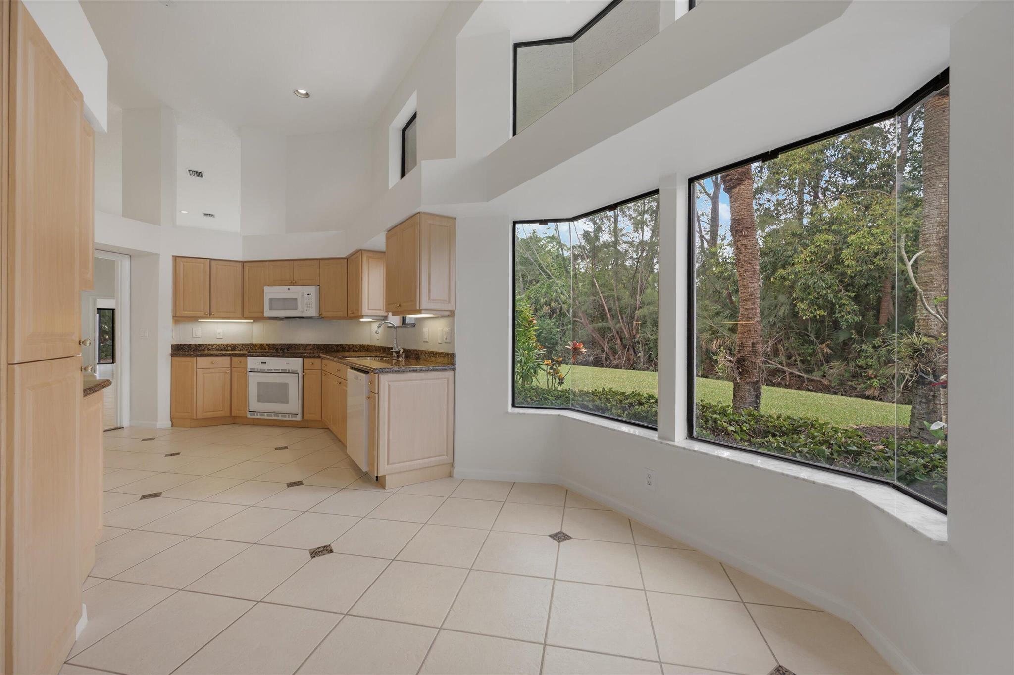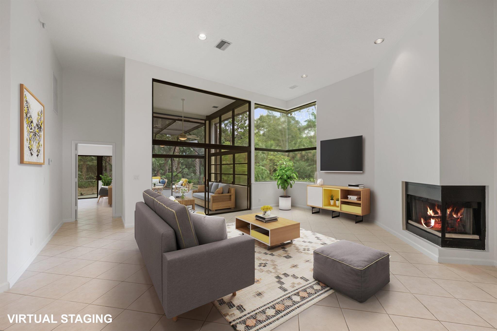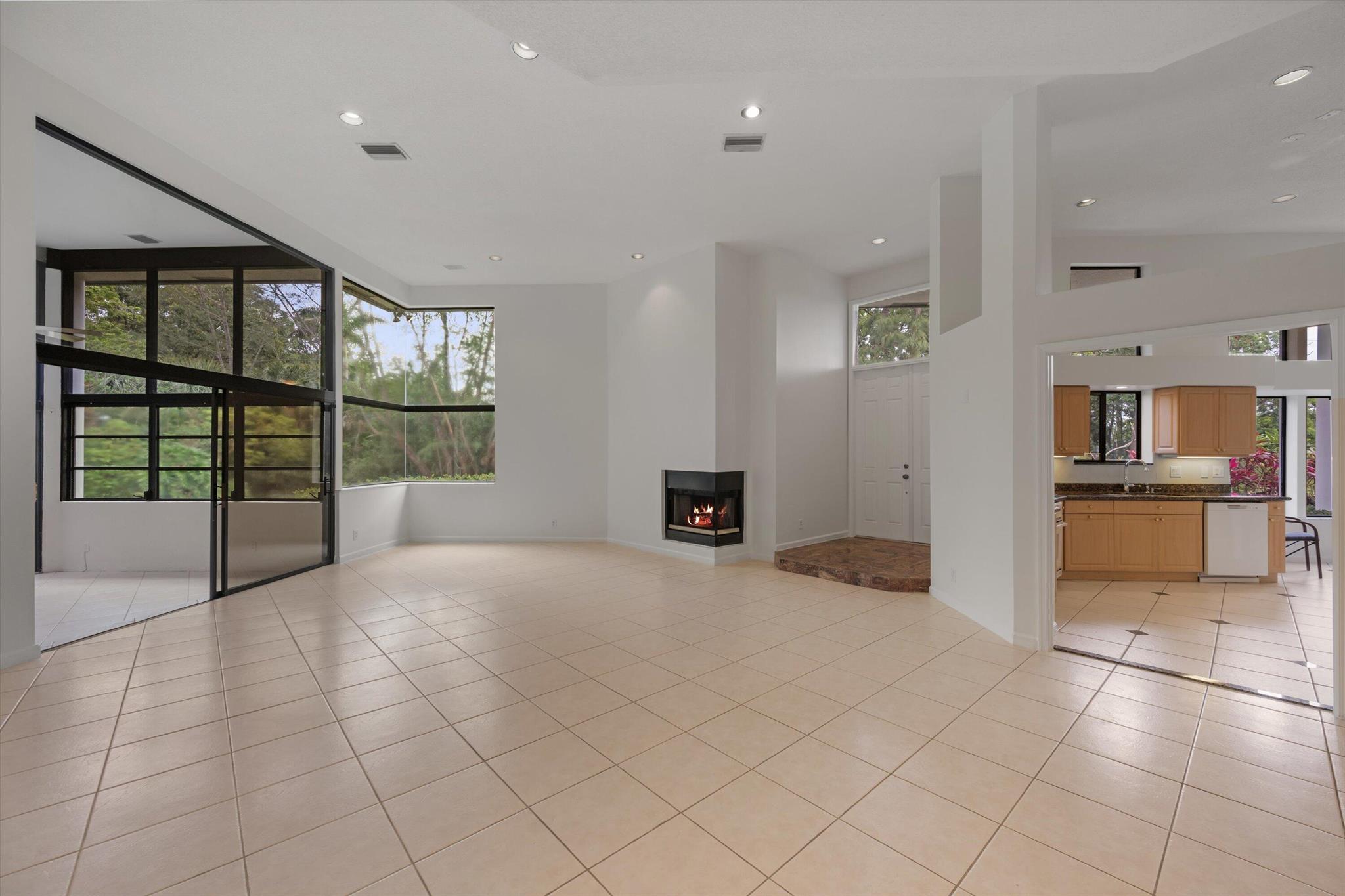 NEWLY PRICED=BUYER'S OPPORTUNITY! Located in beautiful BREAKERS WEST on a secluded corner lot surrounded by native Florida palms, oak trees and water, this private location is like no other! Spacious 1-story home has a NEW TILE ROOF with 3 Bedrooms + Florida Room, 2 Baths and large 2-car garage. Impressive 13 ft ceilings in main living areas and 8ft sliding doors with 4ft transom windows above offers both spaciousness and great natural light. Living Room has tile floors, a modern designed fireplace and opens the octagonal shaped Dining Area. The spacious eat-in kitchen has ample counter space, a pantry closet and seamless glass window in the Breakfast nook. Conveniently located off the kitchen is a separate Laundry Room with utility sink and cabinets above.