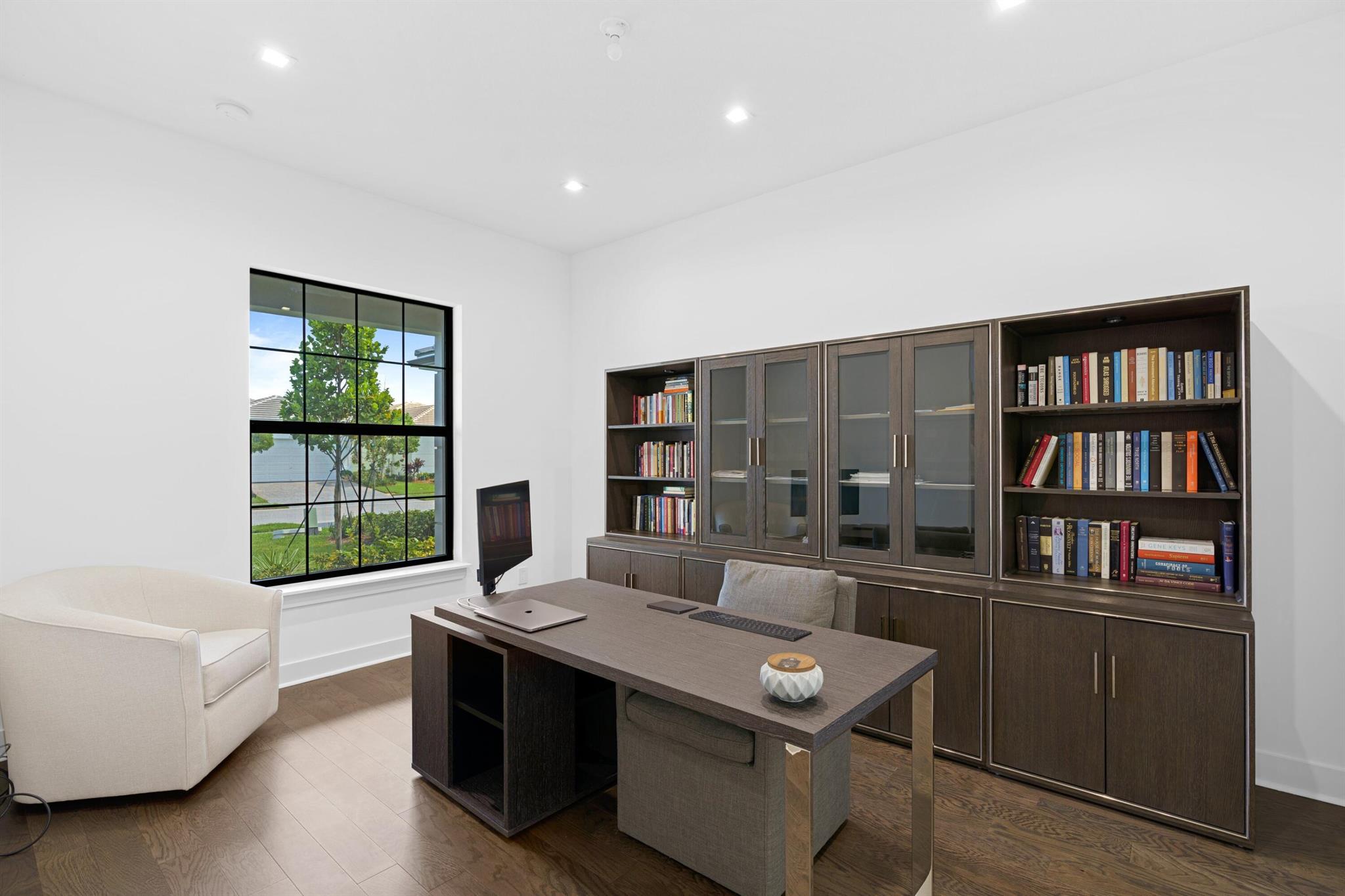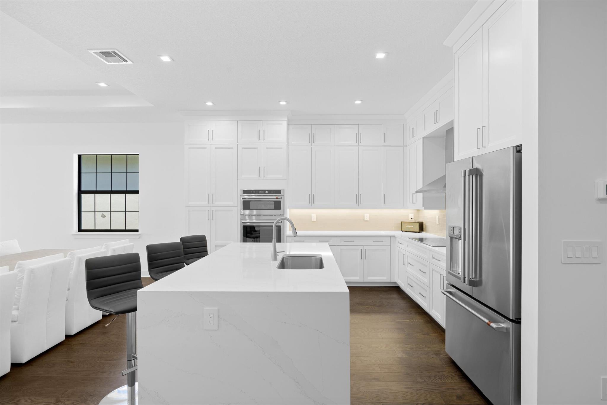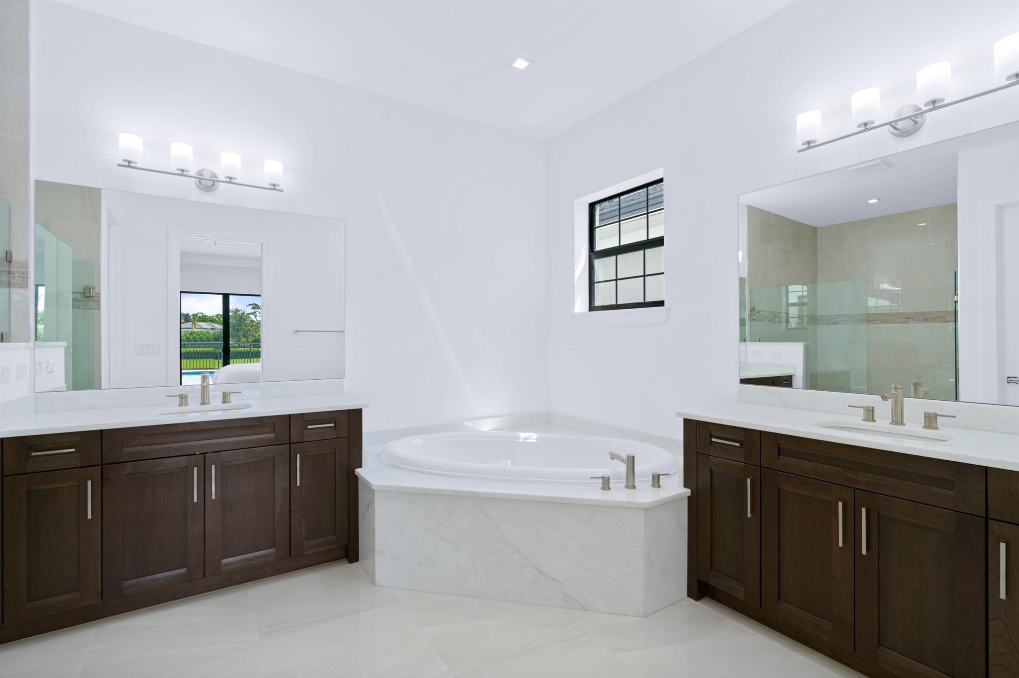 Beautiful Lake front pool home built in 2021 spanning over 3,260sf, with 4 bedrooms + 4.1 bathrooms - all with ensuite bathrooms. Office downstairs + Media Room upstairs. Oversized primary suite, w walk-in closets, oversized shower w floor to ceiling marble. Lake view, with heated pool and covered loggia. This is the largest model in Banyan Cay, full of upgrades: Sonos surround sound system, tray ceilings, built-in LED lighting, custom Lutron electric window shades, hardwood floors throughout, floor-to-ceiling kitchen cabinets, quartz countertops with ''waterfall'' island, high efficiency washer & dryer. Neighborhood is private, gated, and security-guard protected. Banyan Cay is home to Dutchman's Pipe premier private 18 hole Jack Nicklaus golf course & club.
