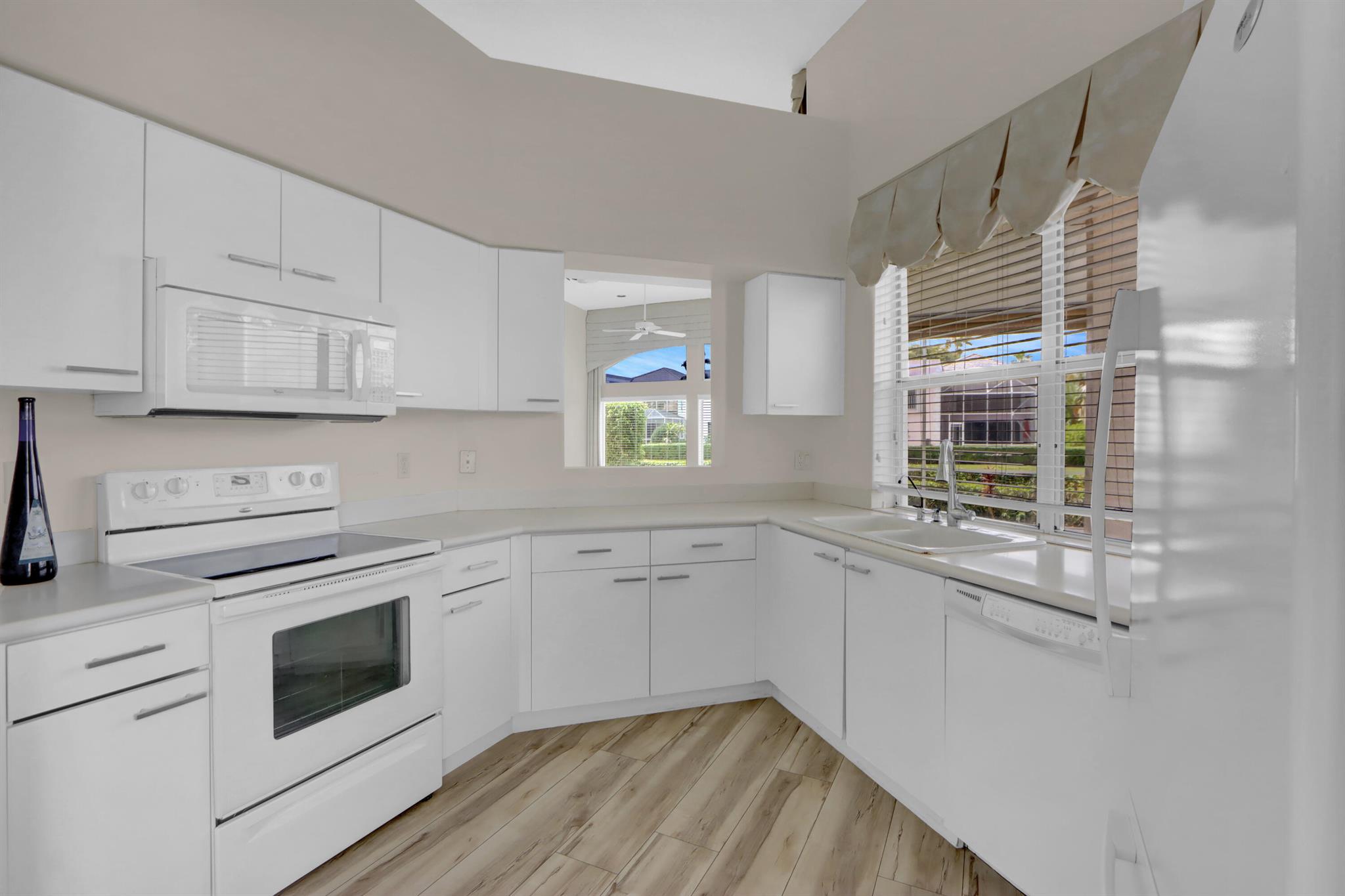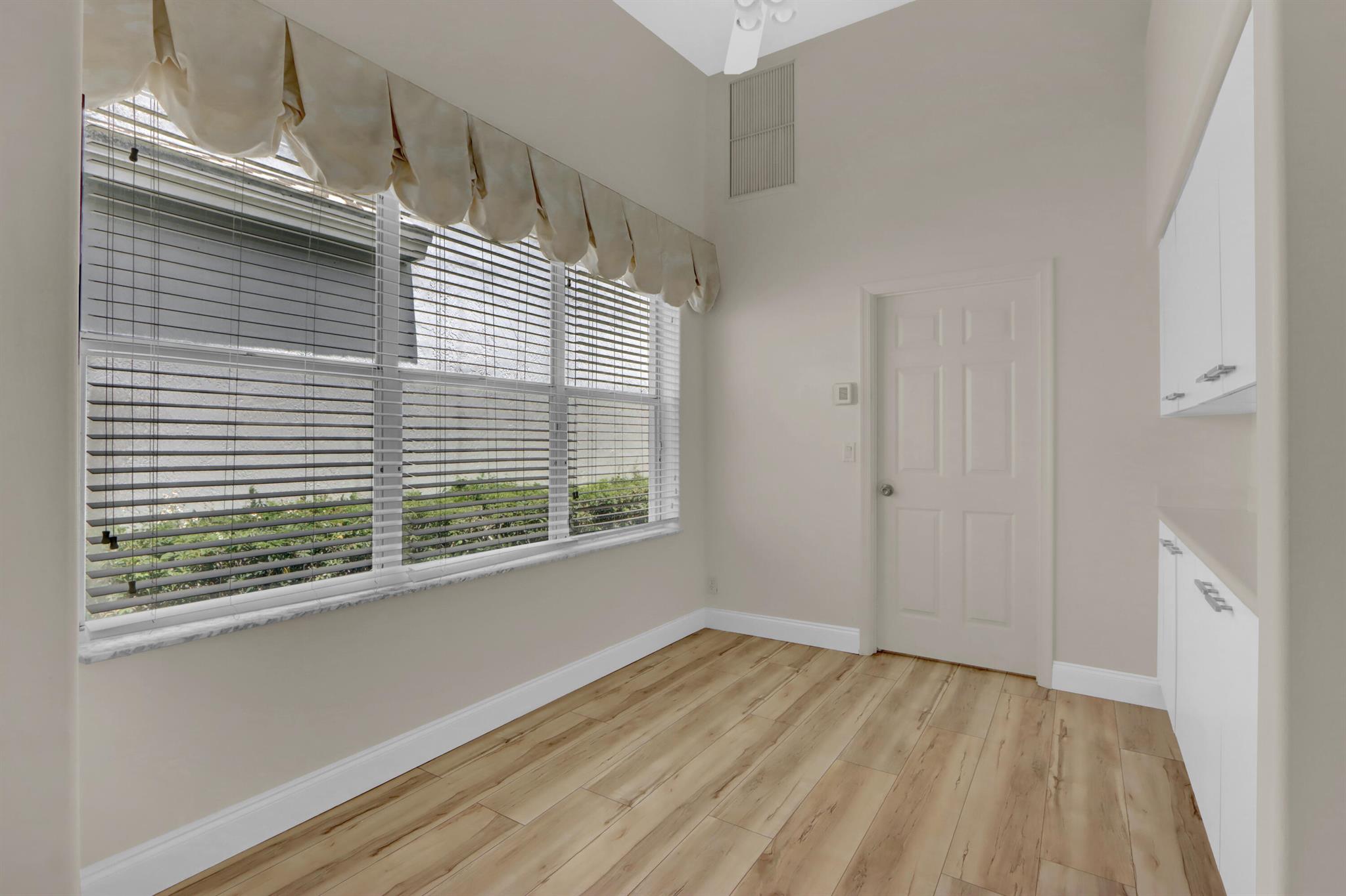 Welcome to your slice of paradise in the heart of Boca Raton!This updated home features a bright,open-concept living space. This home is on a large lot has a huge screened patio with screens facing west on thenlake,great sunsets. Open floor plan with Den that can be closed off and made into 3rd bedroom.The primary suite boasts a walk in -closet and a beautifully renovated ensuite bathroom with a glass -enclosed shower.The second bedroom is ideal for guests or a home office. Flooring was upgraded in kitchen. The home is walking distance to community pool. You can join Boca pointe country club but not mandated. HIgh ceilings. Located in a well-maintained, pet-friendly community.