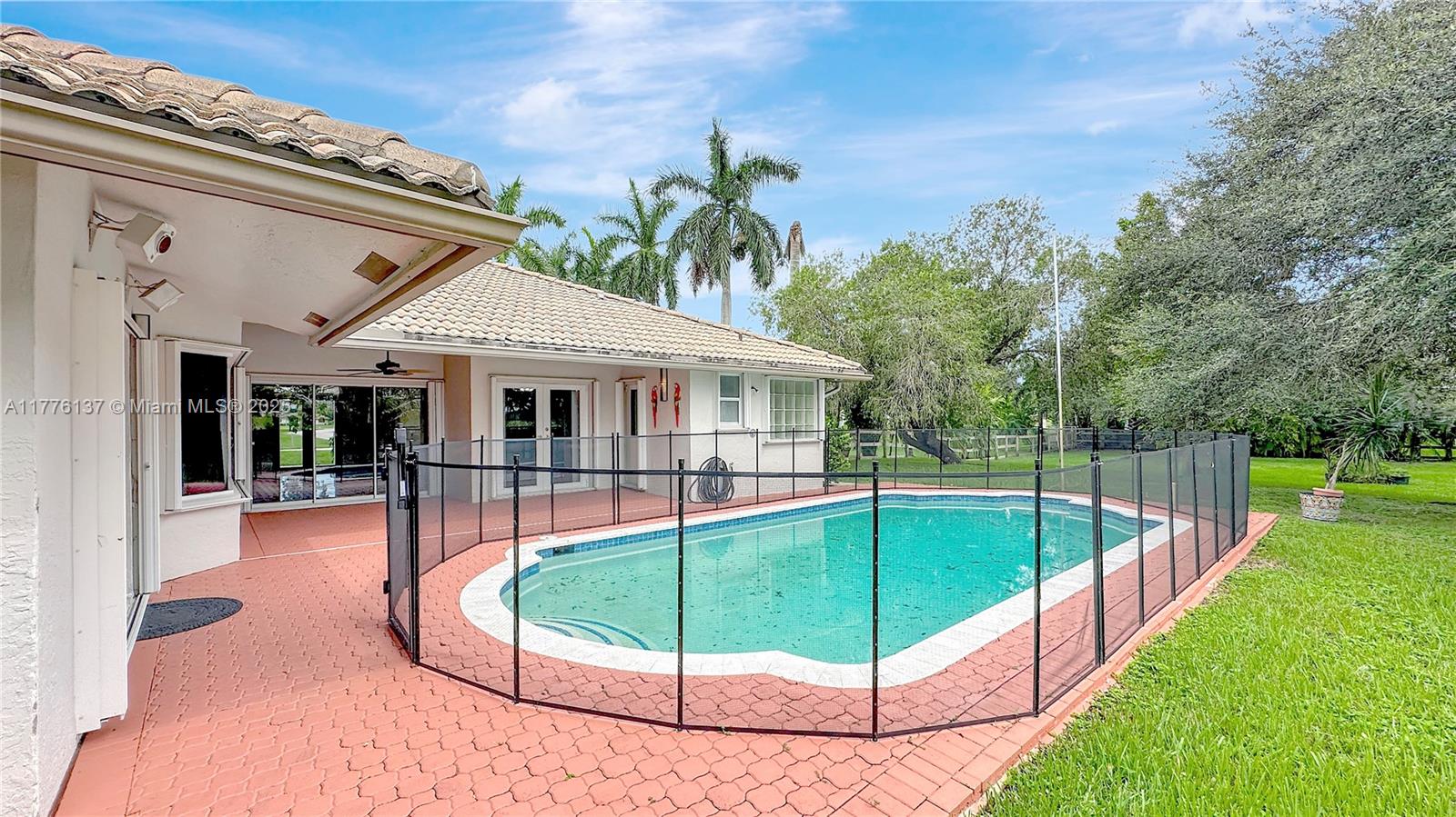 Discover this stunning lakefront home in the coveted Trails of Pembroke Pines, a sought-after equestrian community! This spacious 4-bedroom, 2-bathroom pool home sits on a sprawling 37,634 sq ft lakefront lot. The inviting layout features formal living and dining rooms, a generous family room, and eat-in kitchen—perfect for relaxation and entertaining. Sleek marble floors flow seamlessly to an outdoor terrace with a sparkling pool and vast lawn with breathtaking lake views. Additional perks include a two-car garage, ample driveway space, and a dedicated laundry room. Located in a peaceful neighborhood with top-rated schools, this home offers quick access to U.S. 27, I-75, Sawgrass Expressway, and I-595—putting convenience at your doorstep. Make it yours today!