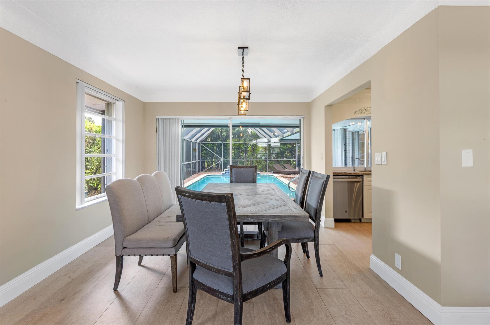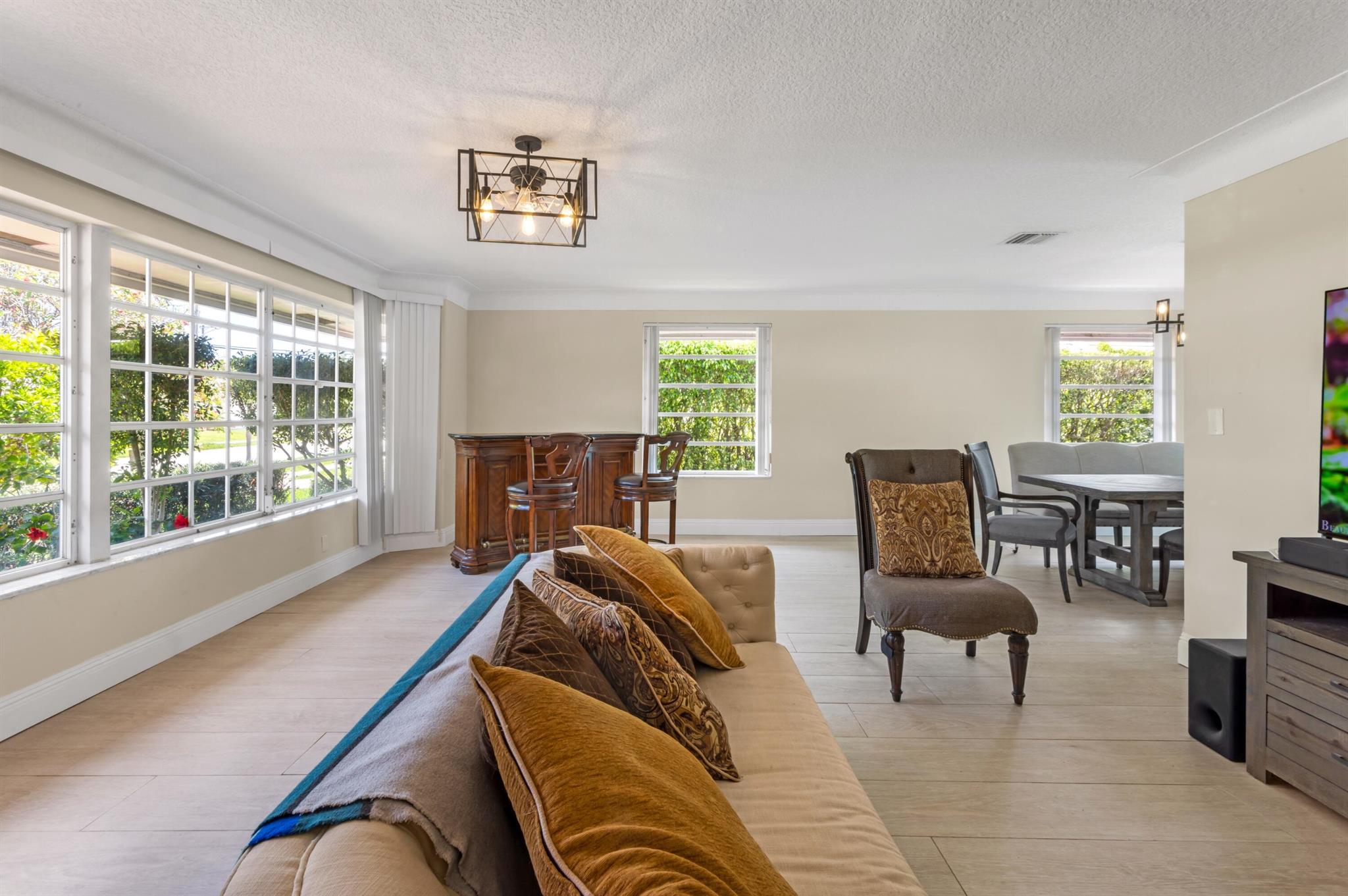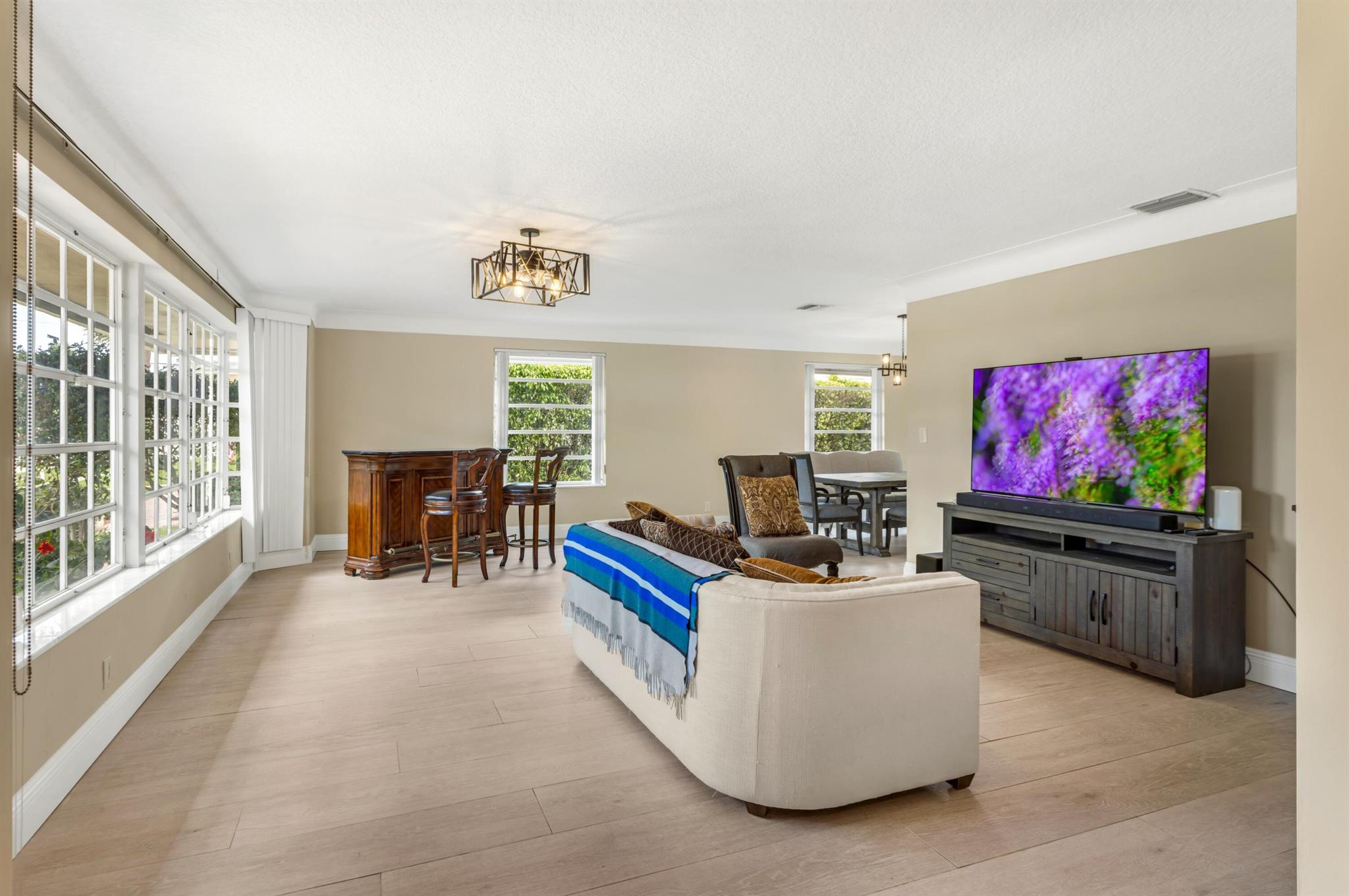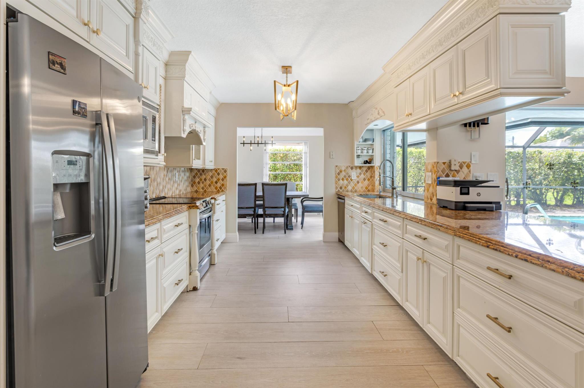 In east Boca Raton's sought-after Camino Gardens enclave, this residence features a sun-filled, flowing layout with a living room and formal dining area. Adjacent is the spacious kitchen, fitted with custom wood cabinets, stainless steel appliances, and granite countertops. The primary suite has a sliding glass door, a walk-in closet, and dual sinks. The two guest bedrooms have nicely sized closets. The sun-splashed screened heated pool is set within a brick patio and privately hedged. Shown by appointment only.