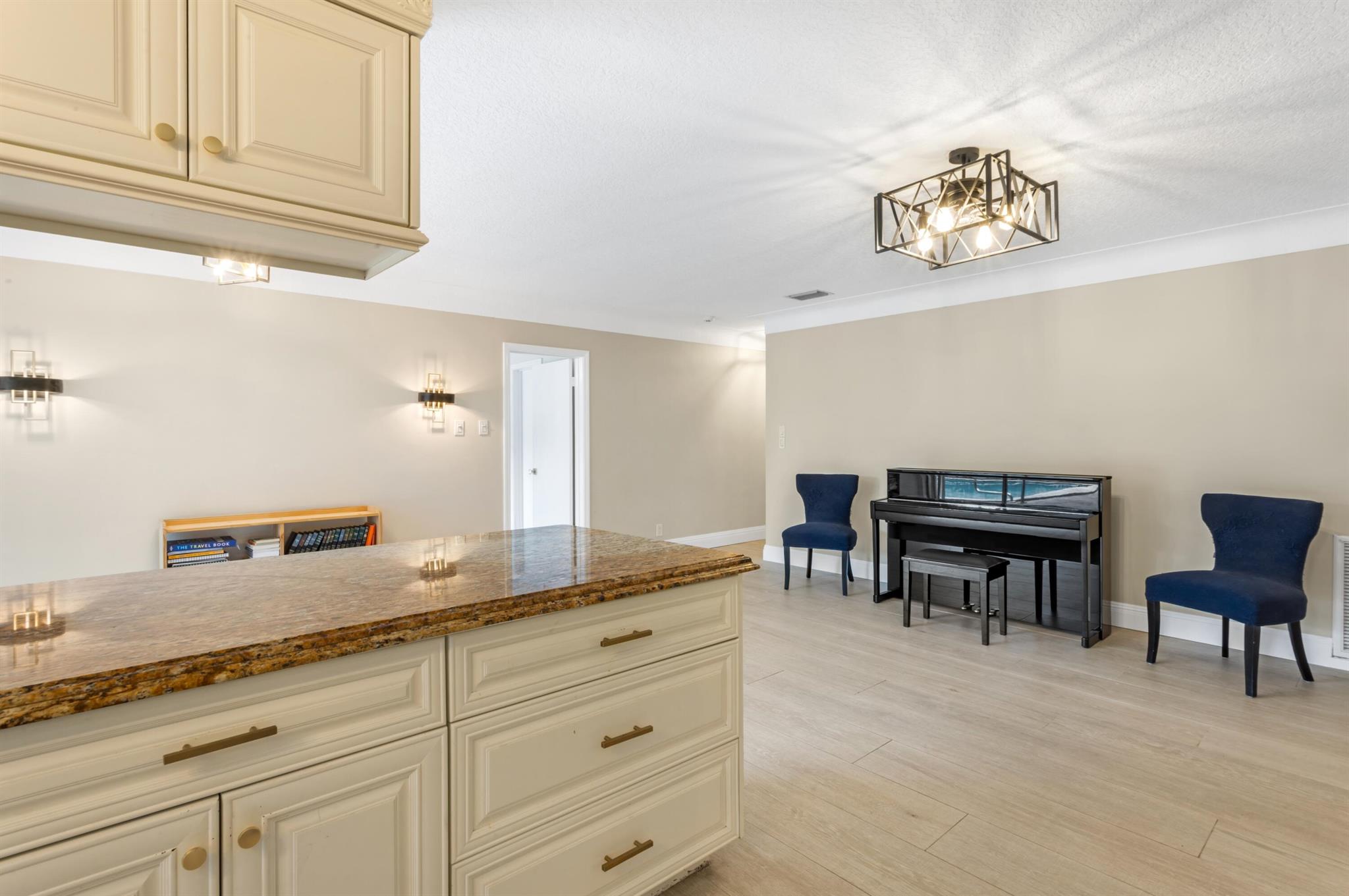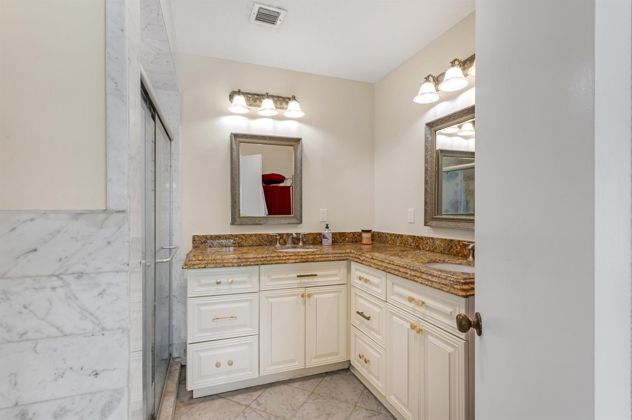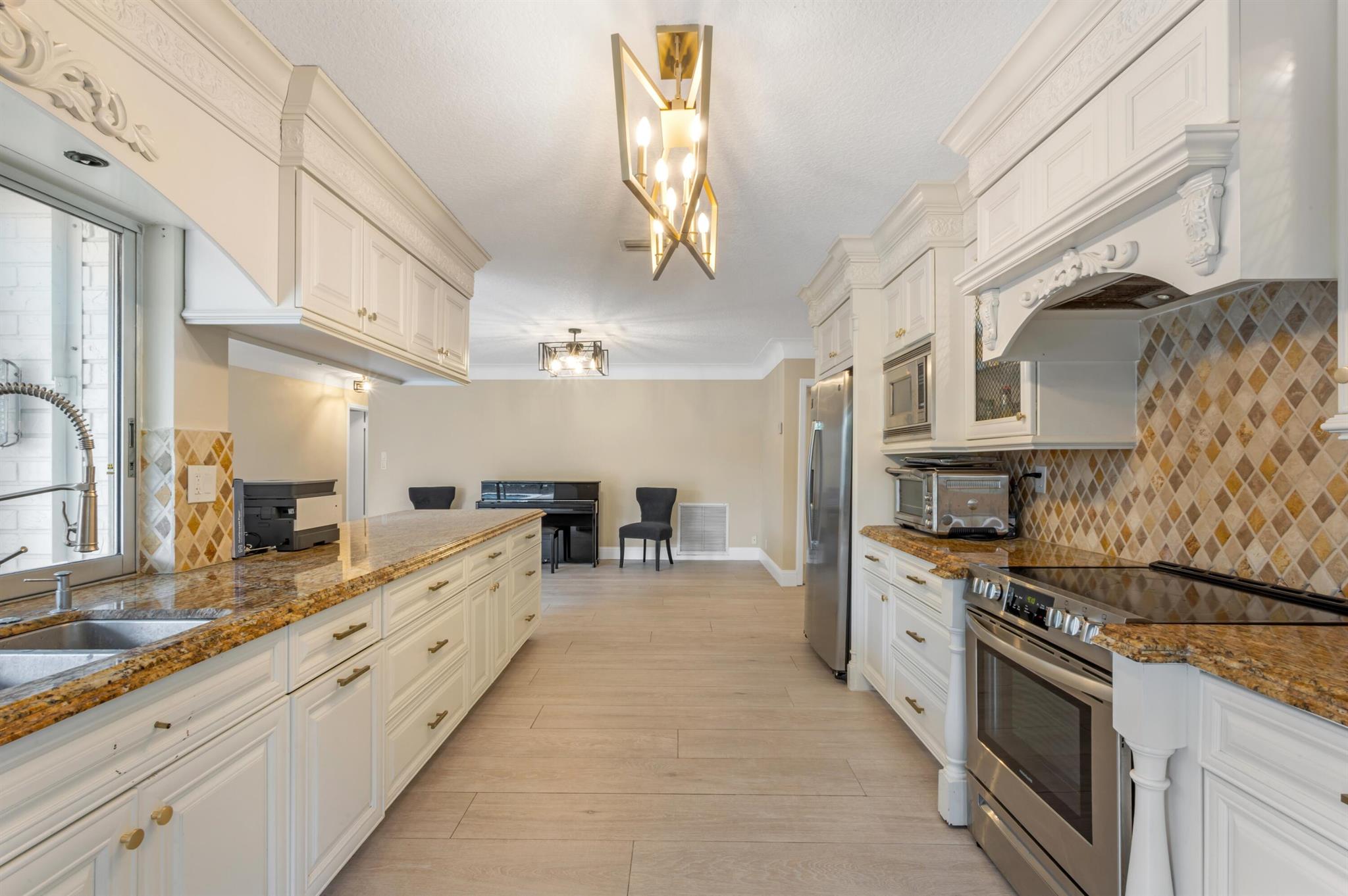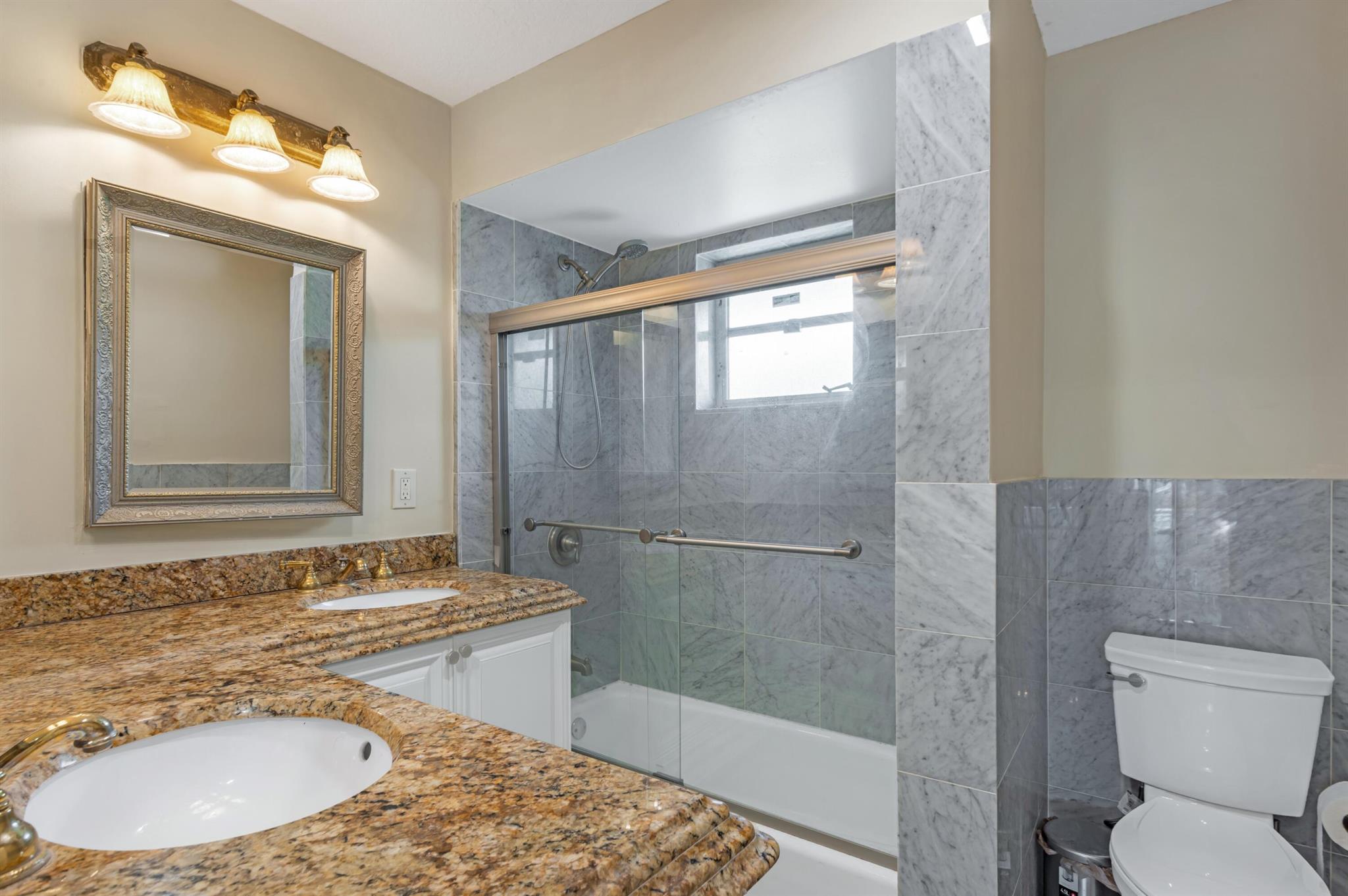 In east Boca Raton's sought-after Camino Gardens enclave, this residence features a sun-filled, flowing layout with a living room and formal dining area. Adjacent is the spacious kitchen, fitted with custom wood cabinets, stainless steel appliances, and granite countertops. The primary suite has a sliding glass door, a walk-in closet, and dual sinks. The two guest bedrooms have nicely sized closets. The sun-splashed screened heated pool is set within a brick patio and privately hedged. Shown by appointment only.