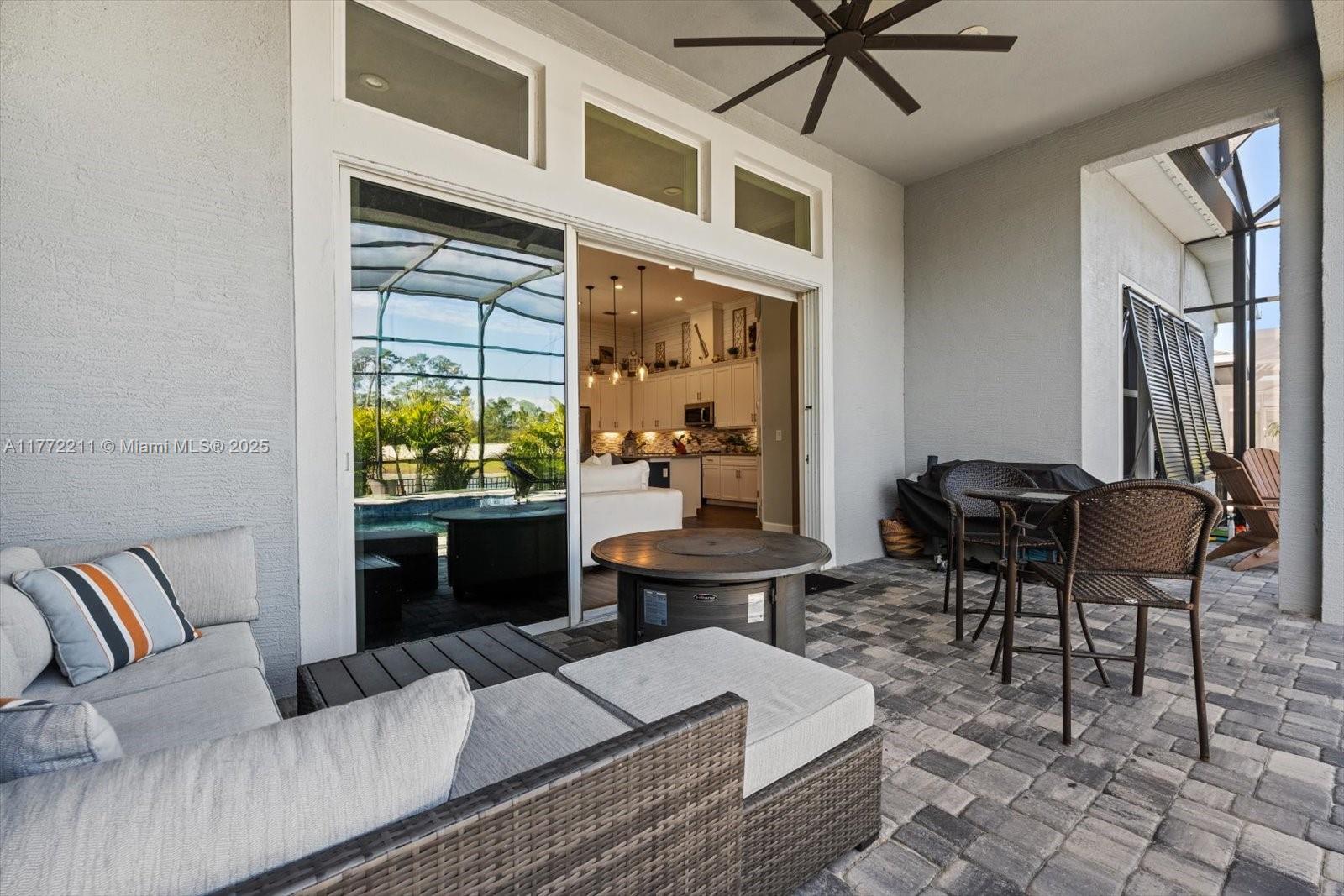 Welcome Home! This stunning 4BD/3BA + flex room, built in 2022, has 2,943 SqFt of luxurious living space. Situated on a pond, every detail has been upgraded w/ HIGH-END LUXURY FINISHES, including appliances and light fixtures. 2 car garage, enlarged paver driveway, & upgraded landscaping for an impressive curb appeal. A true backyard oasis built for privacy, complete with a full screened SALTWATER & HEATED POOL, astroturf, Bahama shutters, new outdoor lights, and a fan. Perfect for relaxing or entertaining! Inside, you'll find custom blinds, window tinting, and a custom-built foyer. Features a whole-house water filter and softener system, a scent system, upgraded tech-level WiFi & cameras, and SO MUCH MORE!