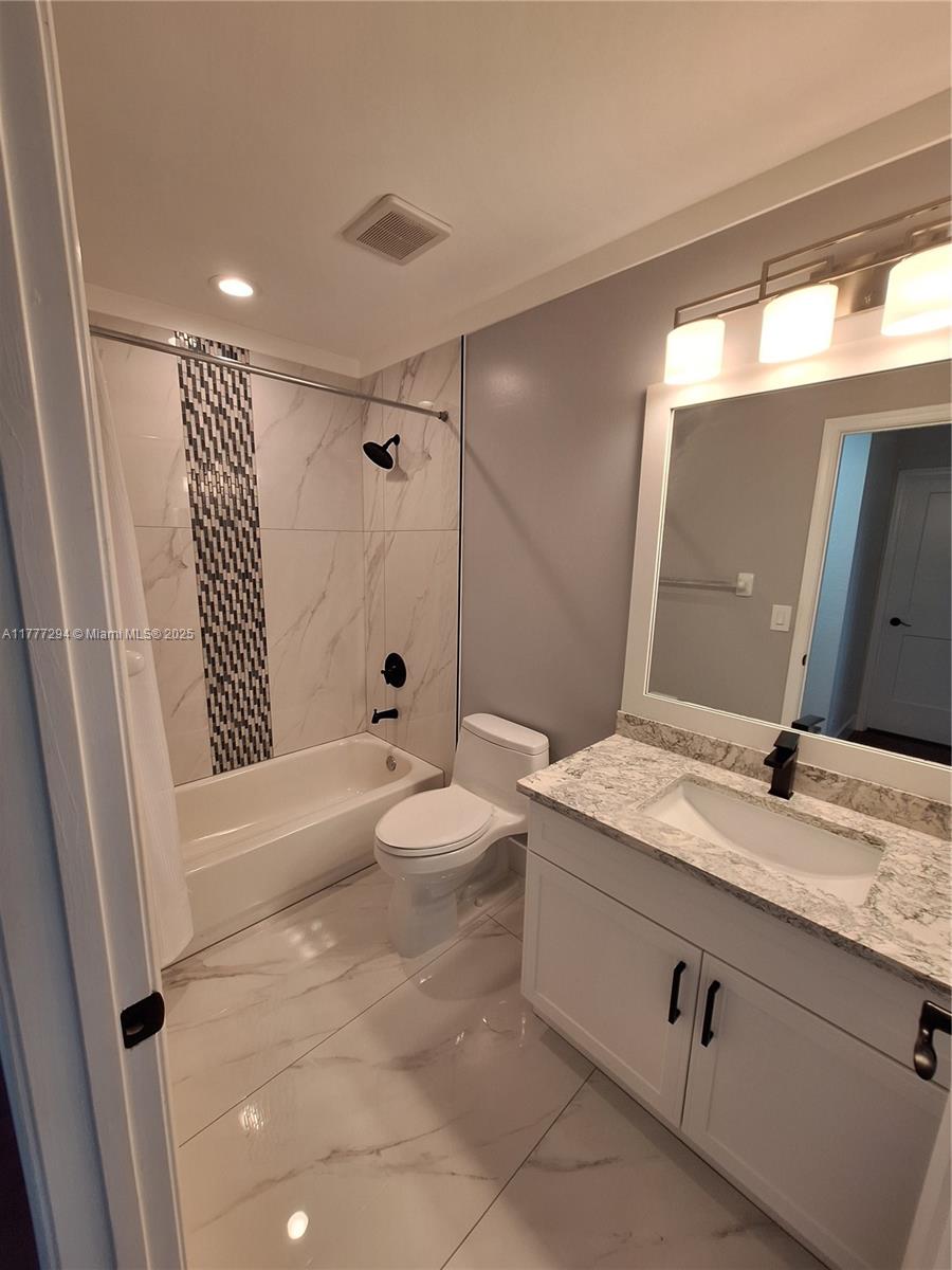 This two-story pool house has it all!! Brand NEW ROOF (April 2025), newly and fully remodeled bathrooms, upgraded gourmet kitchen, 20' high ceilings, a huge primary suite, oversized dining and great rooms, a loft that can be used as a office/game room, epoxy floored garage, and an extended driveway. Interior is freshly painted and with brand new baseboards. Other amenities include accordion hurricane shutters, a patio awning, and a meticulous landscape. Gated community with gym and pool. Association fees cover 24/7 physical security, lawn maintenance and irrigation, fiber optic internet/ cable, and security alarm services.