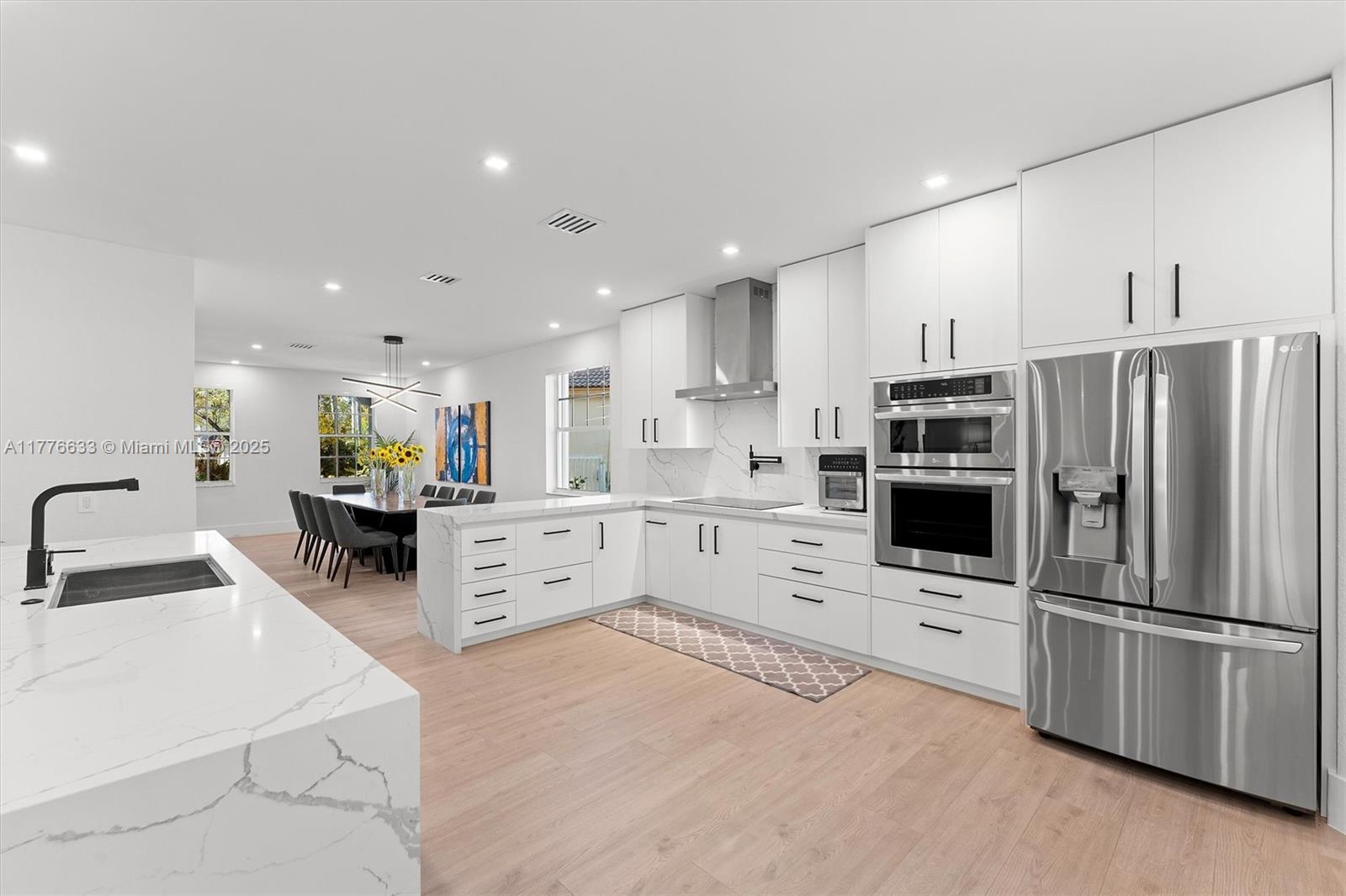 Discover modern luxury in this beautifully renovated Weston, FL home. Completely renovated in 2021 with high-end finishes, this residence offers modern luxury and exceptional open floor plan comfort. Originally designed as a 6-bedroom home, it has been thoughtfully reconfigured into a 5-bedroom layout to create more expansive living spaces. However, it can easily be converted back offering incredible flexibility to suit your needs. Featuring 5 bedrooms, 4 full bathrooms, an expansive and lush backyard, a sparkling pool & jacuzzi, and a new outdoor kitchen, perfect for relaxation and entertaining. Custom kitchen and bathrooms, waterproof vinyl flooring, sleek modern details including smart home technology. Every detail has been meticulously designed to enhance your living experience.