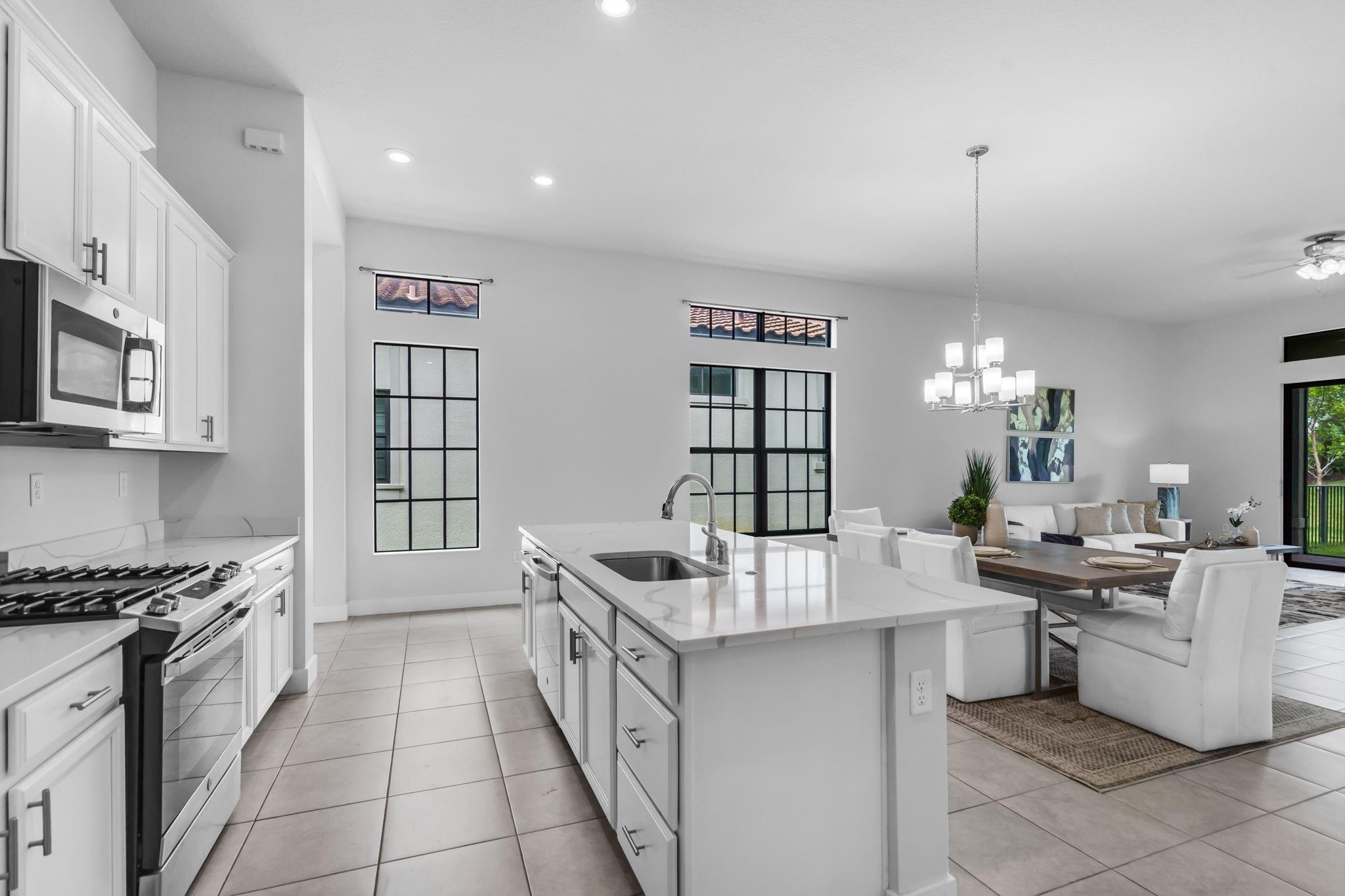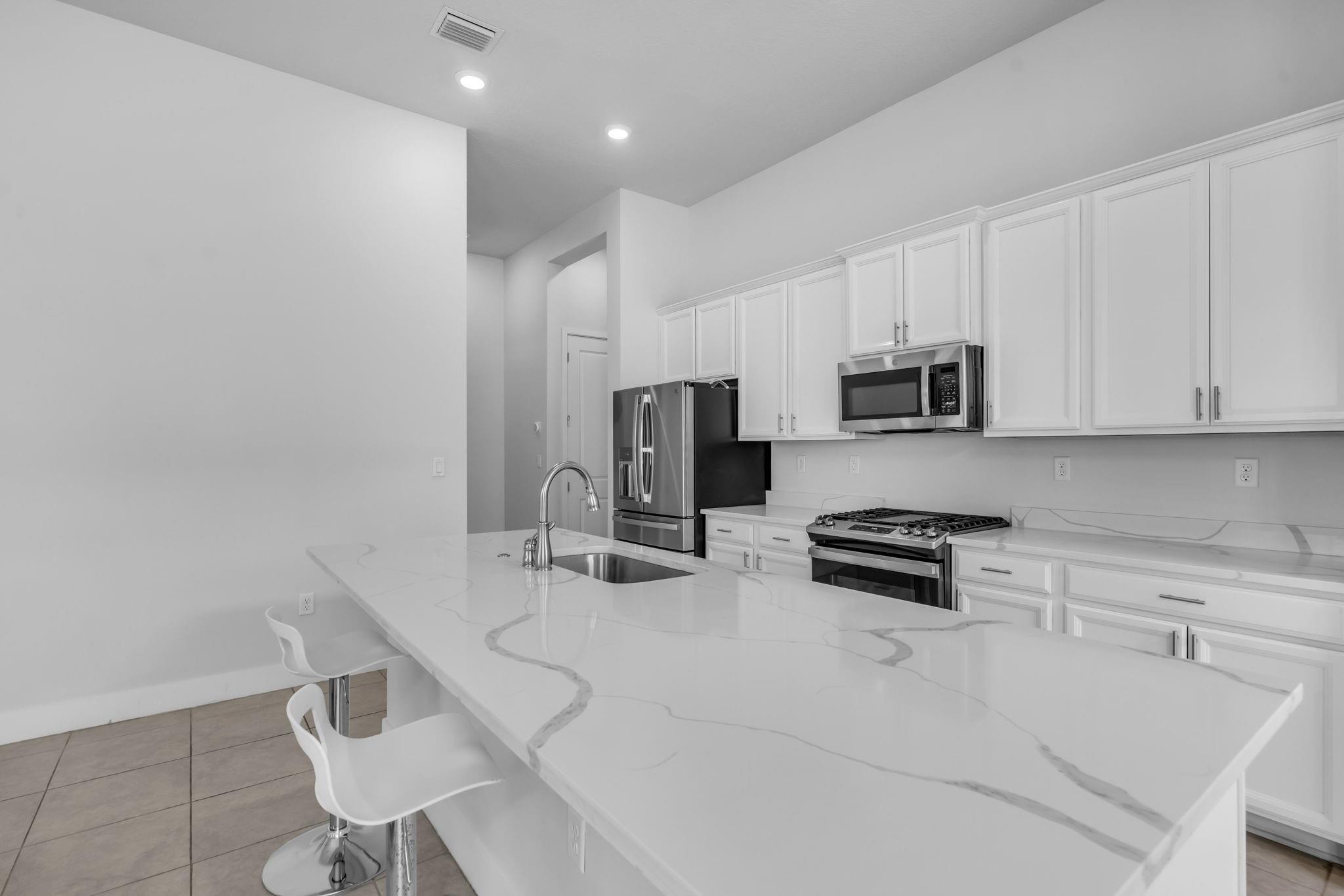 The Falls at Parkland! Stunning 3rd BR in a prestigious gated community with a 24,000 sqft clubhouse and resort-style amenities. This Spanish Elevation home features a gourmet kitchen with double-stacked white wood cabinetry, quartz countertops, oversized island with wood accent, 5-burner natural gas cooktop, French door fridge, and large walk-in pantry. Enjoy soaring 11'4" ceilings, impact windows/doors, crown molding, tray ceilings, tankless water heater, AC with Nest thermostat. The spacious owner's suite offers dual quartz vanities, oversized shower, and a large walk-in closet. Triple split floorplan creates a true great room setting, perfect for entertaining. Outdoor upgrades include newly installed screen enclosure,and new metal fence. Parkland’s finest