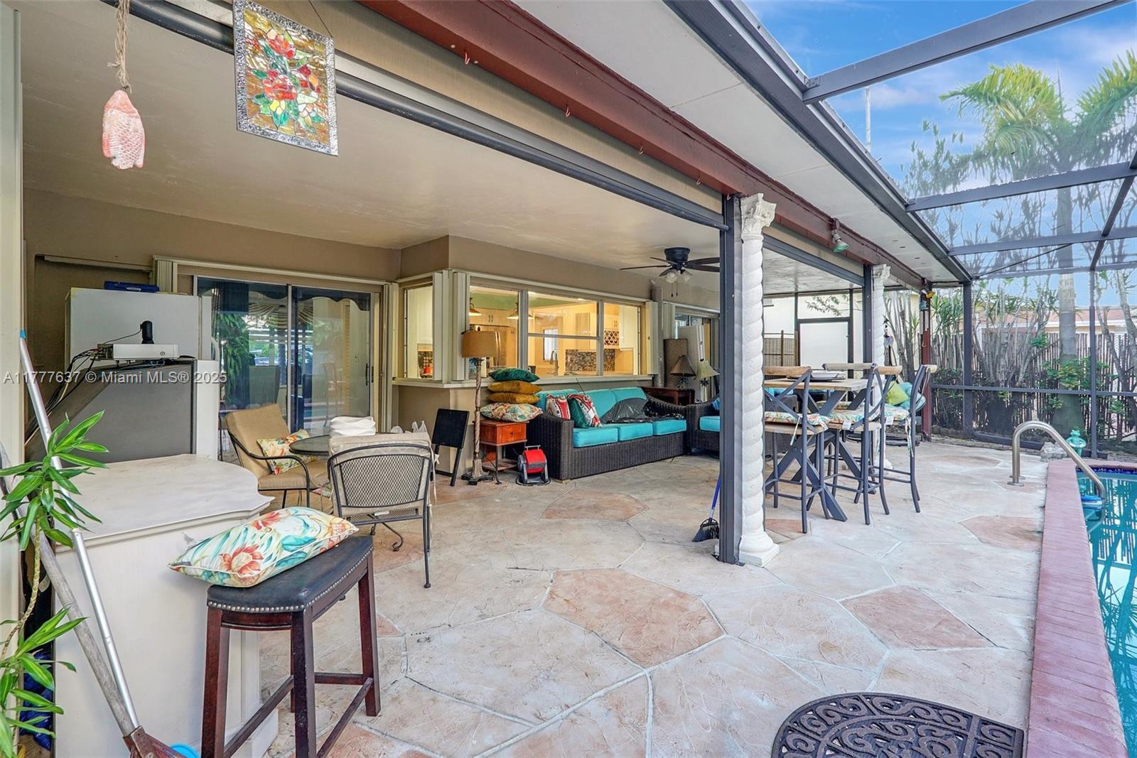 First time on market! This 3-bed, 2-bath home in Miramar offers 1,696 sq. ft. of living space, perfect for relaxation with serene pool views from multiple rooms. Enjoy an open layout, renovated kitchen and baths (5 years), gas stove, and new hurricane impact windows/doors (3 years). Features include a new electrical system, security system, screened patio with overhead fan and motorized hurricane-proof awning, and new pool enclosure. Conveniently located near Shirley Brancha Park, community pool, Miramar Civic Center, shopping, and more. Just 5-7 miles from Calder Casino, Hard Rock Stadium, and Hotel. Roof replaced in 2019. Move-in ready! A perfect blend of tranquility and accessibility. PRICED TO SELL |CHECH OUR OPEN HOUSE SAT 5-7 & SUN 2-4.