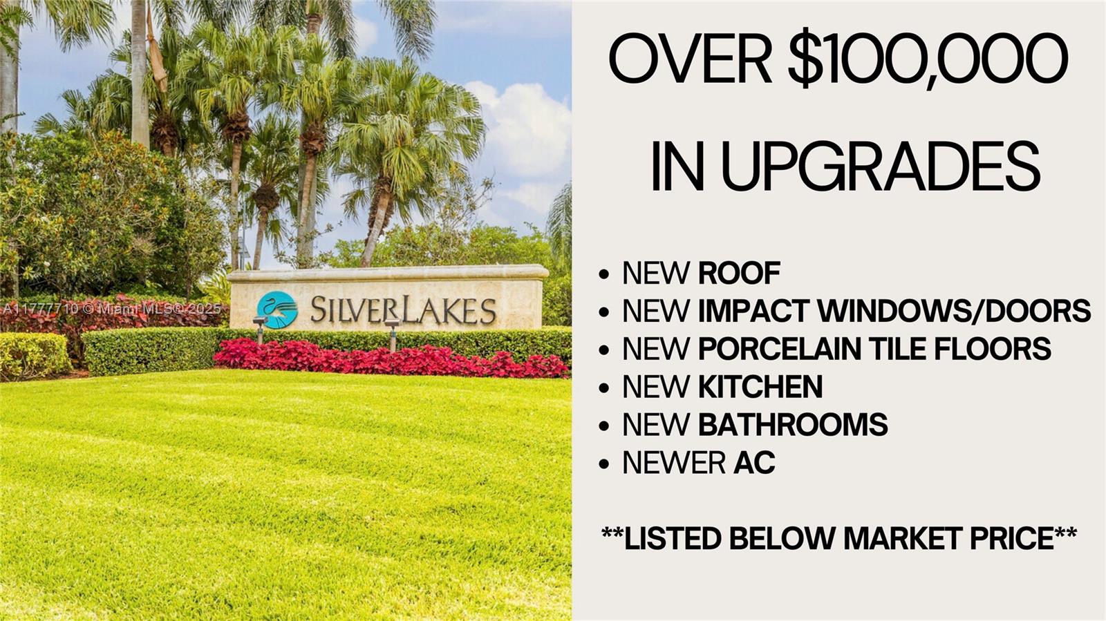 MAJOR PRICE REDUCTION! This stunning, fully renovated home—featuring over $100K in upgrades—is now priced below market value. Don’t miss your chance to own a move-in-ready gem in the desirable Silver Lakes community! Enjoy a NEW roof, kitchen, bathrooms, flooring, impact windows, and newer A/C. The home boasts soaring ceilings, a spacious open-concept layout, and a stylish kitchen with soft-close shaker cabinets, ample storage, and an elegant island. Updated bathrooms, porcelain tile, and luxury vinyl flooring add a modern touch throughout. Step outside to a cozy pergola-covered patio, perfect for relaxing or entertaining. Just steps from parks, the community pool, shopping, and A+ rated schools. Virtually staged to help you envision your dream home—come see it before it’s gone!