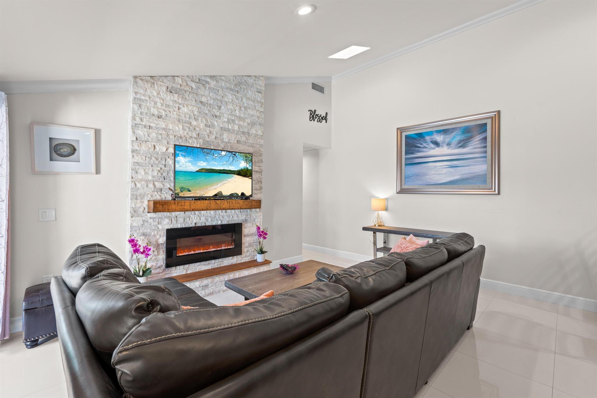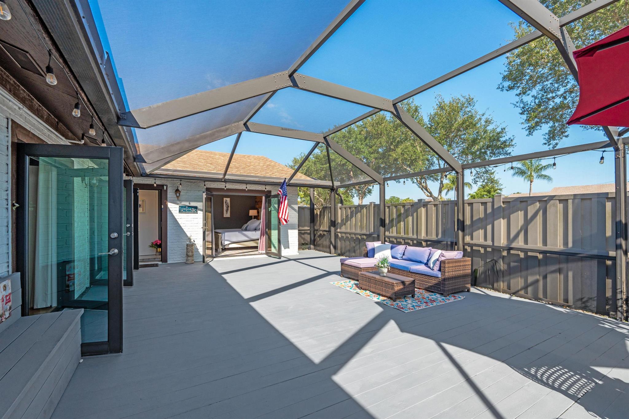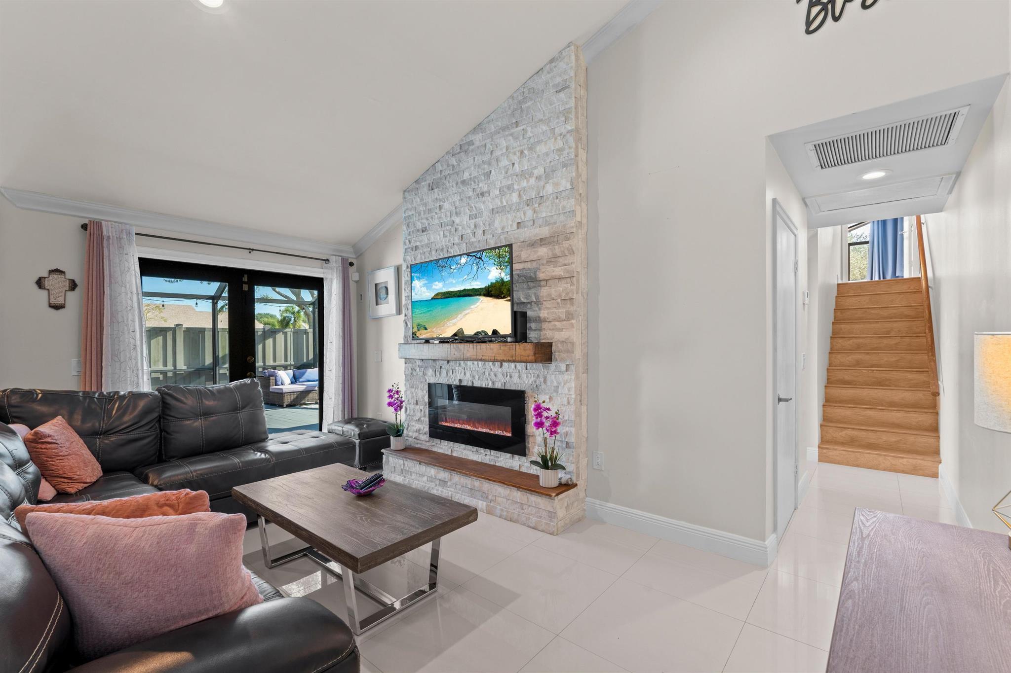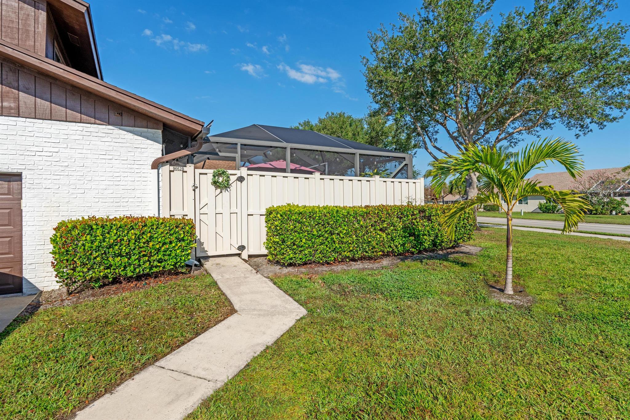 Townhouse in Boca Gardens - Just Move-In! Discover this beautiful, modern and FULLY updated 3-bedroom, 3.5-bathroom townhouse in the sought-after Boca Gardens community. With 1,325 sq. ft. of living space and an additional 800 square feet of freshly painted & private, fenced & screened in outdoor living space. Relax next to your fireplace,and enjoy the homes offerings of an open floor plan with vaulted ceilings to add to the homes large feel. Ideal for both relaxing and easy entertaining.Each bedroom features its own en-suite bathroom and a private guest bath. The large primary suite includes generously sized custom closets. The second bedroom offers its own private entrance and cabana bath. Recent upgrades add incredible valu