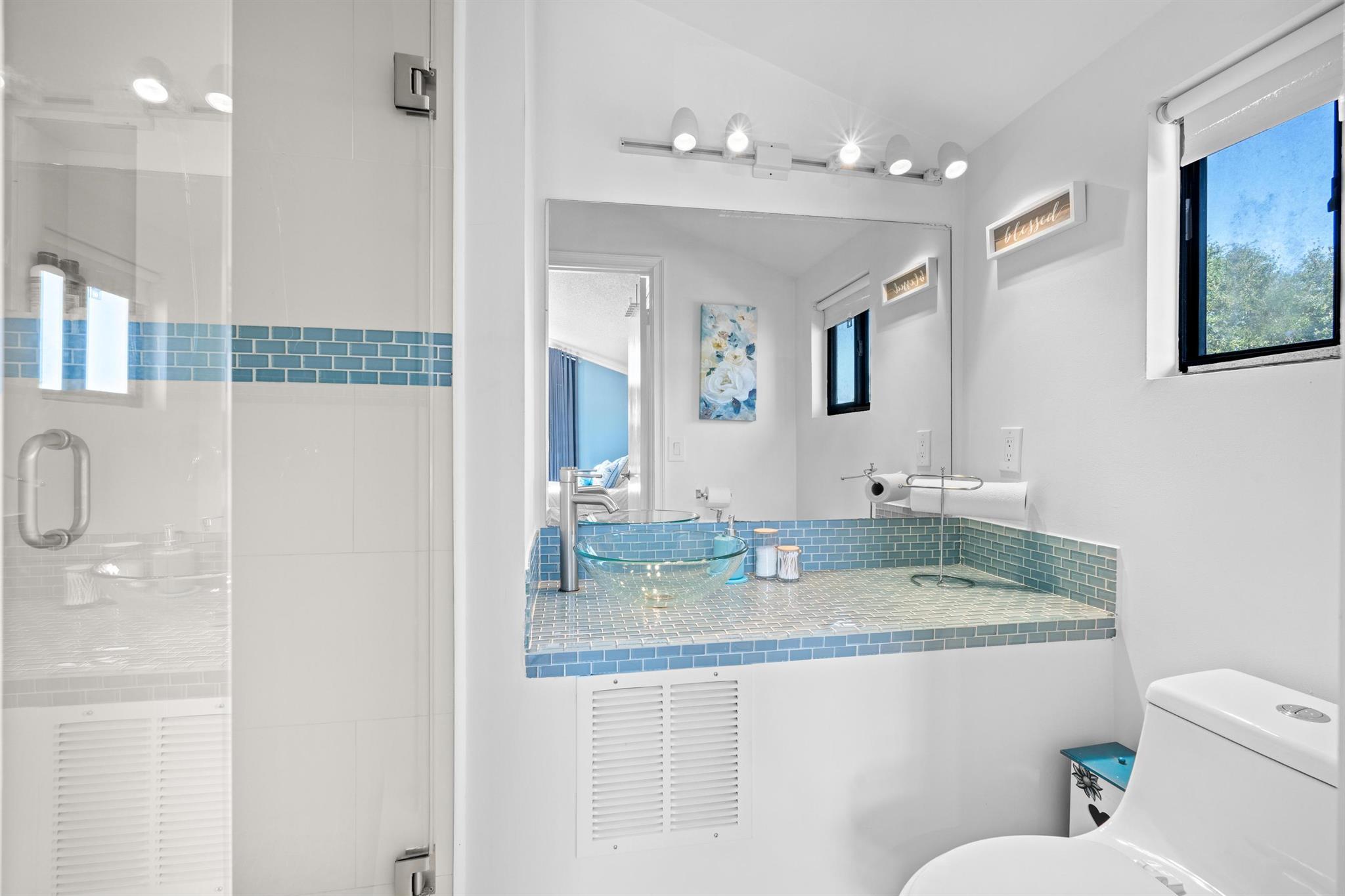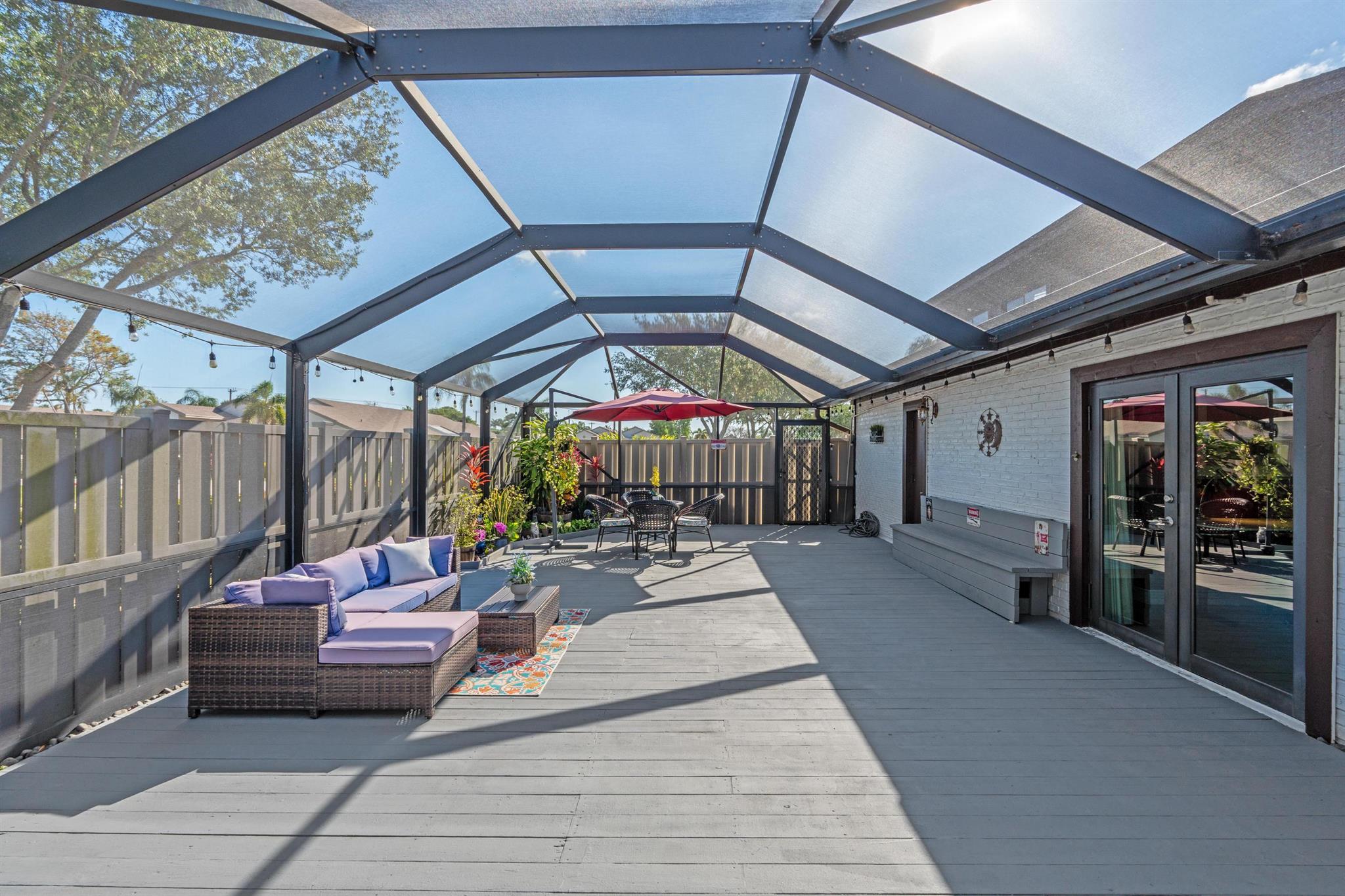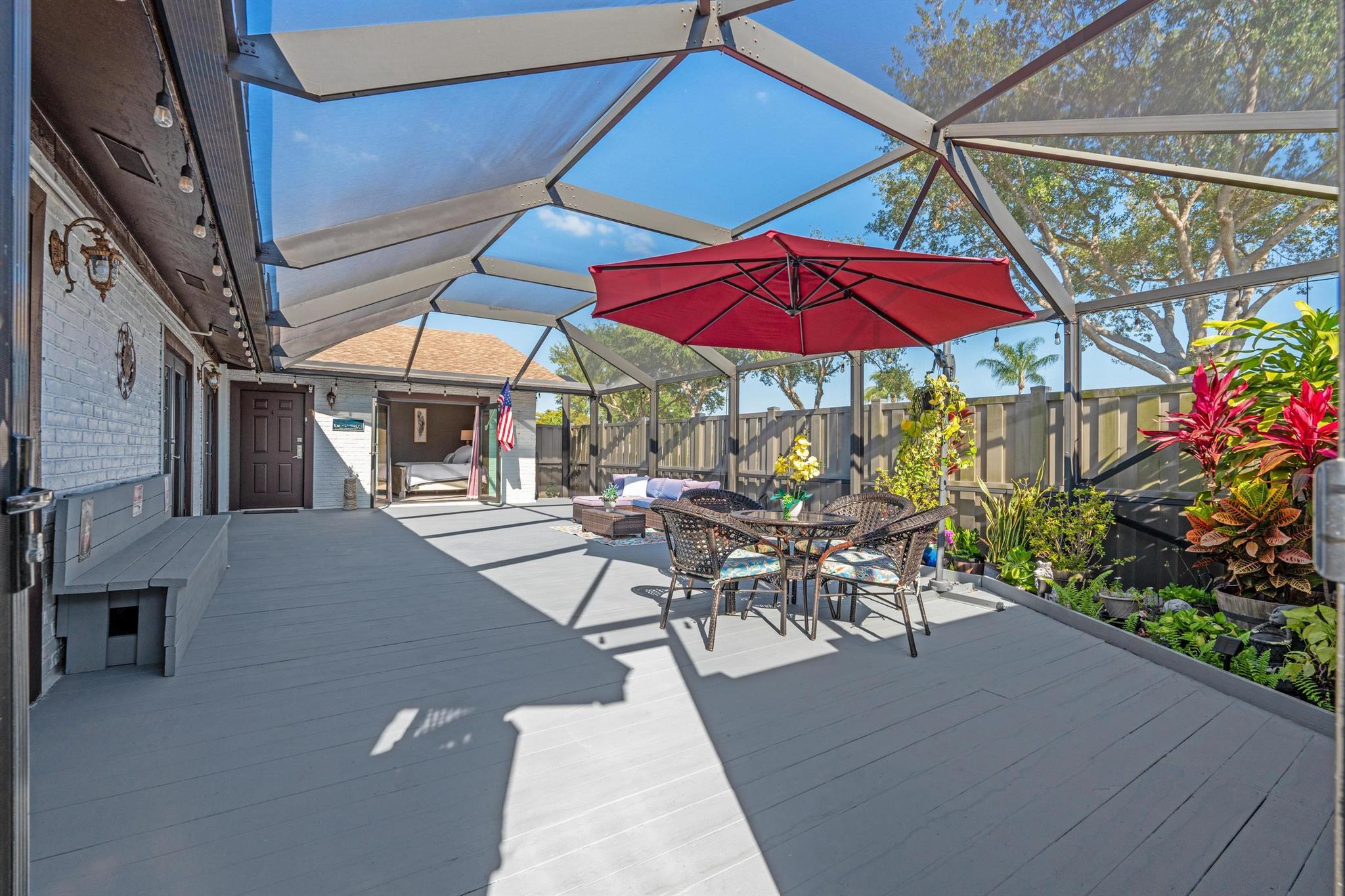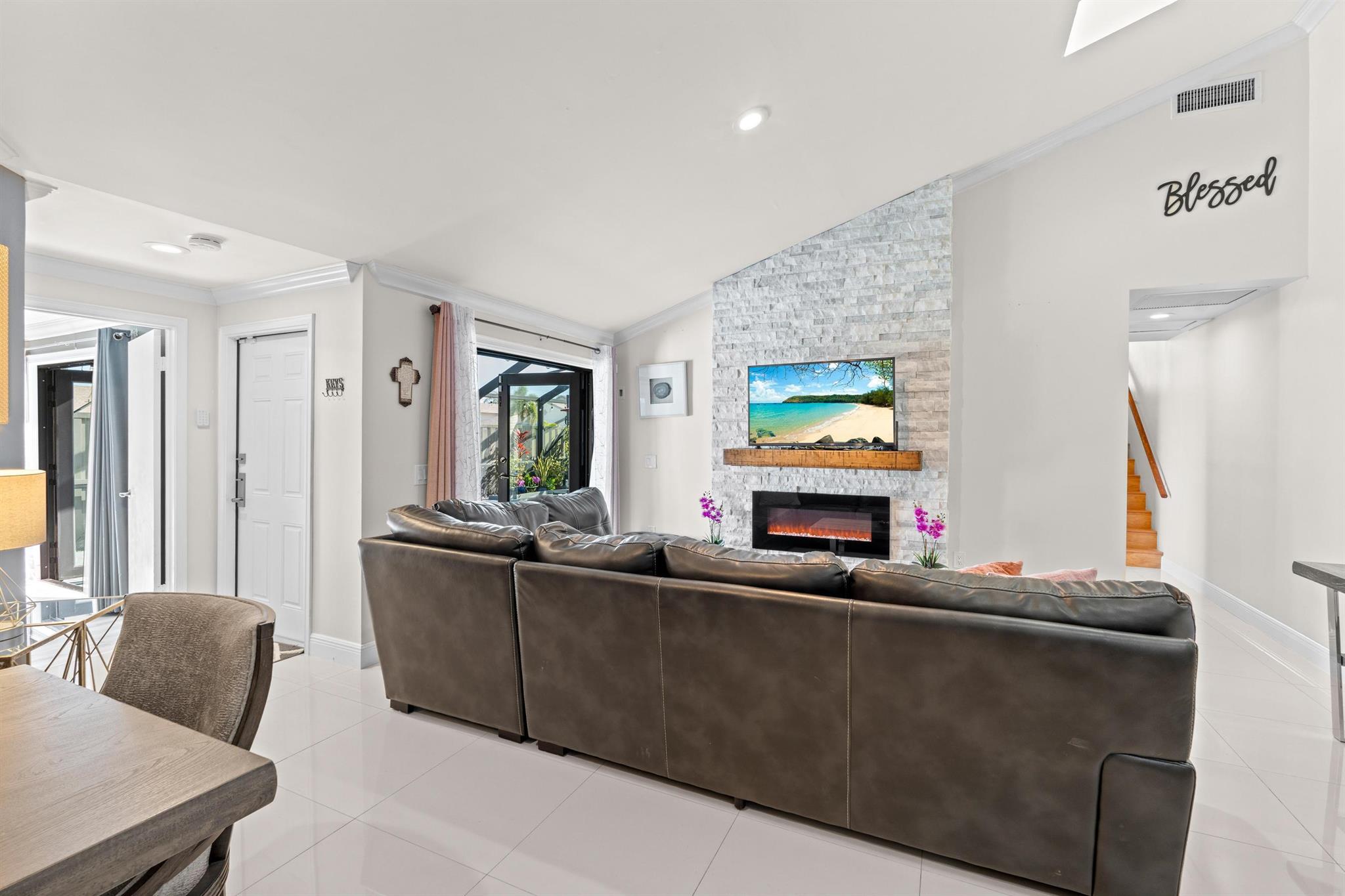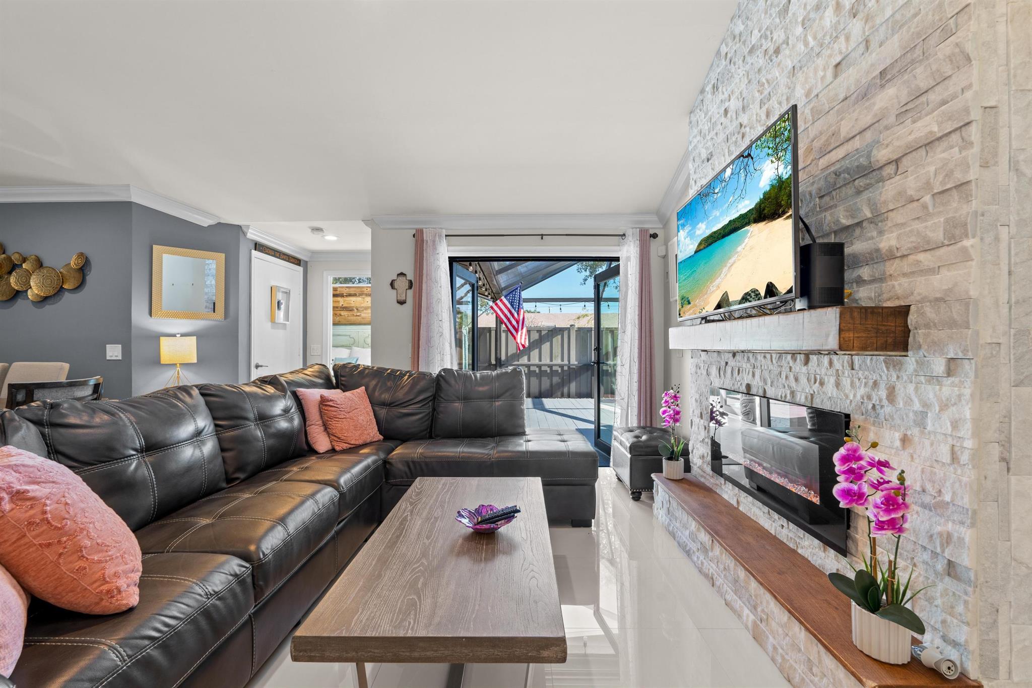 Townhouse in Boca Gardens - Just Move-In! Discover this beautiful, modern and FULLY updated 3-bedroom, 3.5-bathroom townhouse in the sought-after Boca Gardens community. With 1,325 sq. ft. of living space and an additional 800 square feet of freshly painted & private, fenced & screened in outdoor living space. Relax next to your fireplace,and enjoy the homes offerings of an open floor plan with vaulted ceilings to add to the homes large feel. Ideal for both relaxing and easy entertaining.Each bedroom features its own en-suite bathroom and a private guest bath. The large primary suite includes generously sized custom closets. The second bedroom offers its own private entrance and cabana bath. Recent upgrades add incredible valu