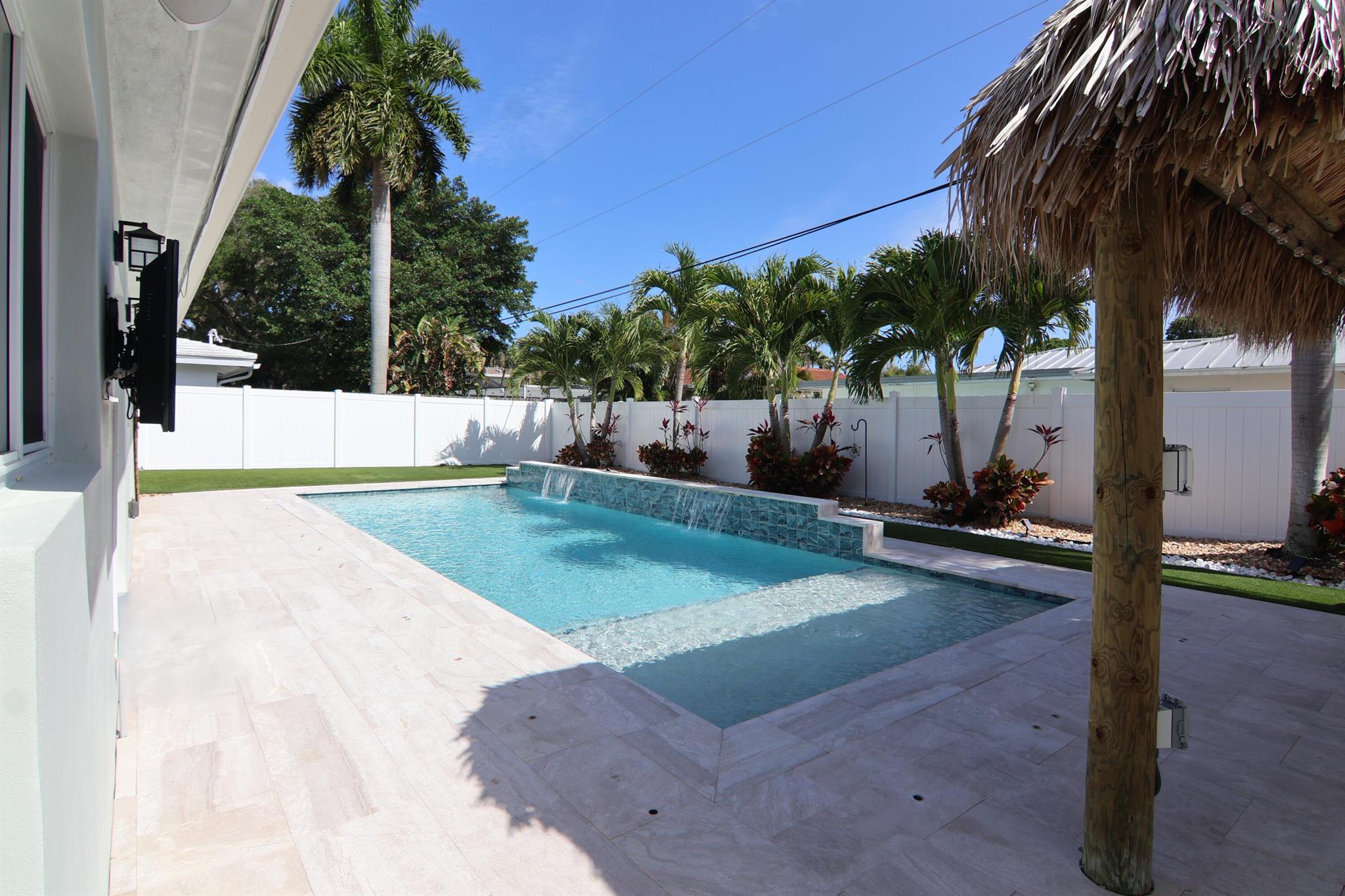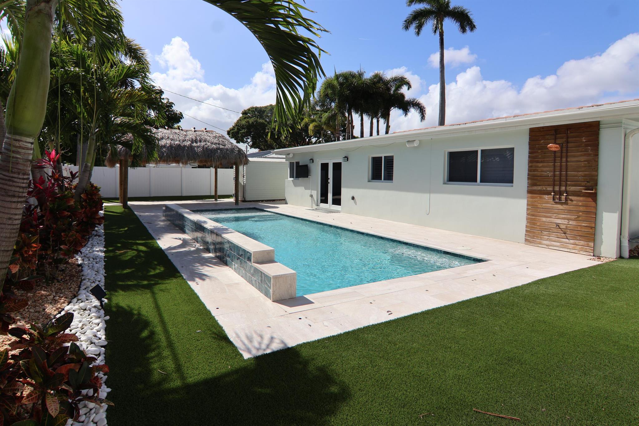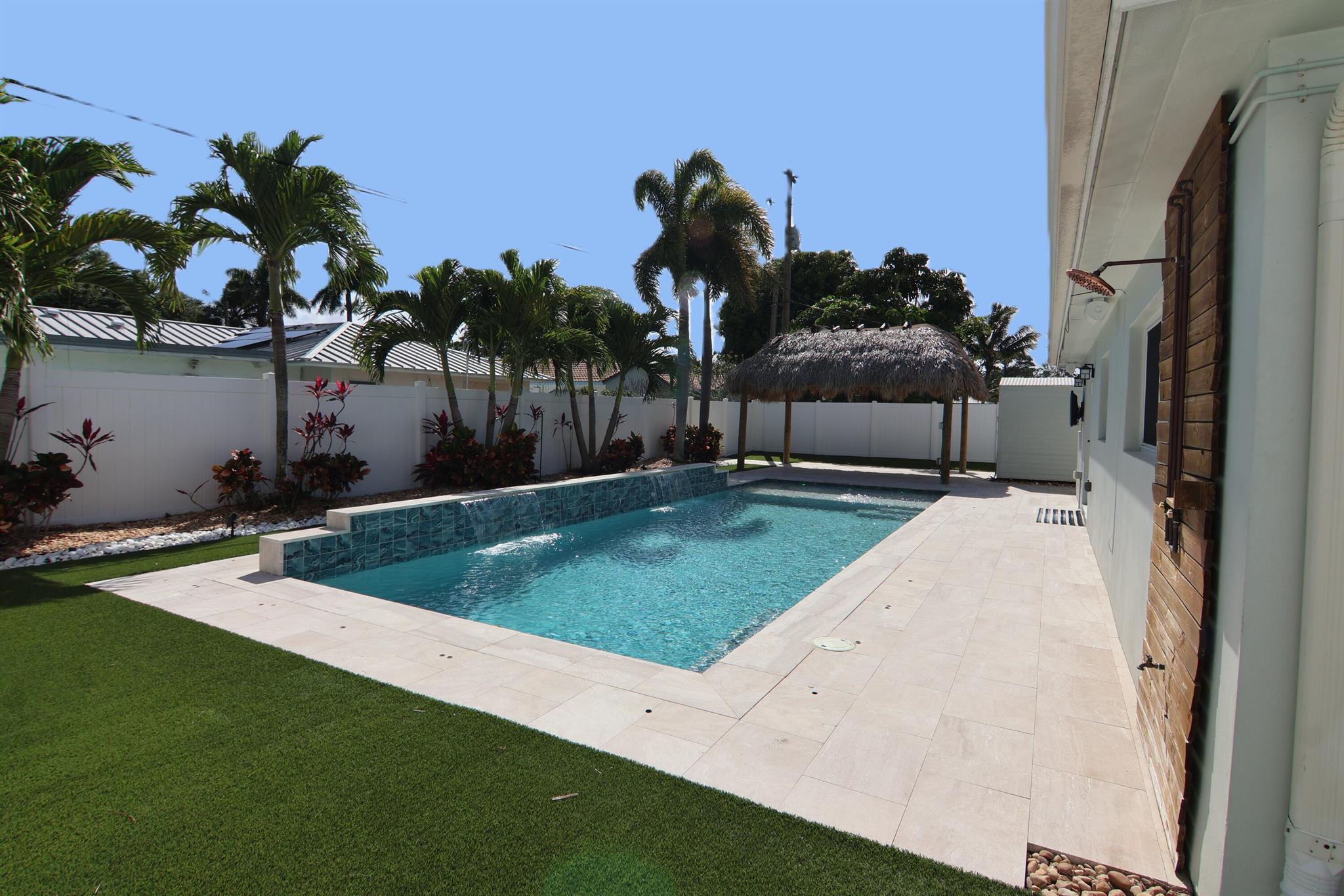 Schedule your appointment today to view this beautifully renovated single-family home in East Boca! No detail was overlooked in the home's updates. The backyard is a tropical retreat, featuring a newer (2020) saltwater heated pool with a sun shelf, a tiki hut, premium turf, a large shed, and a PVC fence.In 2019, a 504-square-foot addition expanded the home, adding a 4th bedroom and a large family room. The kitchen and bathrooms have been updated, and the home is equipped with full-impact doors and windows, complemented by plantation shutters. There are three AC units, including one main unit and two mini splits for the addition. The original underground galvanized pipes have been replaced.This home is just 2 miles to Mizner Park, 2 miles to FAU, and 2.8 miles to the beach.
