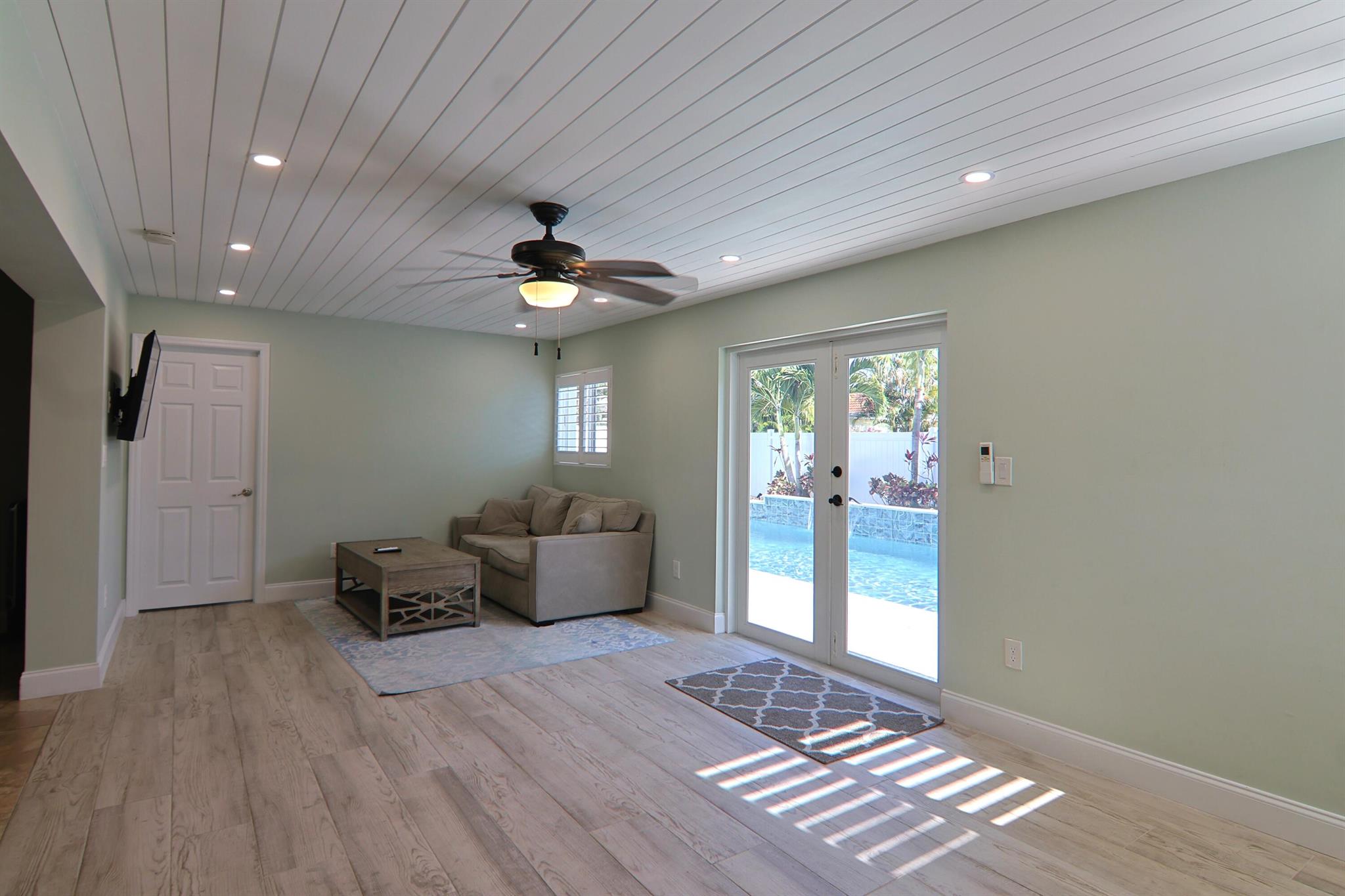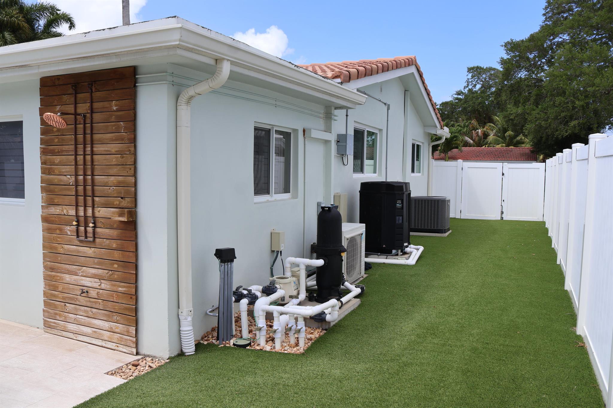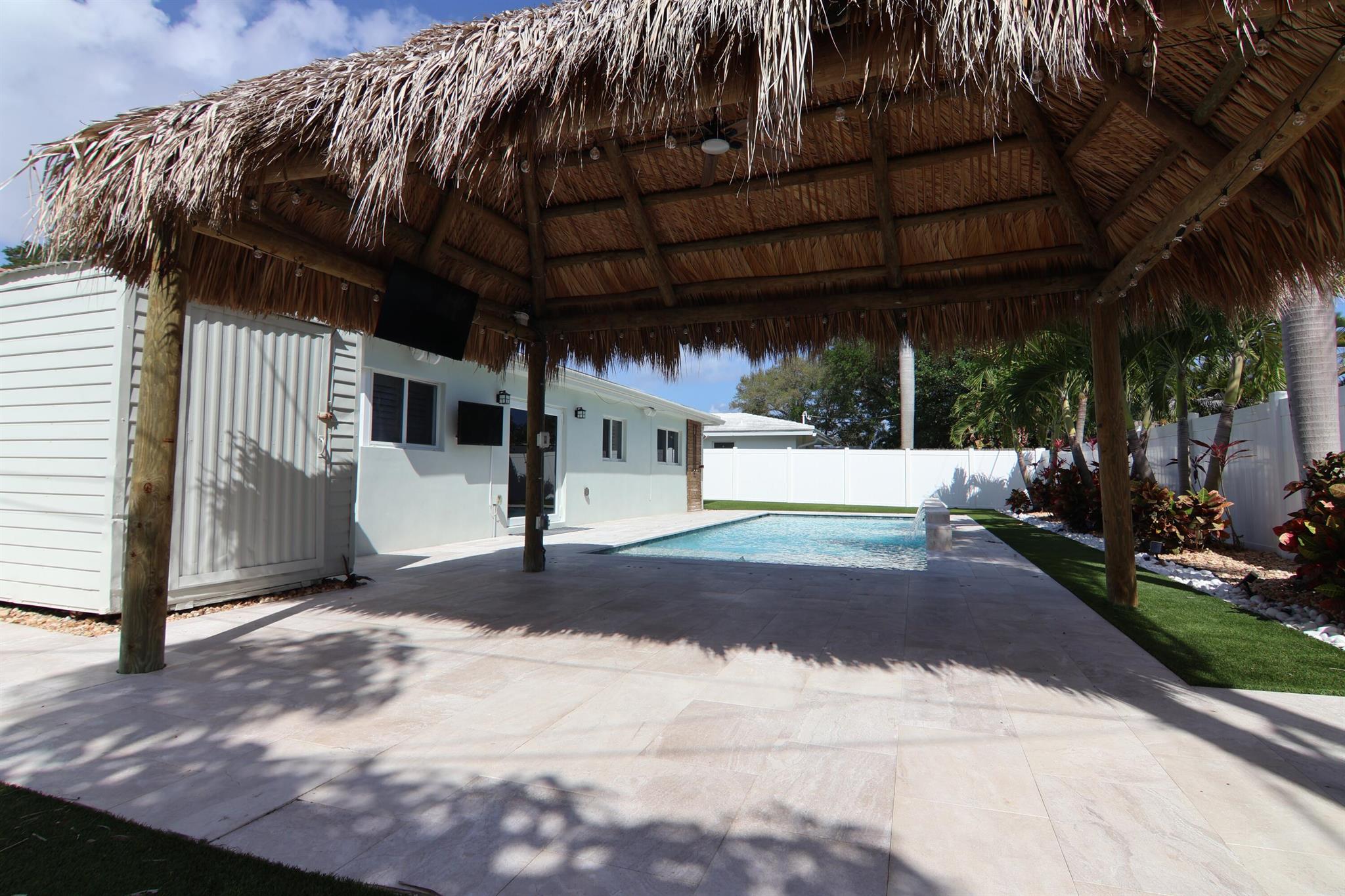 Schedule your appointment today to view this beautifully renovated single-family home in East Boca! No detail was overlooked in the home's updates. The backyard is a tropical retreat, featuring a newer (2020) saltwater heated pool with a sun shelf, a tiki hut, premium turf, a large shed, and a PVC fence.In 2019, a 504-square-foot addition expanded the home, adding a 4th bedroom and a large family room. The kitchen and bathrooms have been updated, and the home is equipped with full-impact doors and windows, complemented by plantation shutters. There are three AC units, including one main unit and two mini splits for the addition. The original underground galvanized pipes have been replaced.This home is just 2 miles to Mizner Park, 2 miles to FAU, and 2.8 miles to the beach.