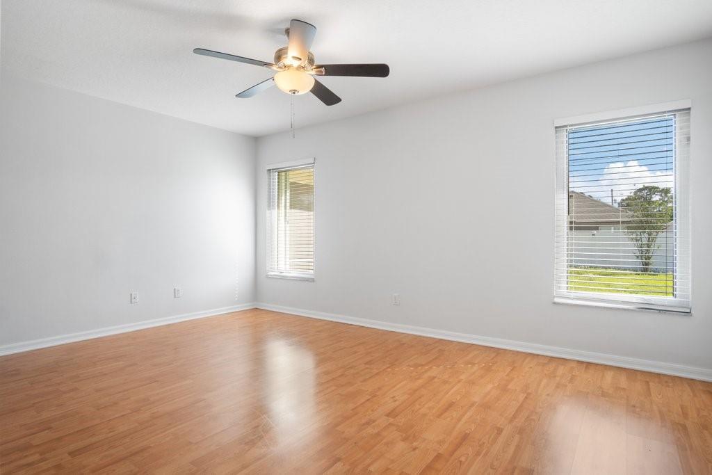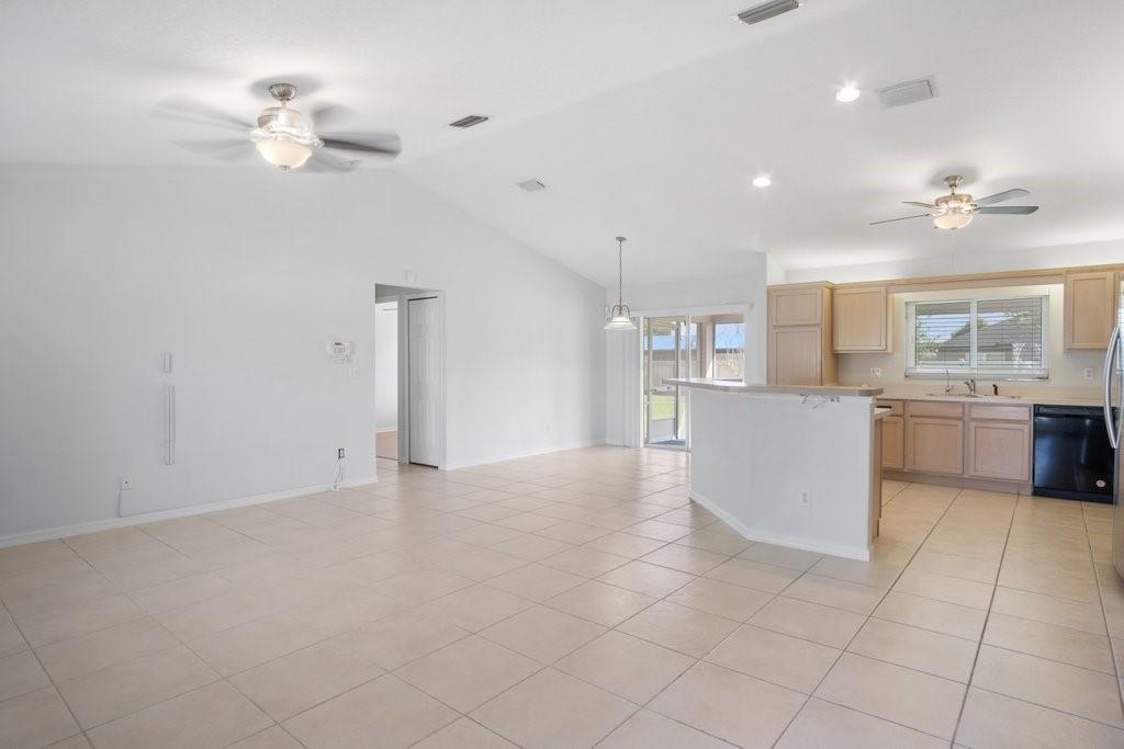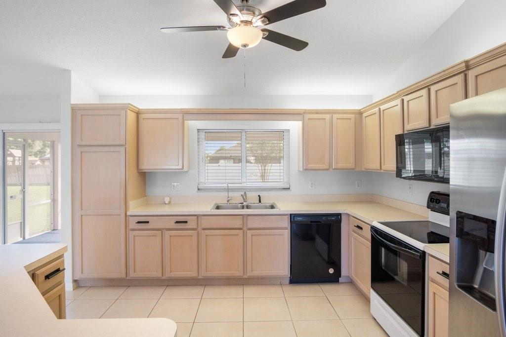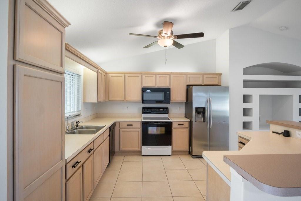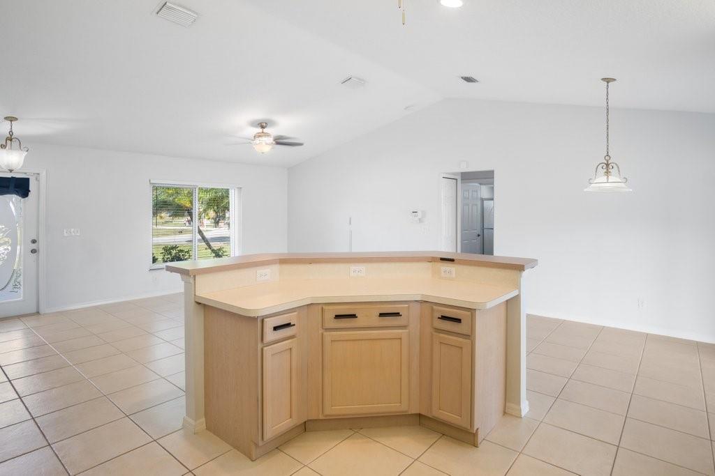 Well maintained, 3 bed/2 bath concrete block home with two car garage on a private cul-de-sac. Home features a very open floor plan with high ceilings and is on an oversized lot with plenty of room for a pool. All impact windows, plus accordion shutters make this home very well protected during storms. Split floor plan, large, open kitchen with island and bar seating. Tile floors throughout living areas with vinyl plank flooring in bedrooms. Primary bedroom features walk-in closet, double sinks in bathroom, large soaking tub and separate shower. Inside laundry room, washer and dryer included, and brand new water heater. Relax on your large, covered, screened in back patio overlooking the spacious backyard, complete with irrigation system. Seller will provide new roof with full-price offer.