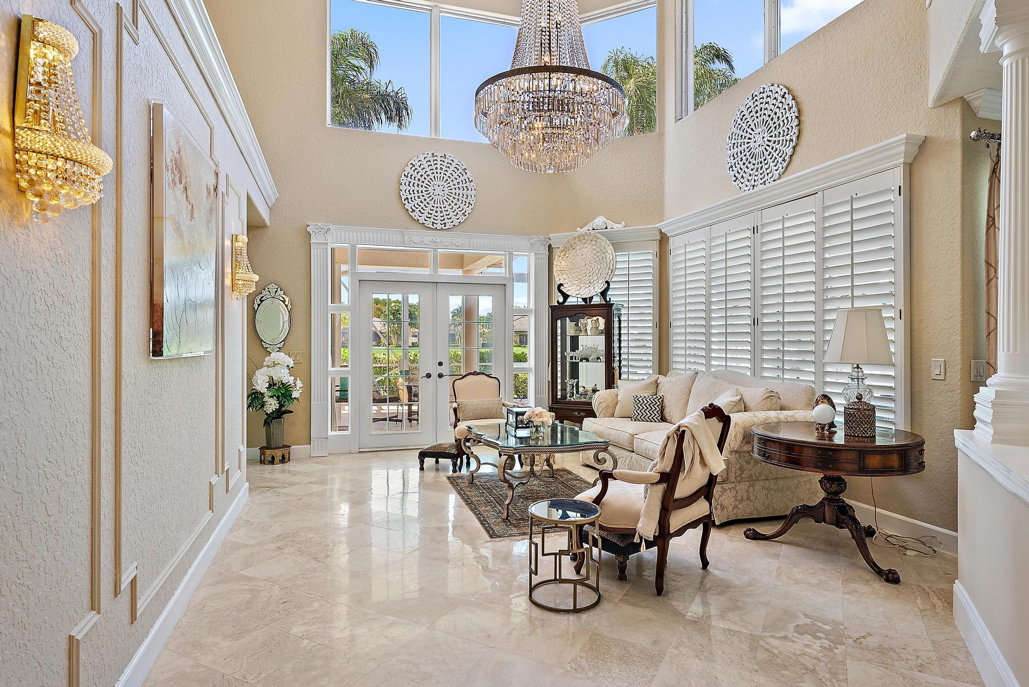 IMMEDIATE PREMIER GOLF MEMBERSHIP AVAILABLE WITH THE PURCHASE OF THIS HOME. Renovations and upgrades throughout this beautifully positioned 3BR/4BA+Den+Loft Ecclestone Signature Home located on the second fairway of the BRAND NEW, Nicklaus-designed Heritage Course. Boasting a NEW ROOF (December, 2023), and complete hurricane protection (Impact Glass + Accordian Shutters), this home is move-in perfect. Located in the epicenter of Ibis with a desirable southern exposure in the rear. Architectural grandeur, soaring ceilings, marble flooring throughout the main living areas and extensive moldings characterize this classic and timeless home. The kitchen was renovated in 2020 and features upgraded appliances, including a 1-year-old microwave, and fridge. The dishwasher is two years old.