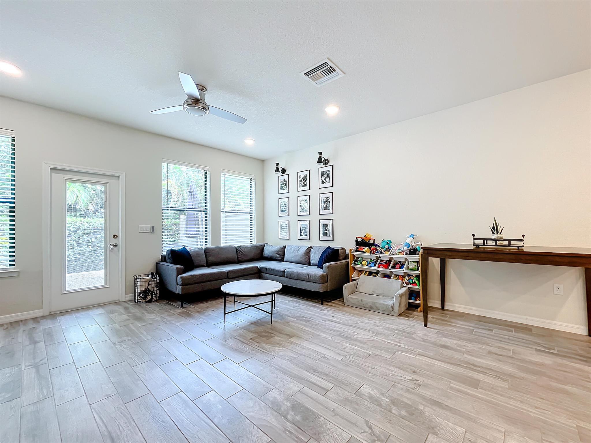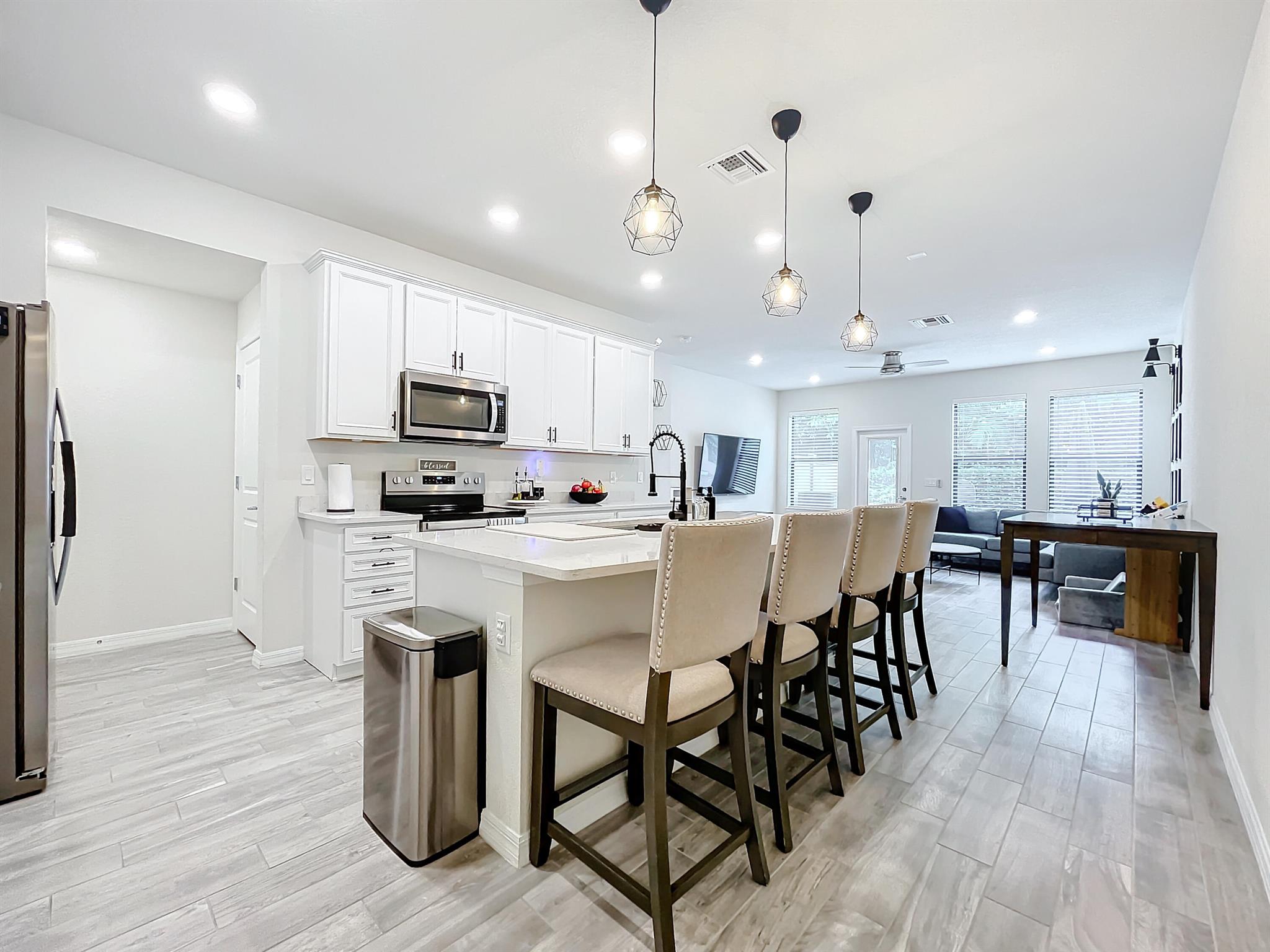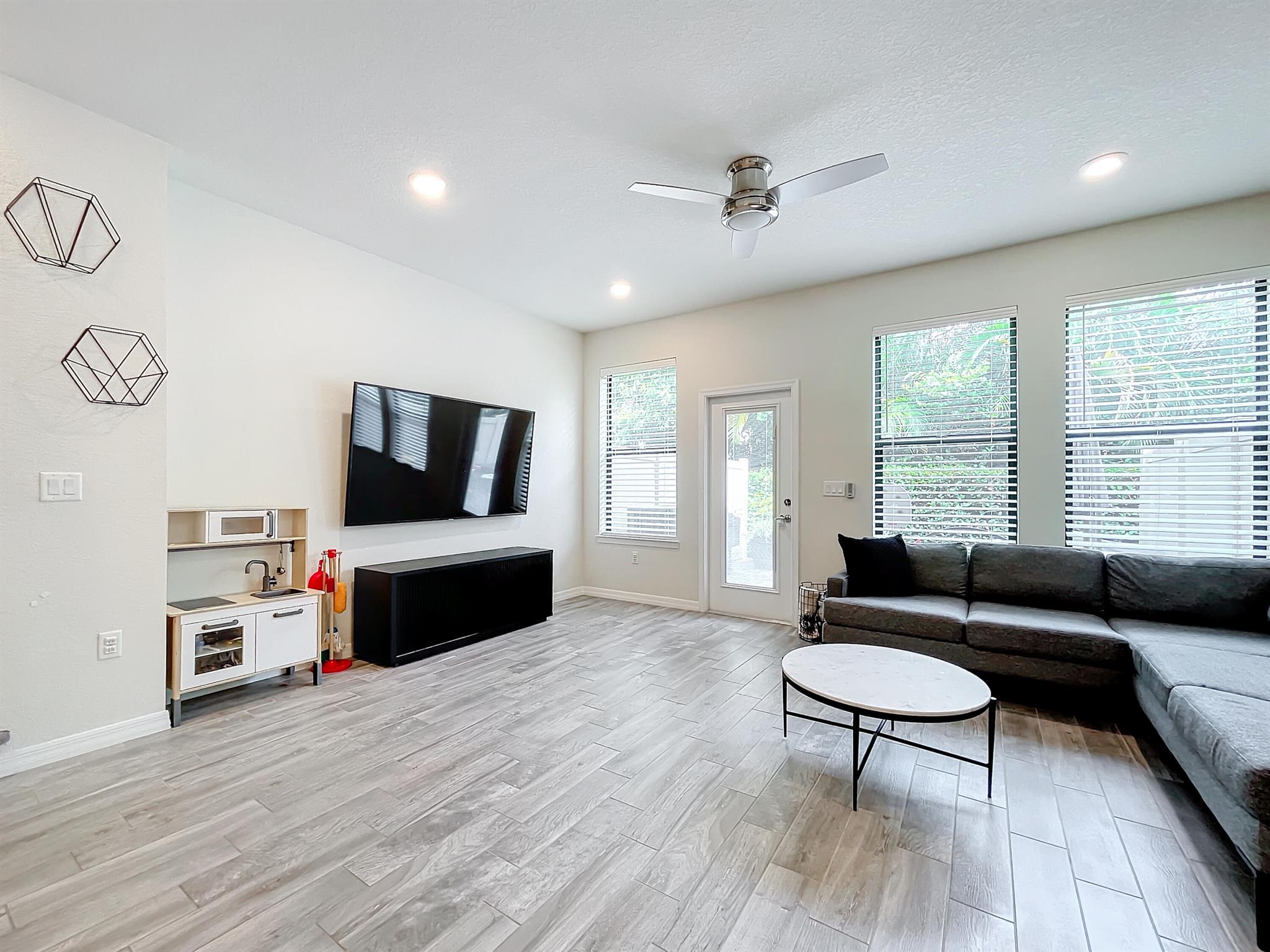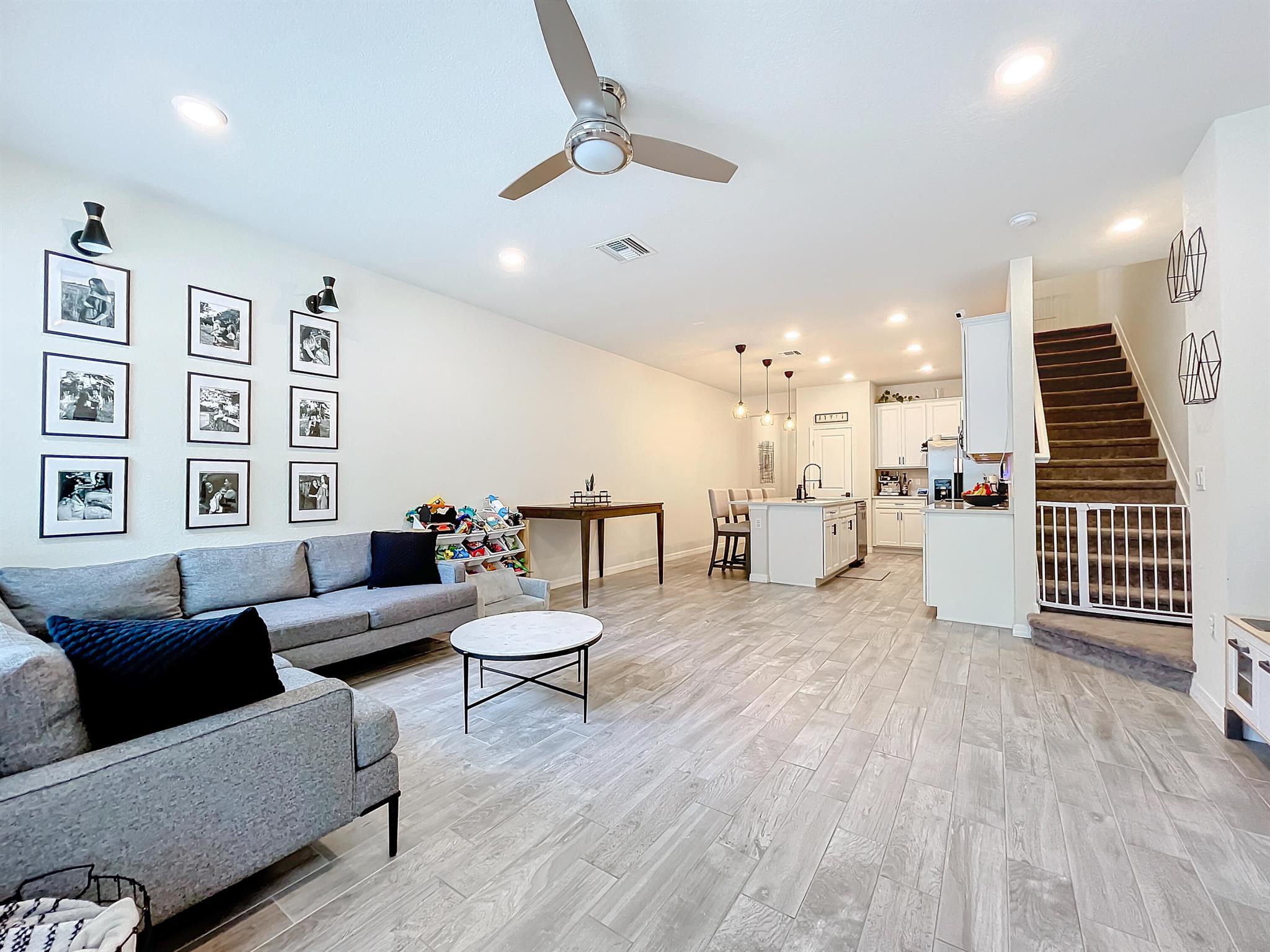 Nestled within the gated community of Preston Square, this spacious and bright 3-bedroom, 2.5-bathroom townhouse offers modern living with thoughtful upgrades. Built just 5 years ago, the home features gorgeous wood tile flooring throughout the first floor. The kitchen boasts 42-inch cabinets, tasteful pendant lights, and extra recessed lighting, providing the perfect ambiance for cooking and entertaining. You will also find quartz countertops in both the kitchen and bathrooms, as well as beautifully upgraded bathroom vanities, adding a touch of luxury to your daily routine. Recently, the dryer was replaced and upgraded, ensuring maximum efficiency and convenience. The front of the home has also been enhanced with fresh new plants and landscaping, adding to the home's curb appeal.