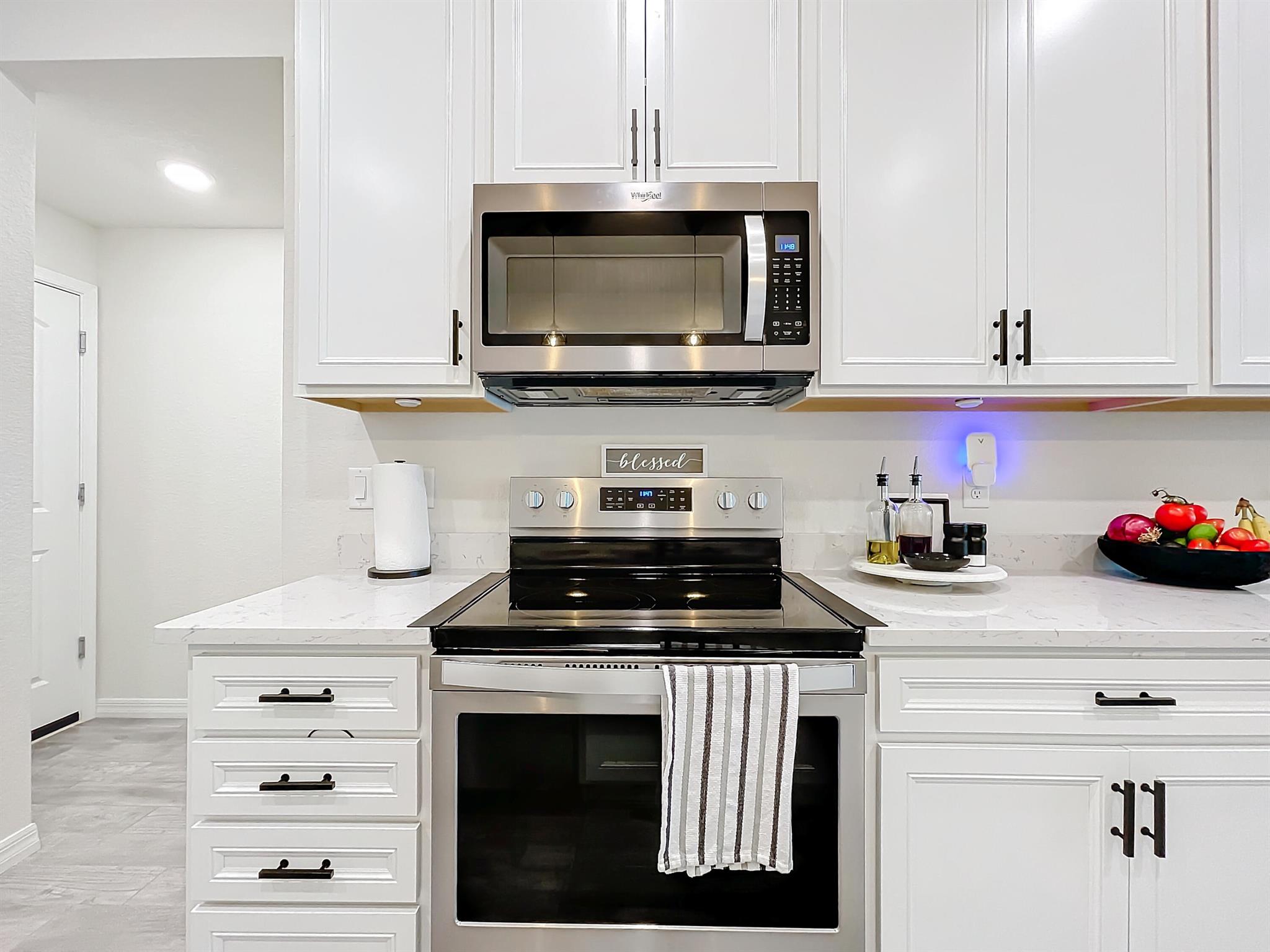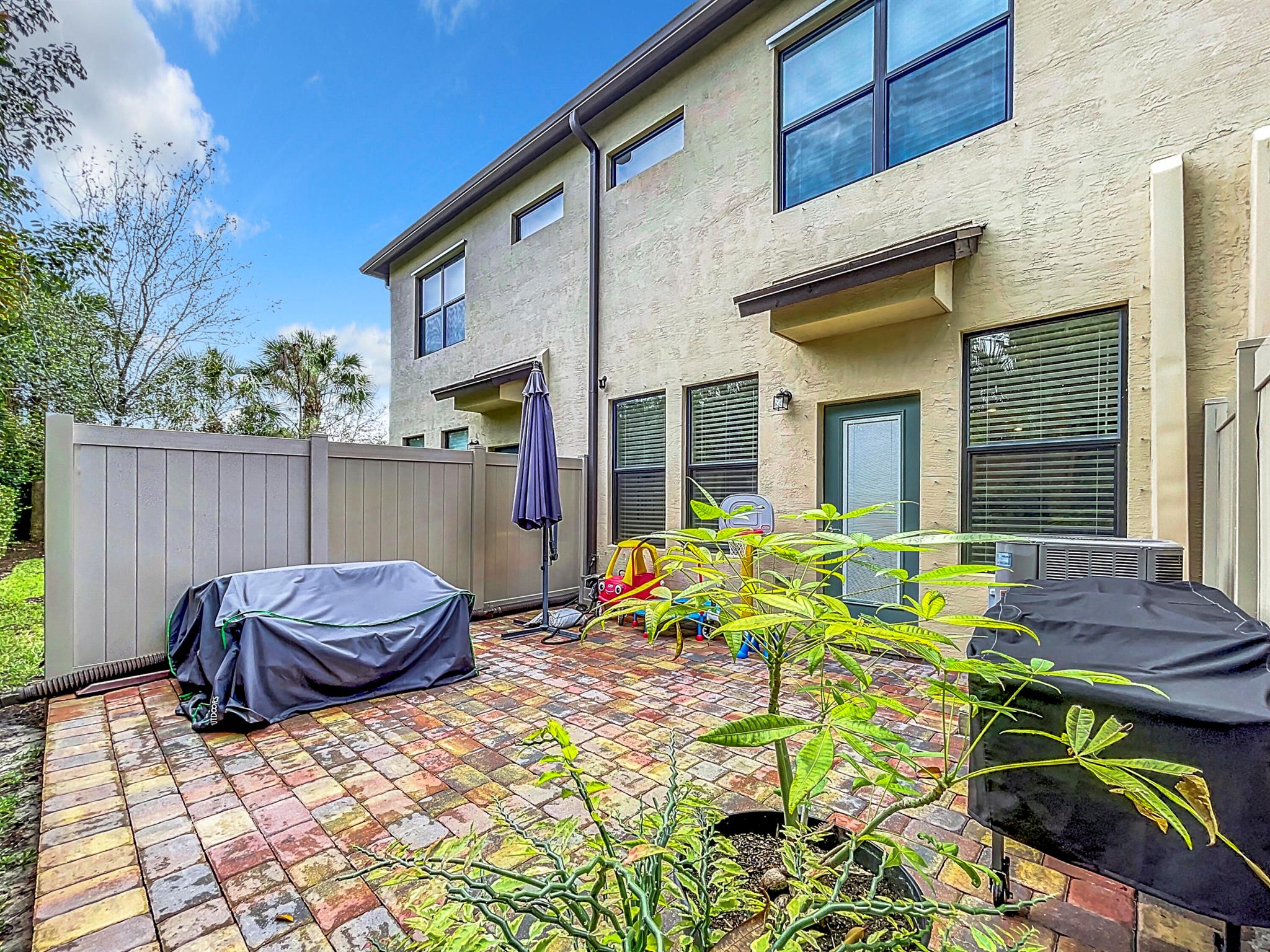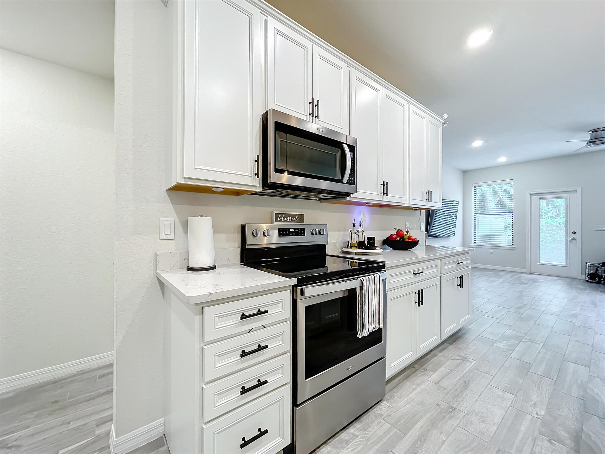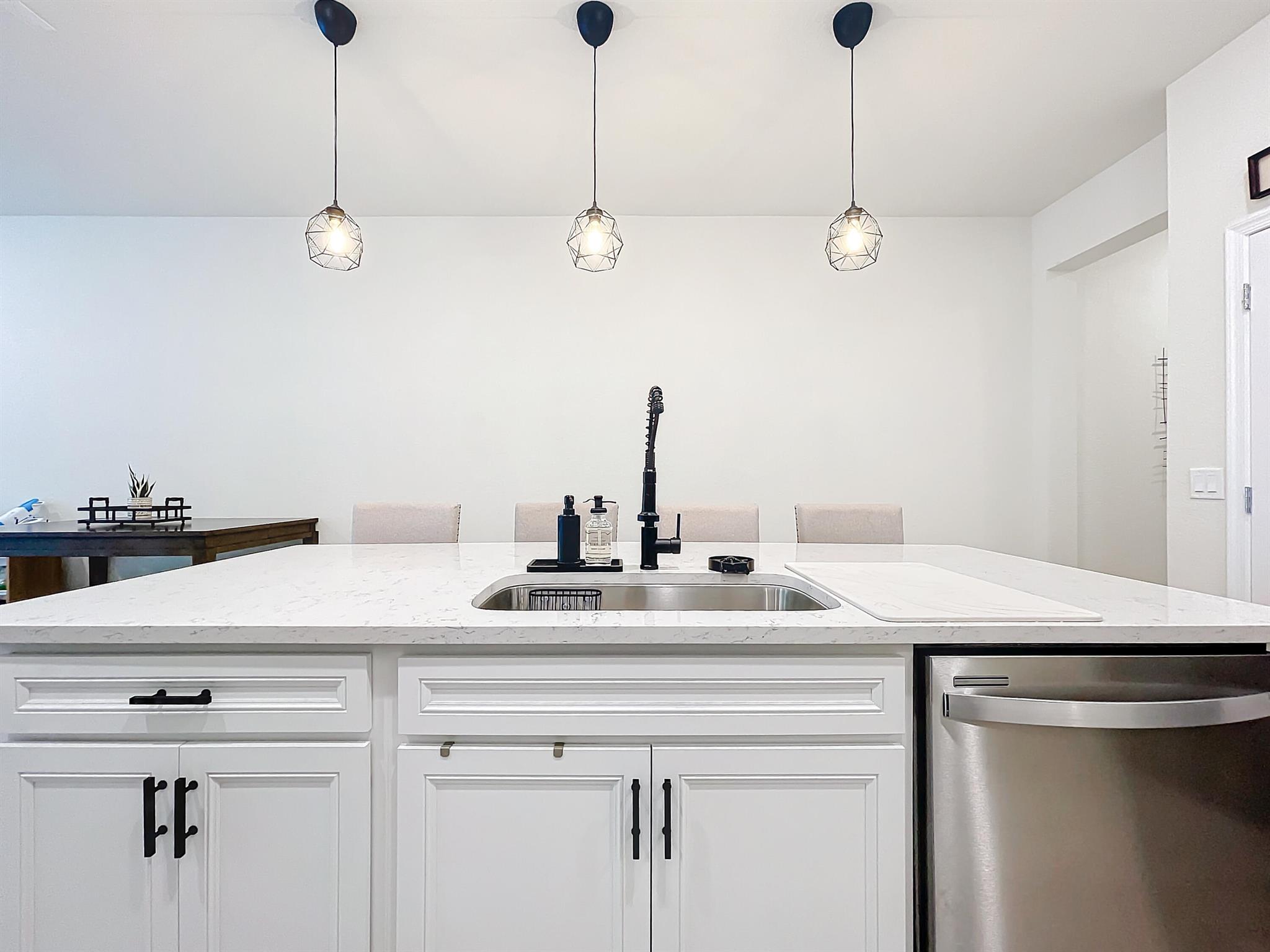 Nestled within the gated community of Preston Square, this spacious and bright 3-bedroom, 2.5-bathroom townhouse offers modern living with thoughtful upgrades. Built just 5 years ago, the home features gorgeous wood tile flooring throughout the first floor. The kitchen boasts 42-inch cabinets, tasteful pendant lights, and extra recessed lighting, providing the perfect ambiance for cooking and entertaining. You will also find quartz countertops in both the kitchen and bathrooms, as well as beautifully upgraded bathroom vanities, adding a touch of luxury to your daily routine. Recently, the dryer was replaced and upgraded, ensuring maximum efficiency and convenience. The front of the home has also been enhanced with fresh new plants and landscaping, adding to the home's curb appeal.