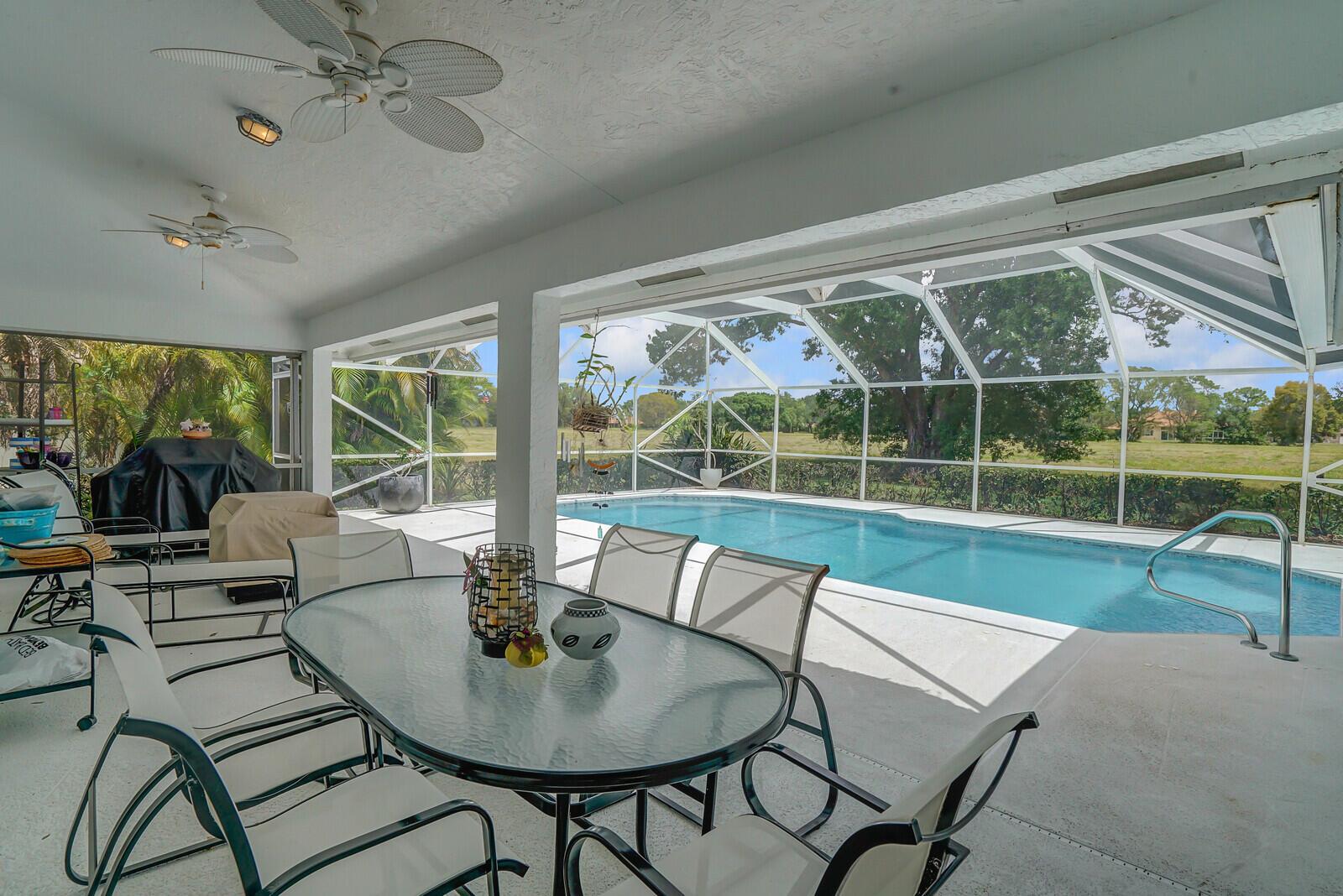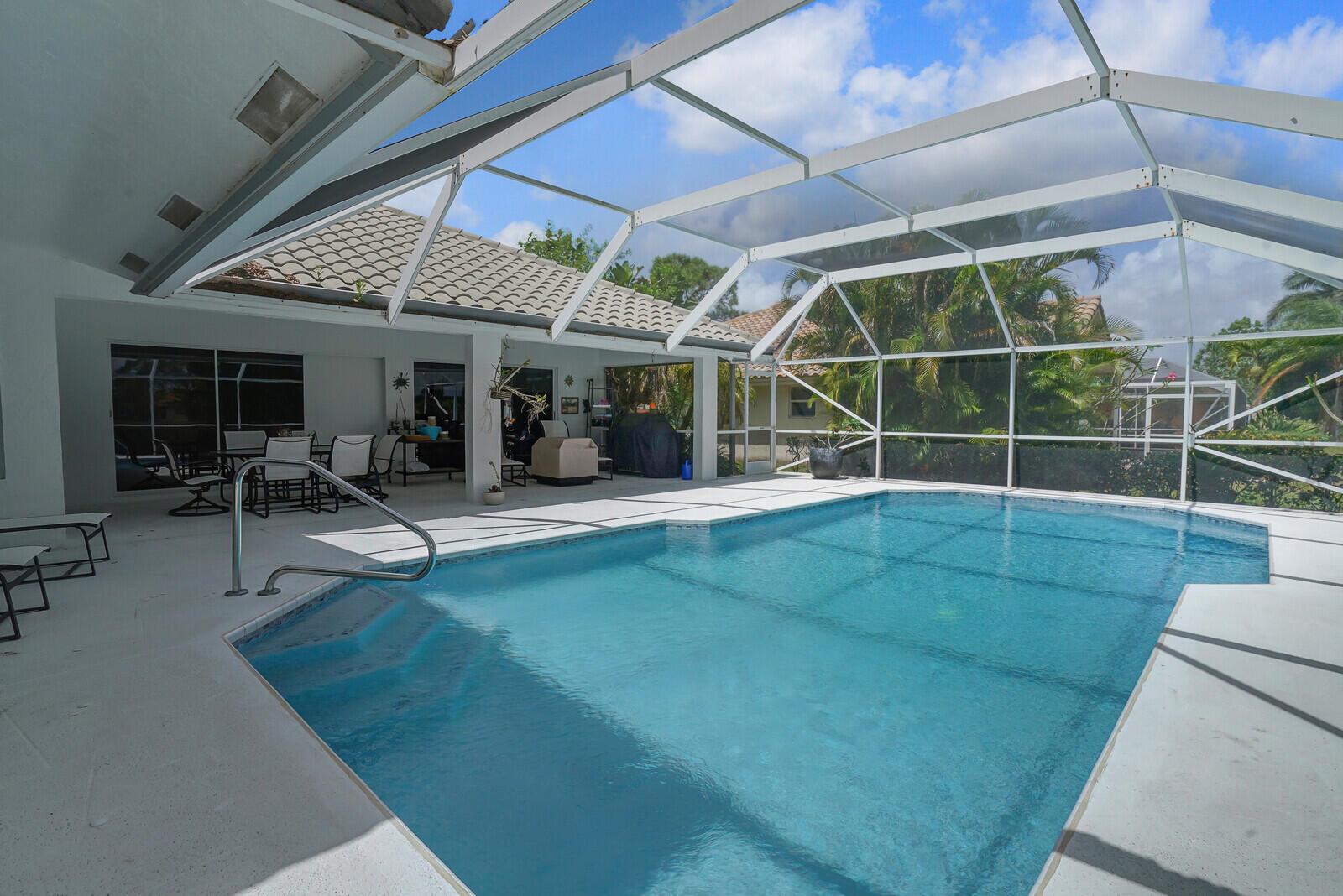 UPGRADED & METICULOUSLY MAINTAINED HOME WHICH CONSISTS OF 4BR'S, 3 1/2 BTHS. BACKYARD HAS A SCREENED IN PATIO W/ POOL ON A PRIVATE LOT W/ NO HOMES IN SITE. GOURMET KITCHEN WAS REMODELED 10 YEARS AGO WHICH CONSISTS OF WHITE CABINETS W/ LOTS OF PULL OUTS, BLACK GRANITE COUNTERTOPS W/ MATCHING BACKSPLASH, SS APPLIANCES,BRAND NEW REFRIGERATOR, LARGE D SINK, SEPARATE EATING AREA, WINE REFRIGERATOR, & UNDER CABINET LIGHTING. GREAT ROOM HAS BUILT IN UNIT. THERE IS A FORMAL DINING ROOM & LIVING ROOM. PRIMARY BR HAS 2 WALK IN CLOSETS, TOTALLY REDONE BTH W/ FREE STANDING TUB, BATHS HAVE REPLACED VANITIES & SINKS. THERE IS A CABANA BTH! VAULTED CEILINGS! ROOF IS 15 YRS OLD! BOTH A/C UNITS ARE 5 YEARS OLD! WASHER & DRYER ARE 2 YRS OLD! POOL HAS BEEN RESURFACED & RETILED! GREAT SCHOOLS!