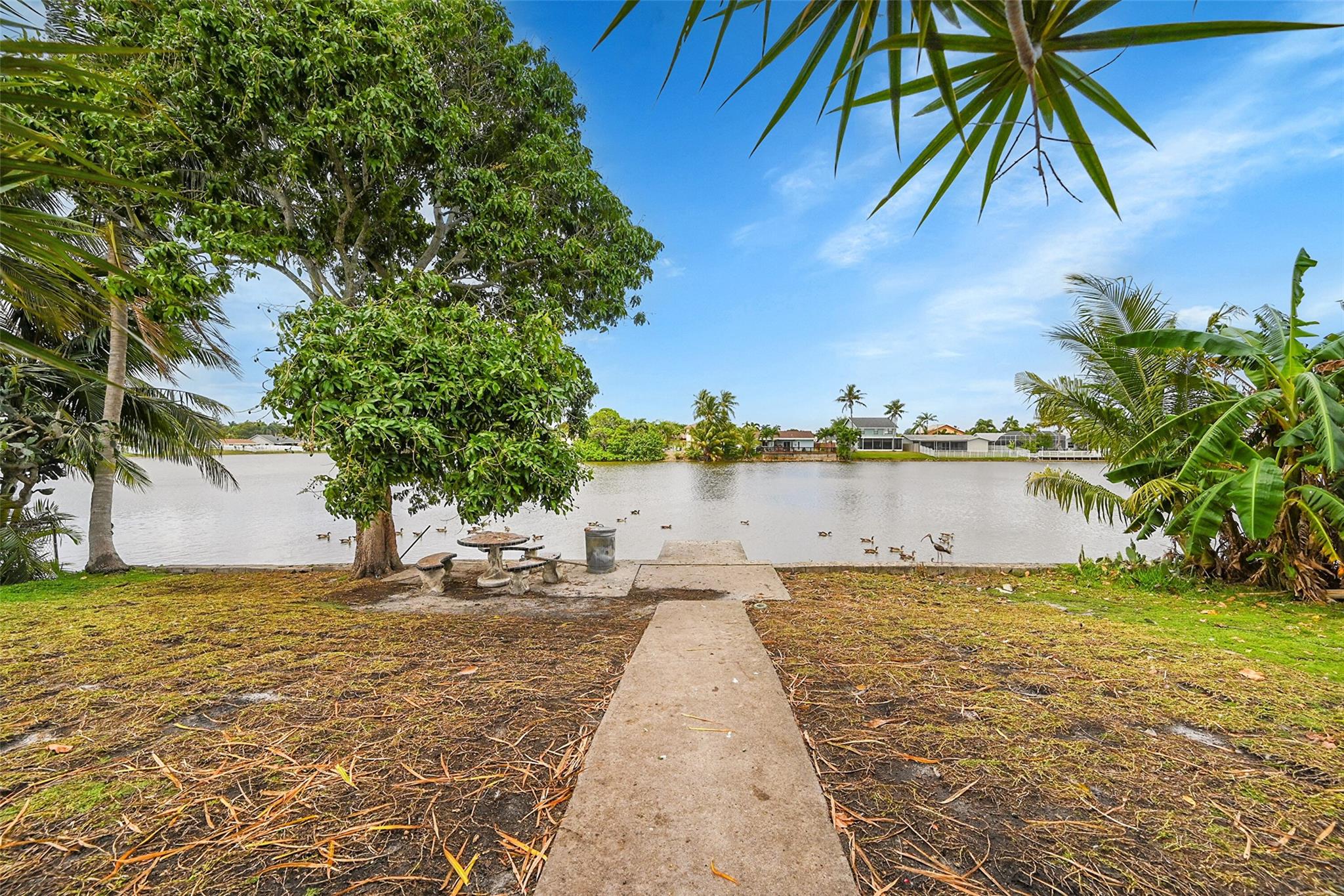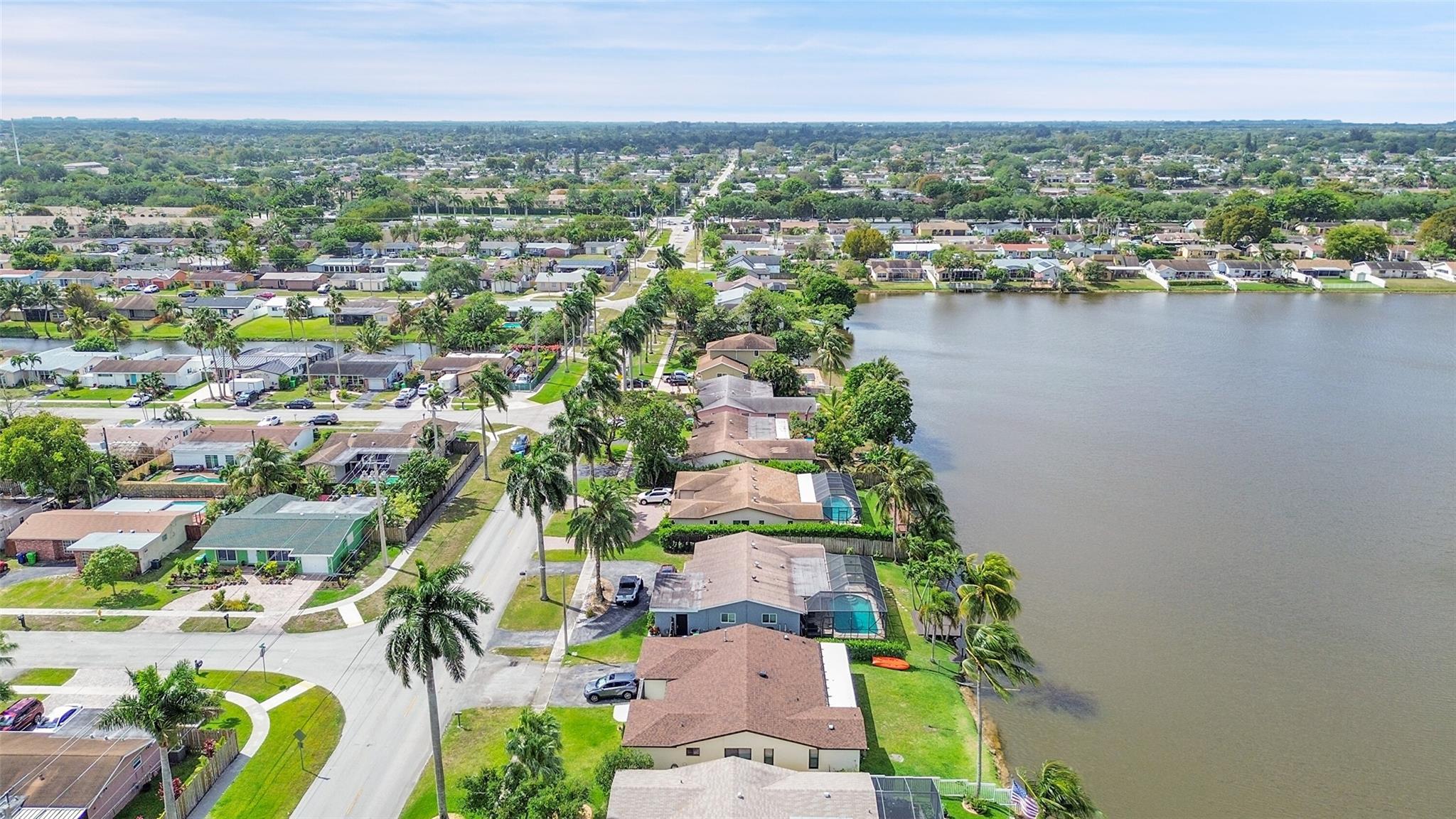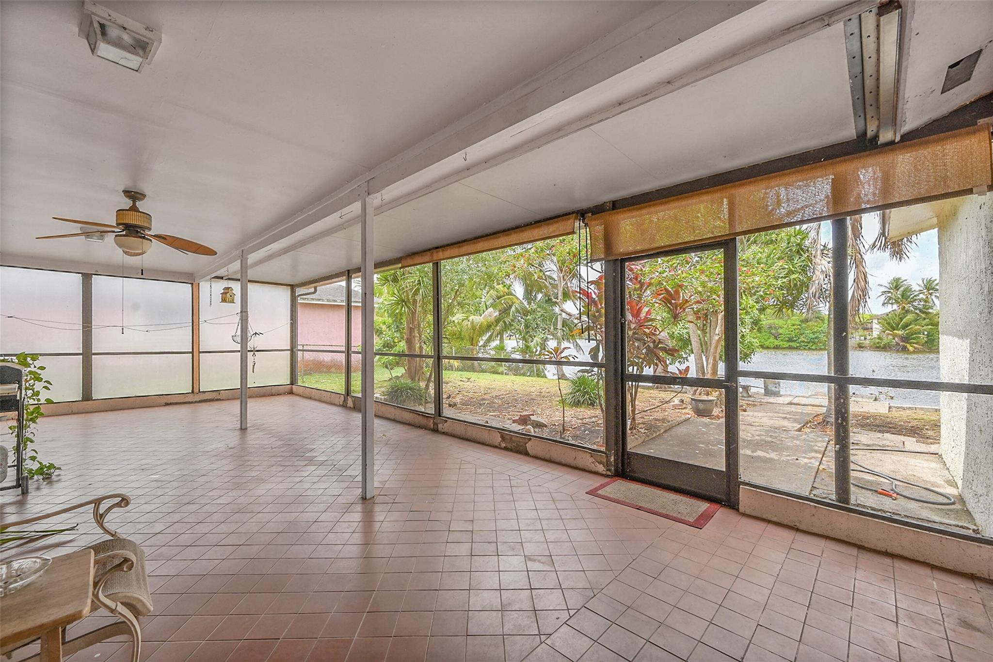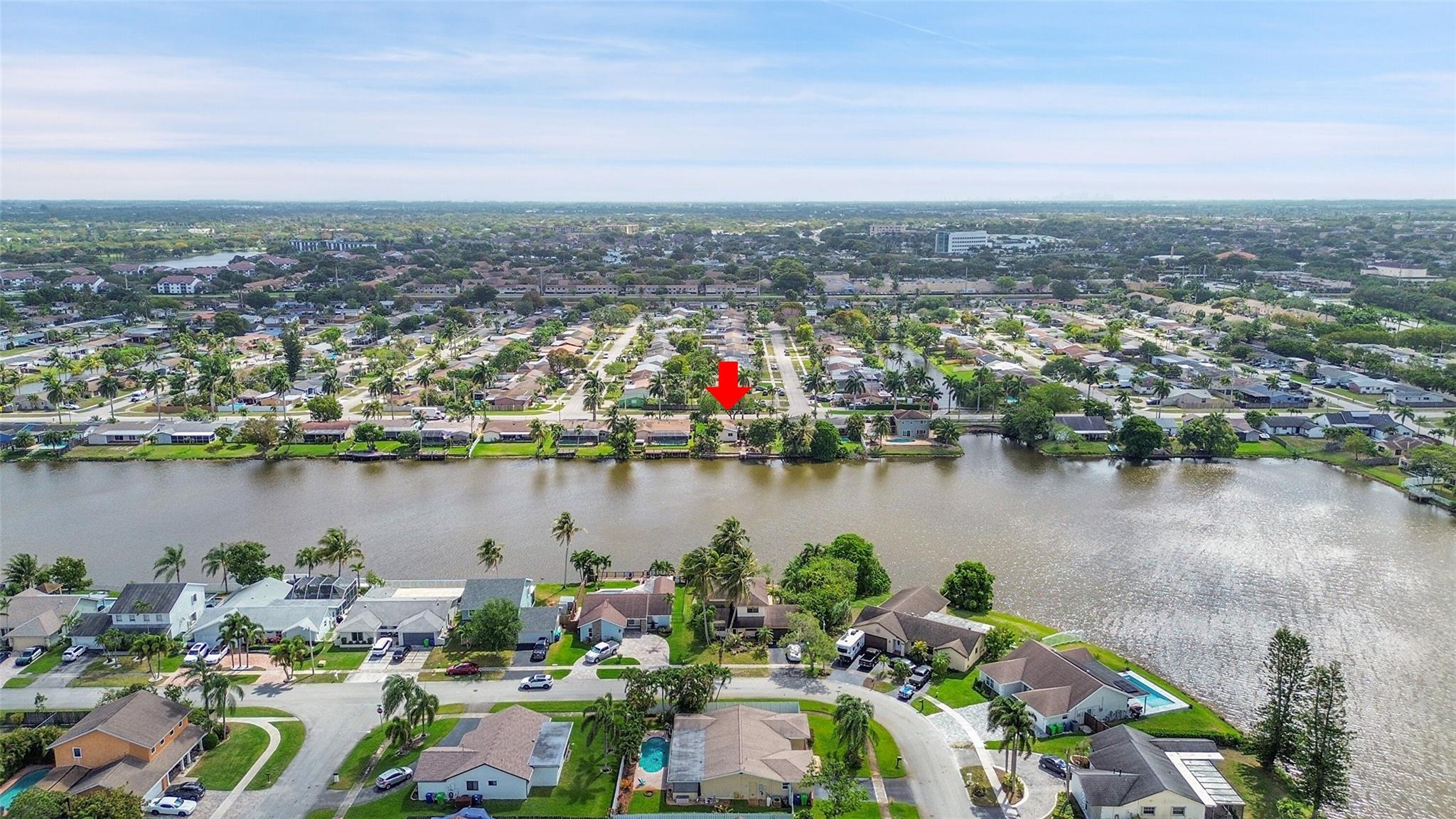 Gorgeous water view from this 3 Bedroom/ 2 Bathroom house with 2-car garage on the wide canal in Sunrise Golf Village. No HOA! Kitchen has Granite countertops, wood cabinetry, and a gas range. Neutral tile flooring throughout with carpet in the master bedroom. Gas water heater. Central AC 2021. New sprinkler pump which is fed off the canal. Split bedroom plan. Combination of hurricane panels and a few Impact windows. Huge screened in back patio with insulated roof and gutters. Circle driveway. Big back yard with plenty of room for a pool.