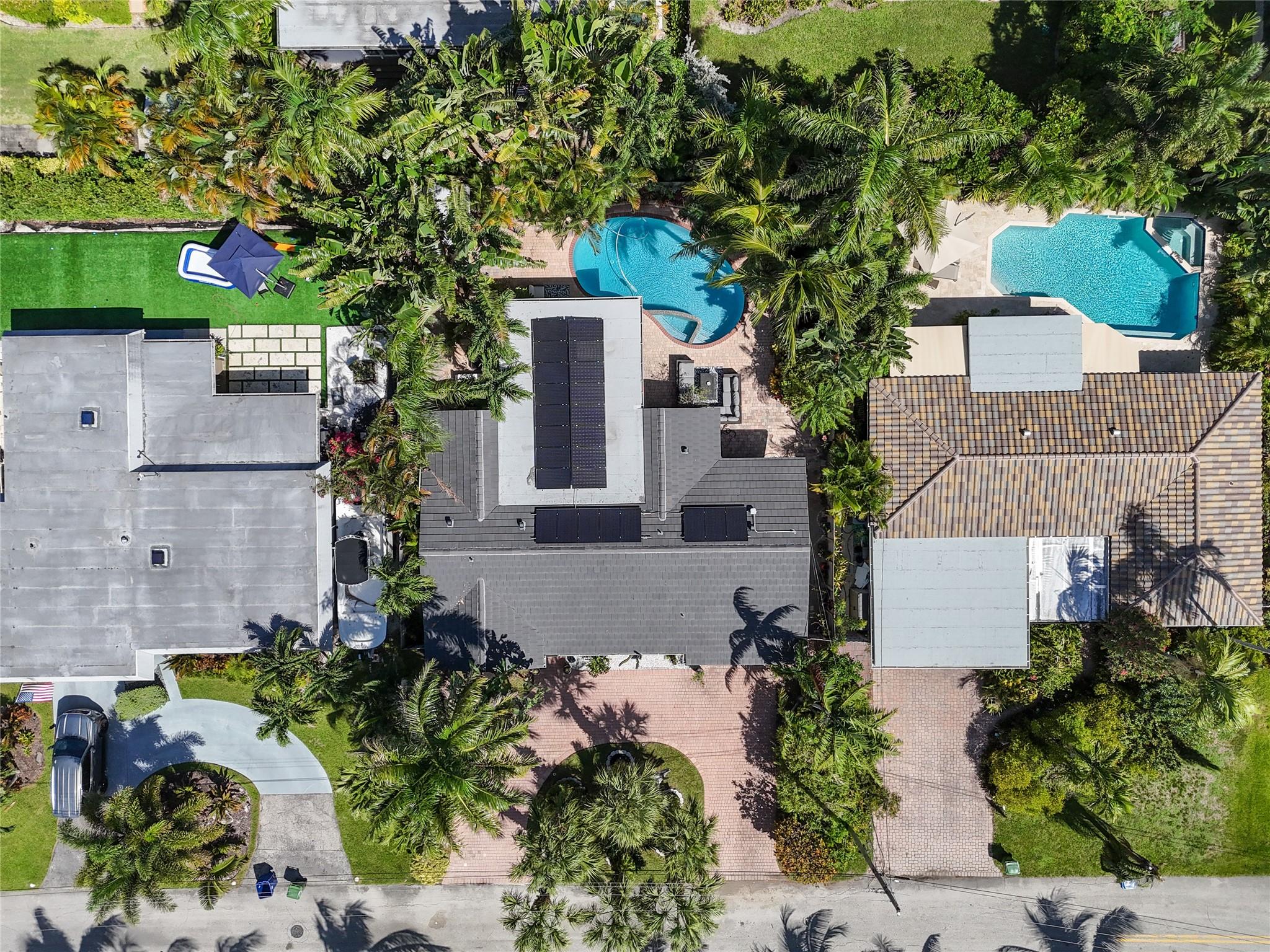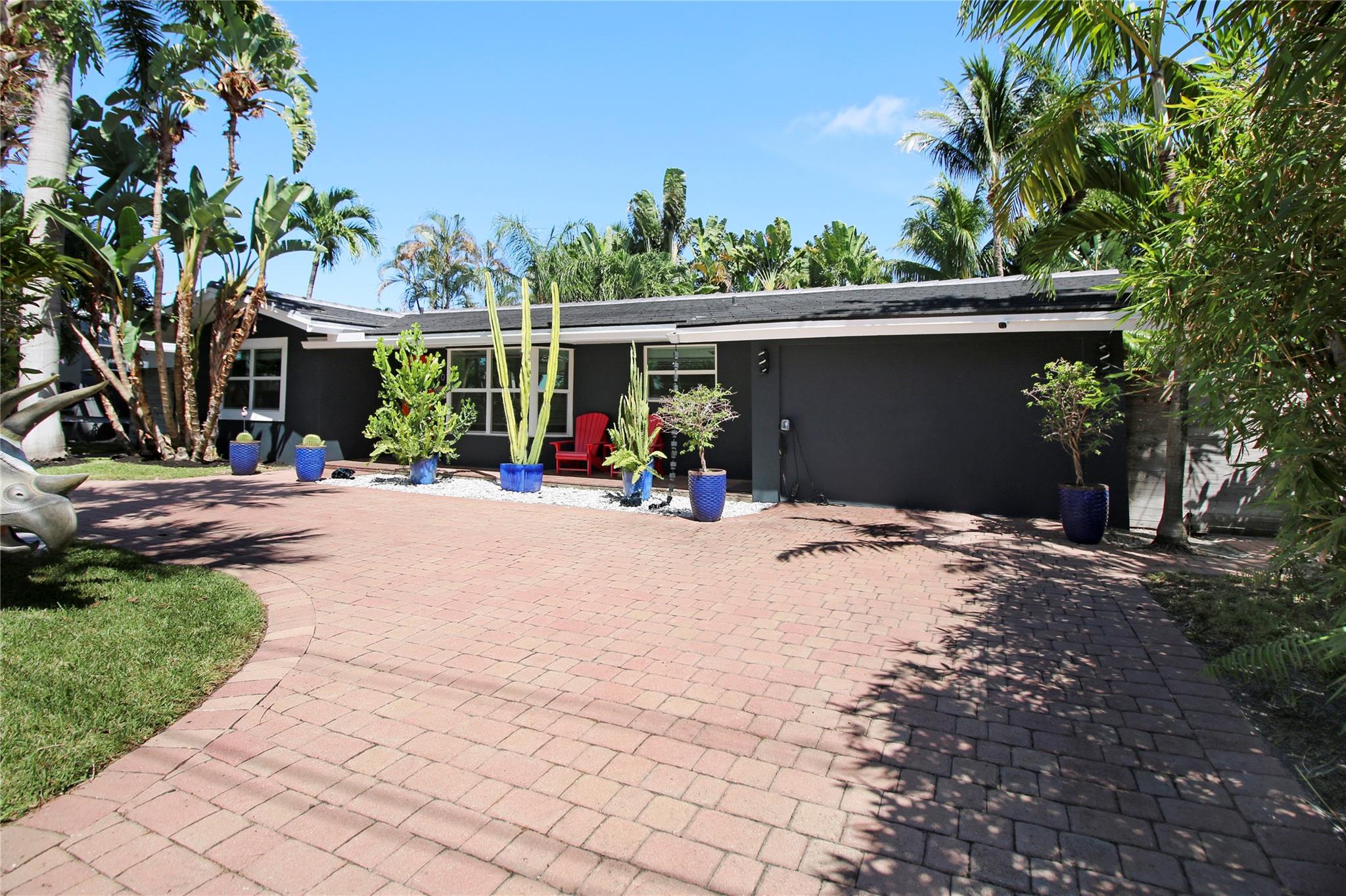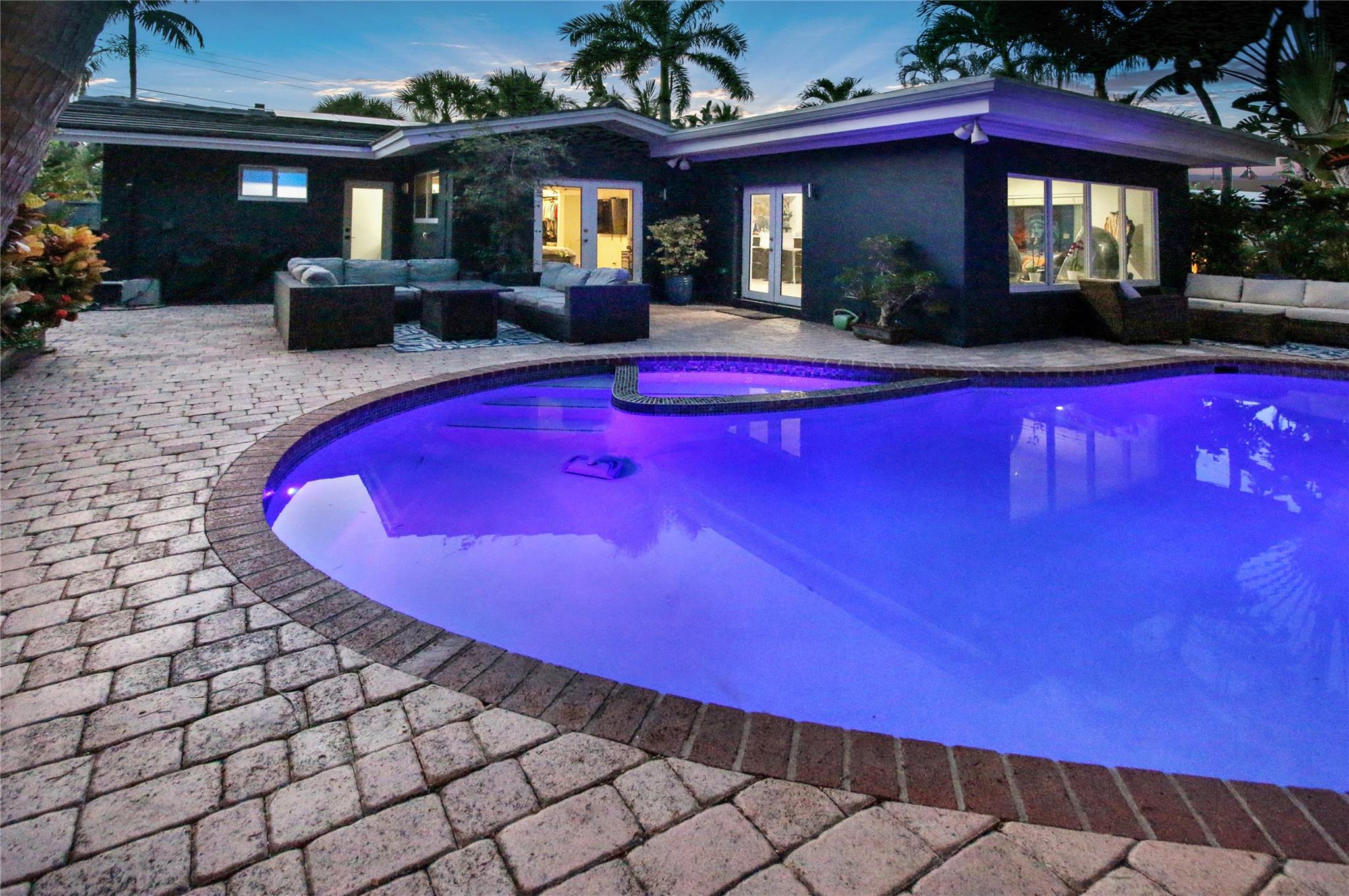 Stylish and efficient, this home boasts a new flat tile roof, impact windows and doors, underground PVC plumbing and solar panels. Meticulously maintained, this Coral Point home sits on a beautifully landscaped lot filled with mature tropical foliage, enhanced by landscape lighting for a serene ambiance. The remodeled kitchen features custom cabinetry and quartz countertops while all three baths have been renovated. There are two primary bedrooms with ensuite baths, one possible as an in-law suite with private outdoor access and the other with French doors opening to the pool. A spacious family room with a wet bar opens to the lushly landscaped backyard which is fenced for total privacy. The outdoor space is a paradise with a heated, saltwater pool, jetted spa and paver-covered patio.