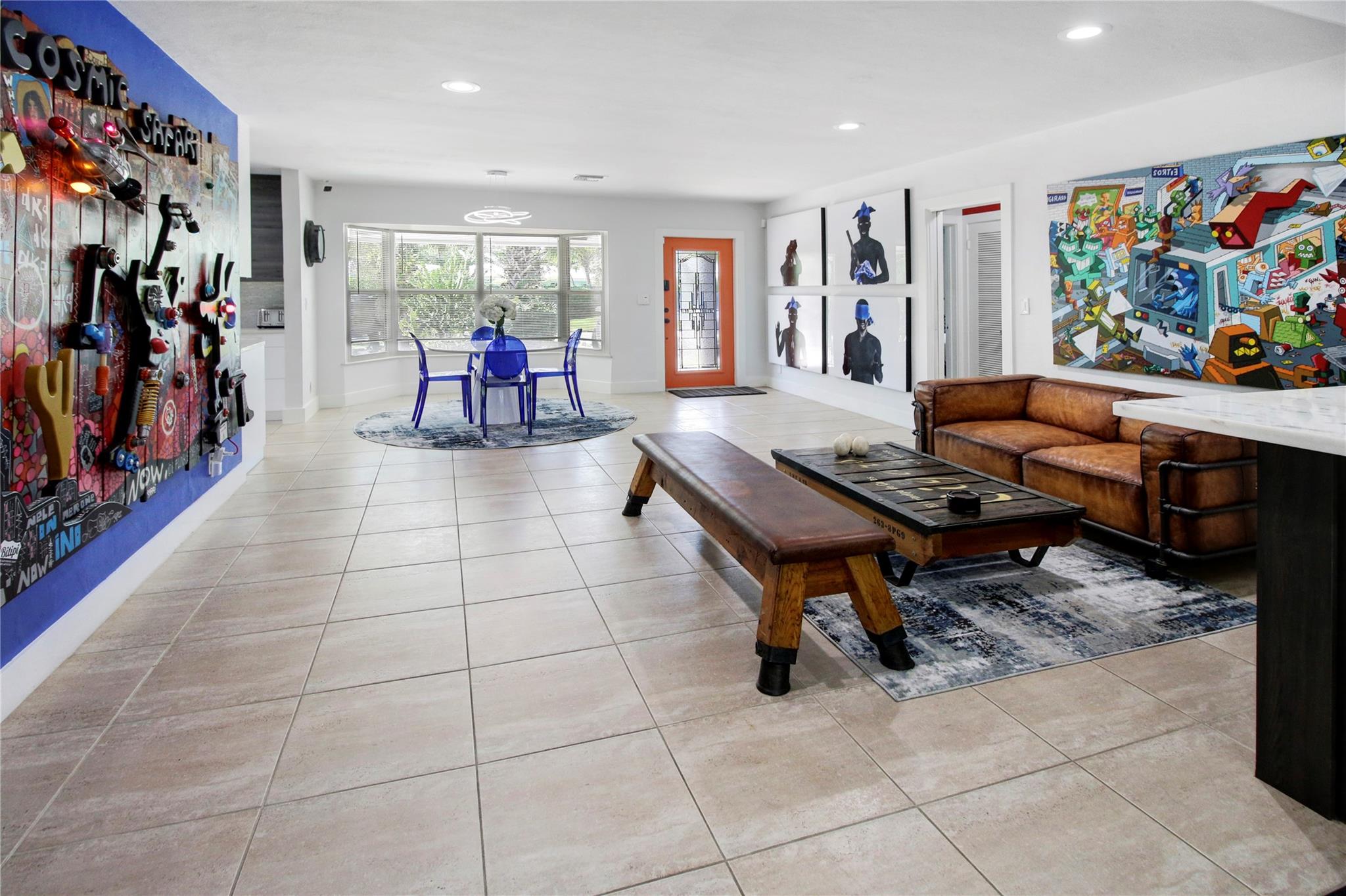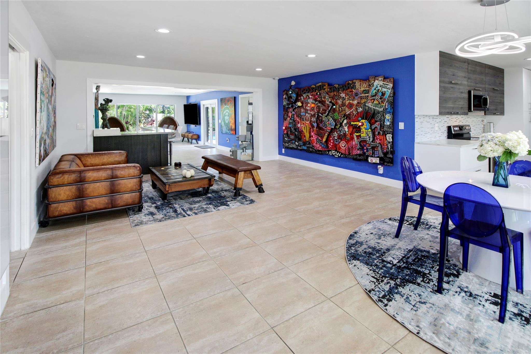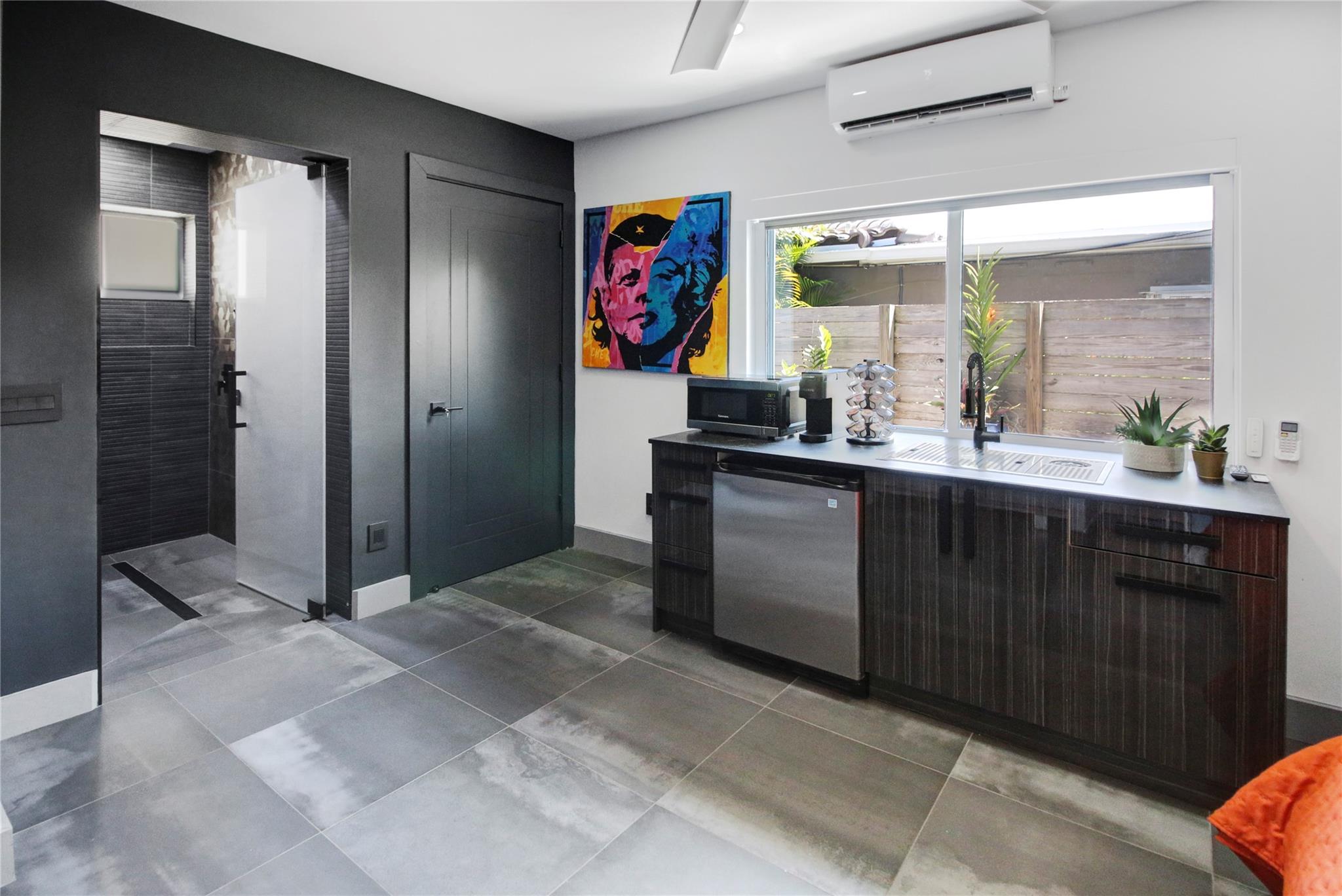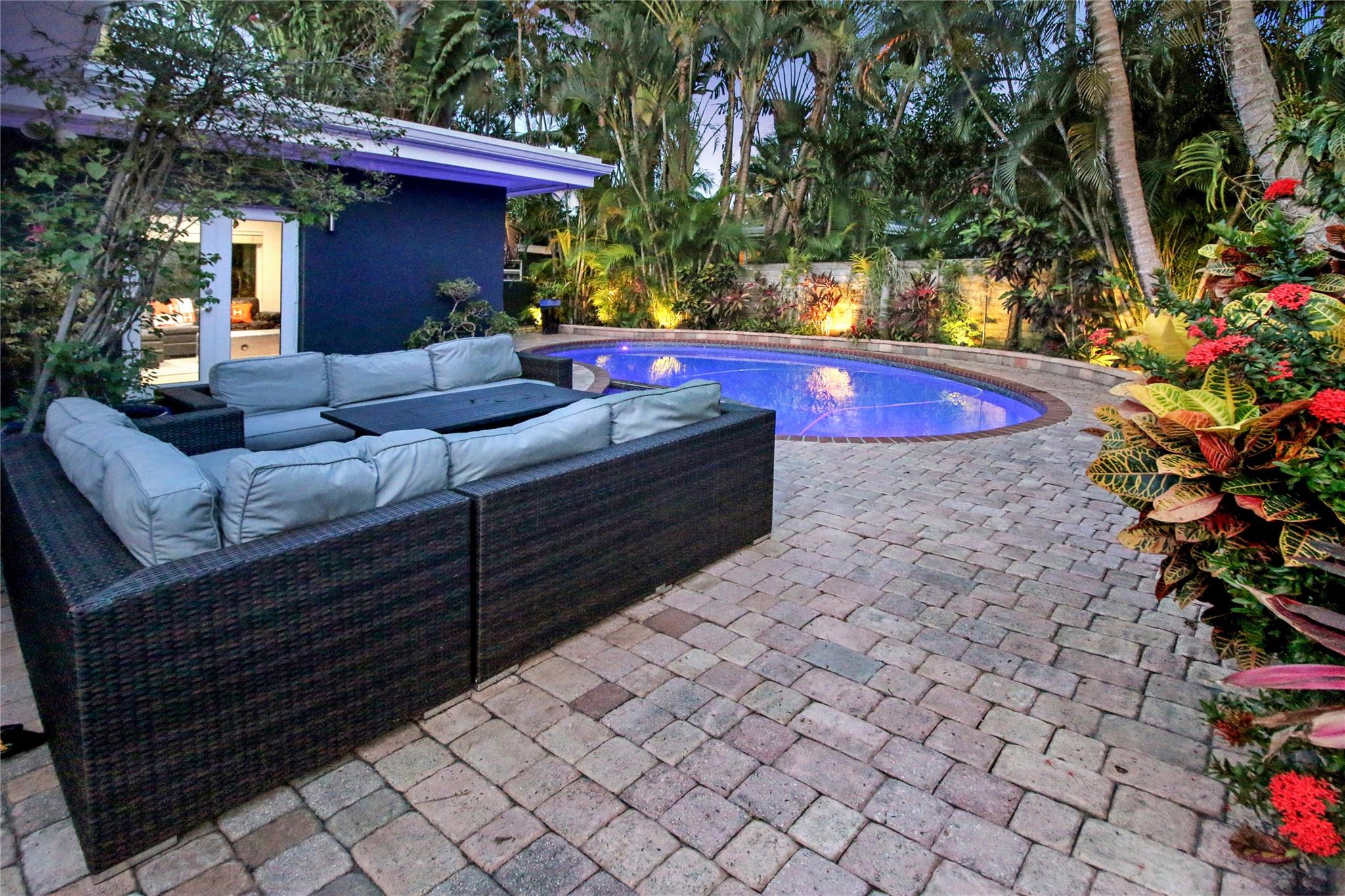 Stylish and efficient, this home boasts a new flat tile roof, impact windows and doors, underground PVC plumbing and solar panels. Meticulously maintained, this Coral Point home sits on a beautifully landscaped lot filled with mature tropical foliage, enhanced by landscape lighting for a serene ambiance. The remodeled kitchen features custom cabinetry and quartz countertops while all three baths have been renovated. There are two primary bedrooms with ensuite baths, one possible as an in-law suite with private outdoor access and the other with French doors opening to the pool. A spacious family room with a wet bar opens to the lushly landscaped backyard which is fenced for total privacy. The outdoor space is a paradise with a heated, saltwater pool, jetted spa and paver-covered patio.