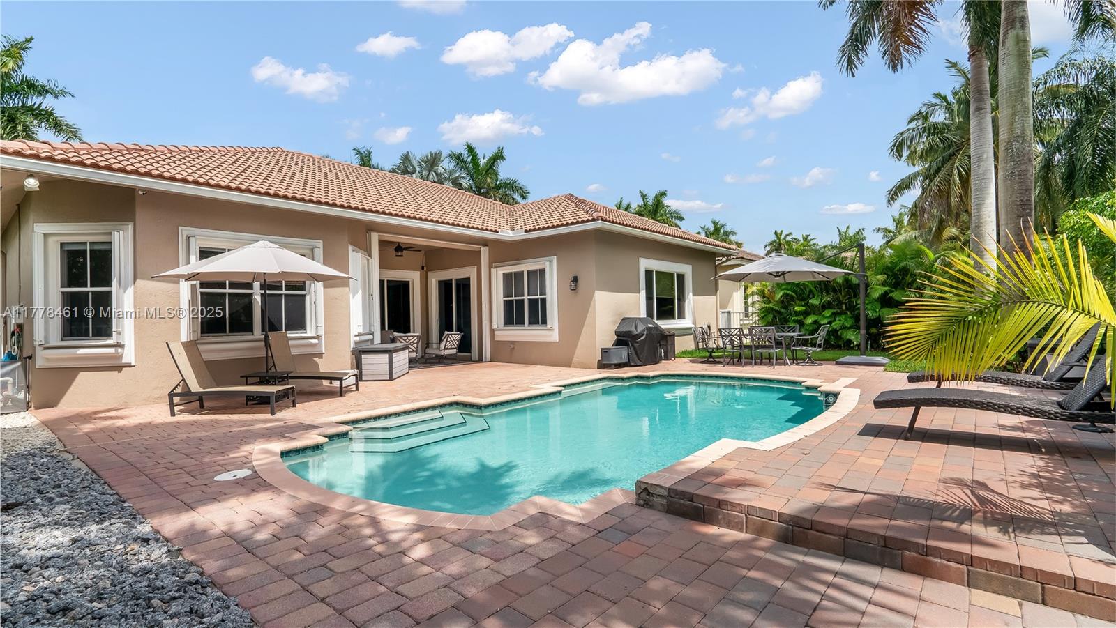 A rated schools. Brand New roof, NEW A/C unit, double oven.microwae, cook top. Exquisite, completely renovated and upgraded two-story home: 5 bdrms + den/office/gym & 3.5 baths! Salt water pool. Master on main floor. with oversize shower. Split floor plan circular driveway. New fllooring and newly renovated bathrooms. Custom-built kitchen w/wine fridge and warming drawer. A gorgeous landscaped tropical paradise with custom beautiful salt water pool, lighting throughout. Accordion shutters and impact glass windows. Custom impact glass double door entry. Custom closets. Security cameras and alarm system included. Walking distance to a beautiful neighborhood park: basketball court, soccer field, and playground. Most desirable neighborhood: Weston Hills Country Club 18 hole golf courses.