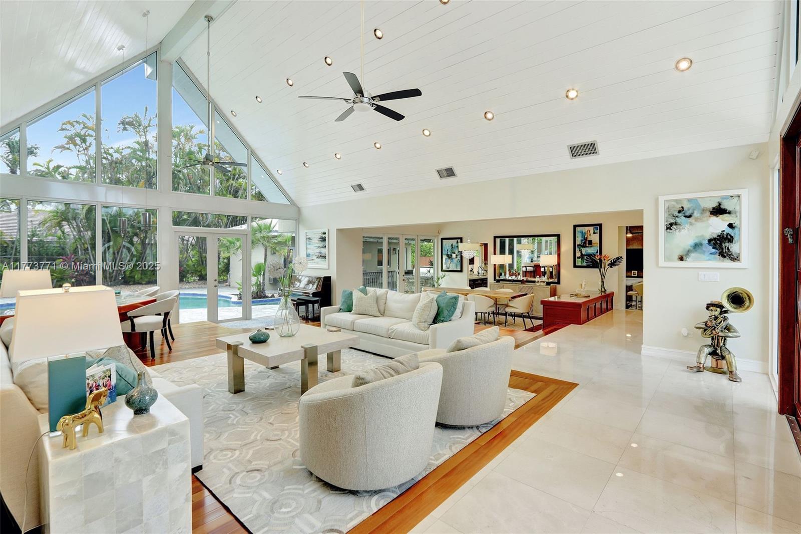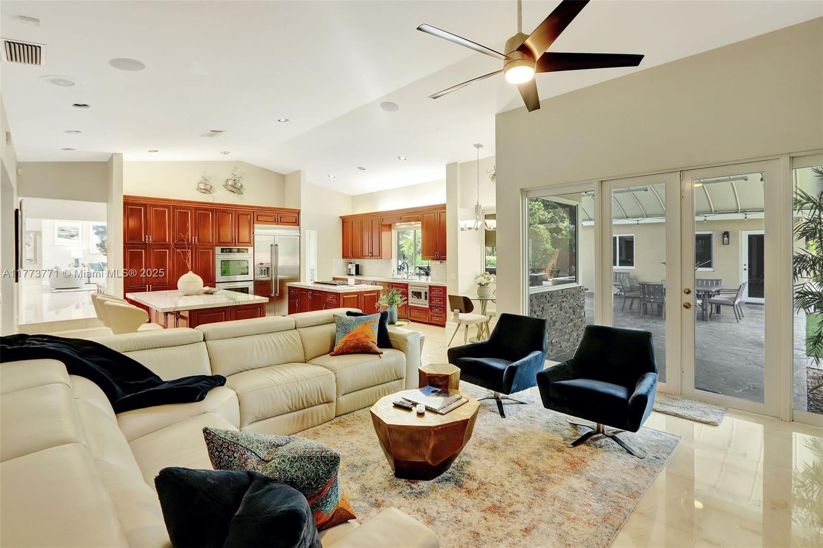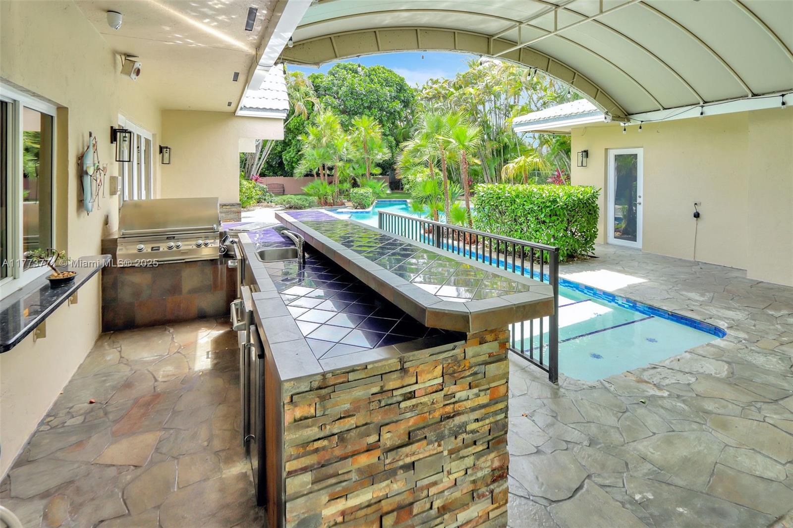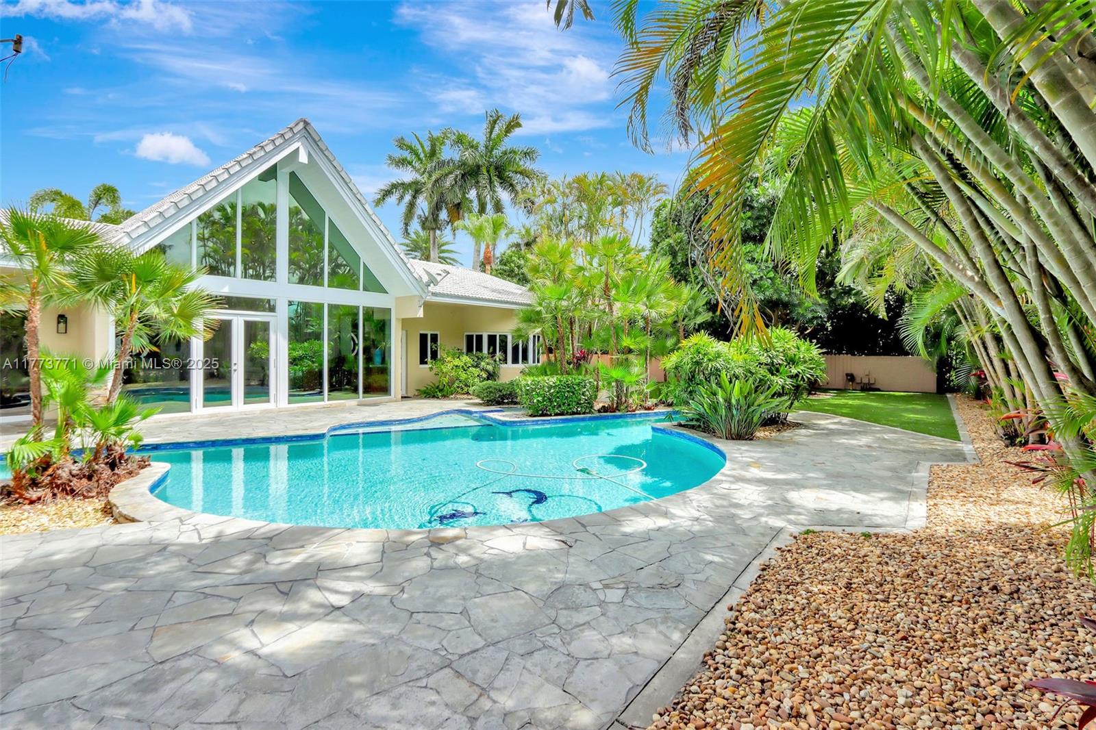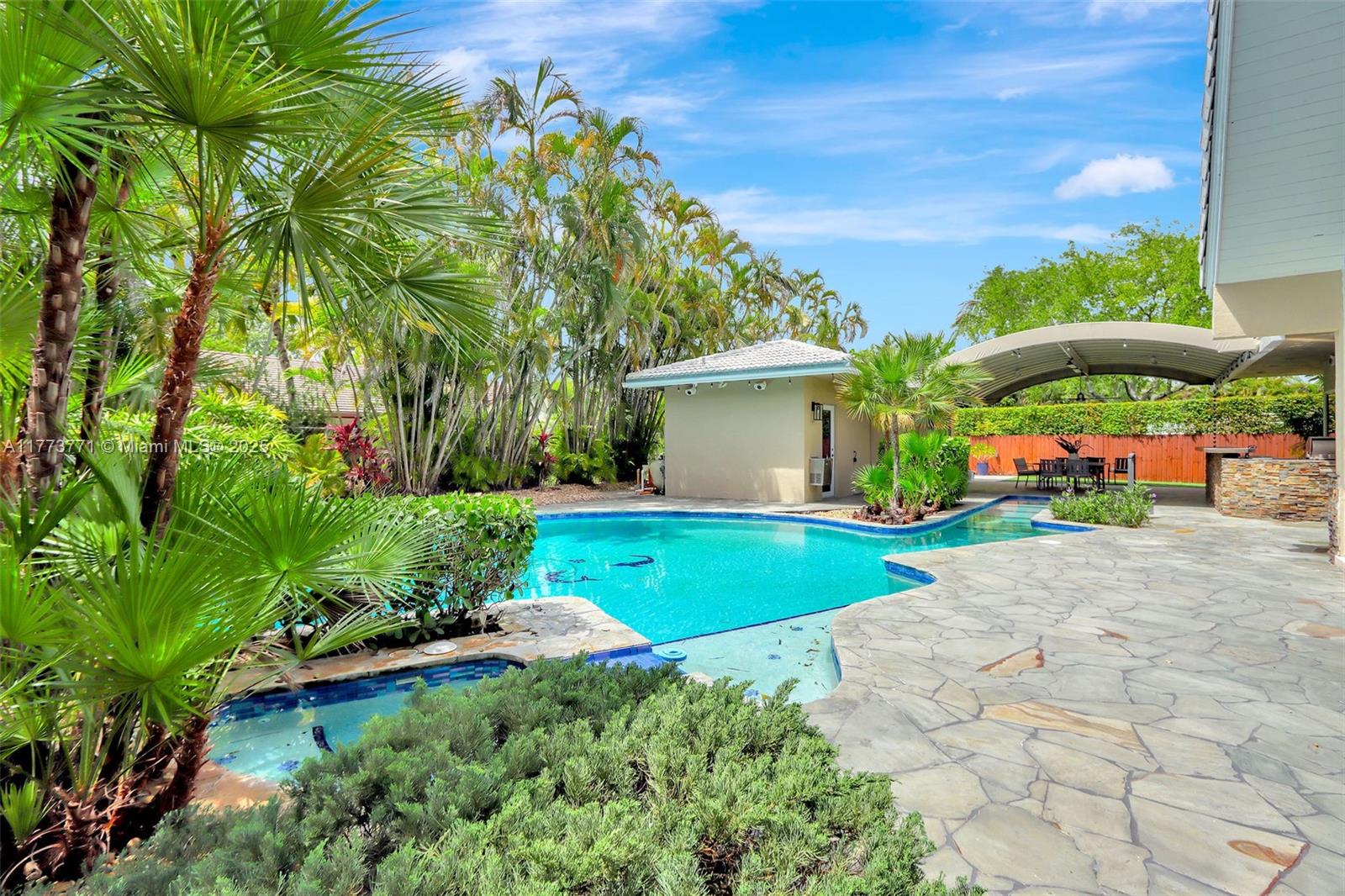 You will love this STUNNING, tastefully appointed 5 bedroom, 4 bath residence situated on a secluded avenue in the Falls area! The unbelievably spacious and open floor plan is designed with beautiful flooring throughout, impact windows and doors, and a private primary retreat. An A-framed wall of glass is the grand centerpiece upon entry, illuminating the living area and inviting you to the gorgeous pool oasis beyond. The amazing, fully equipped gourmet kitchen features two islands, gas cooking, an oversized refrigerator, custom wood cabinetry, and ample storage. The backyard is breathtaking with a resort-style pool, outdoor kitchen, and a SEPARATE 477 sq. ft. GUEST HOUSE with bedroom, bath, and sauna. This one-of-a-kind entertainer's dream home exudes the ultimate lifestyle!
