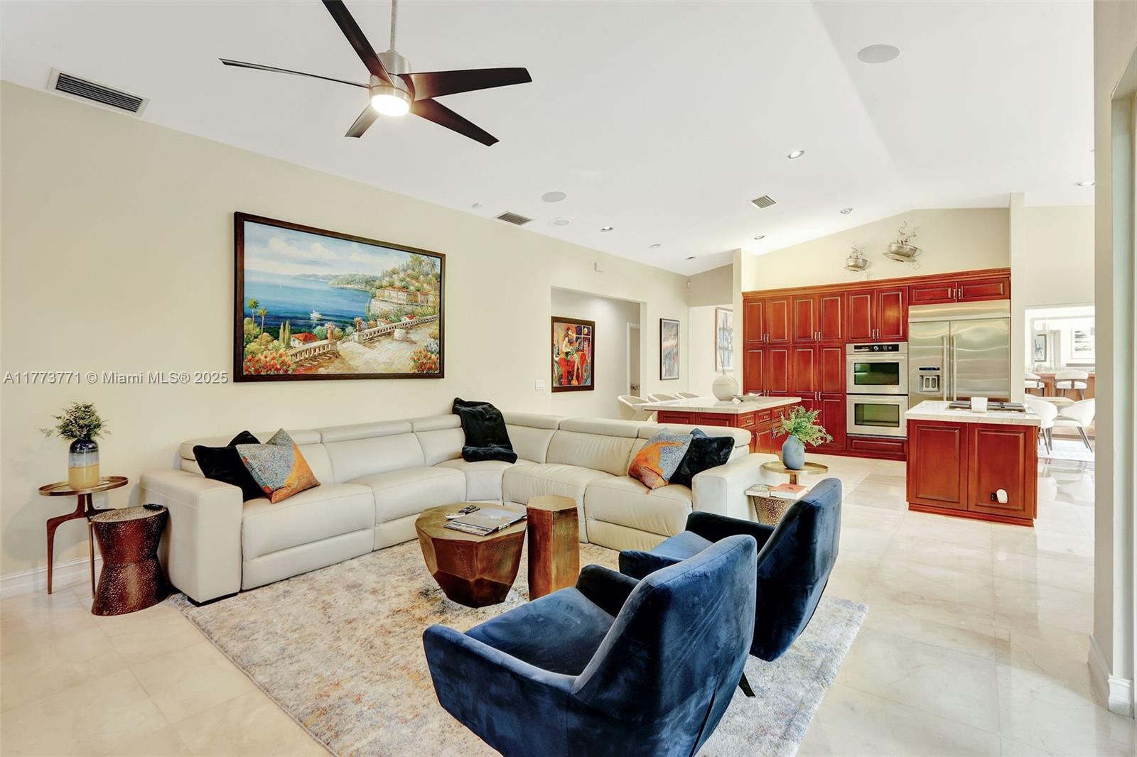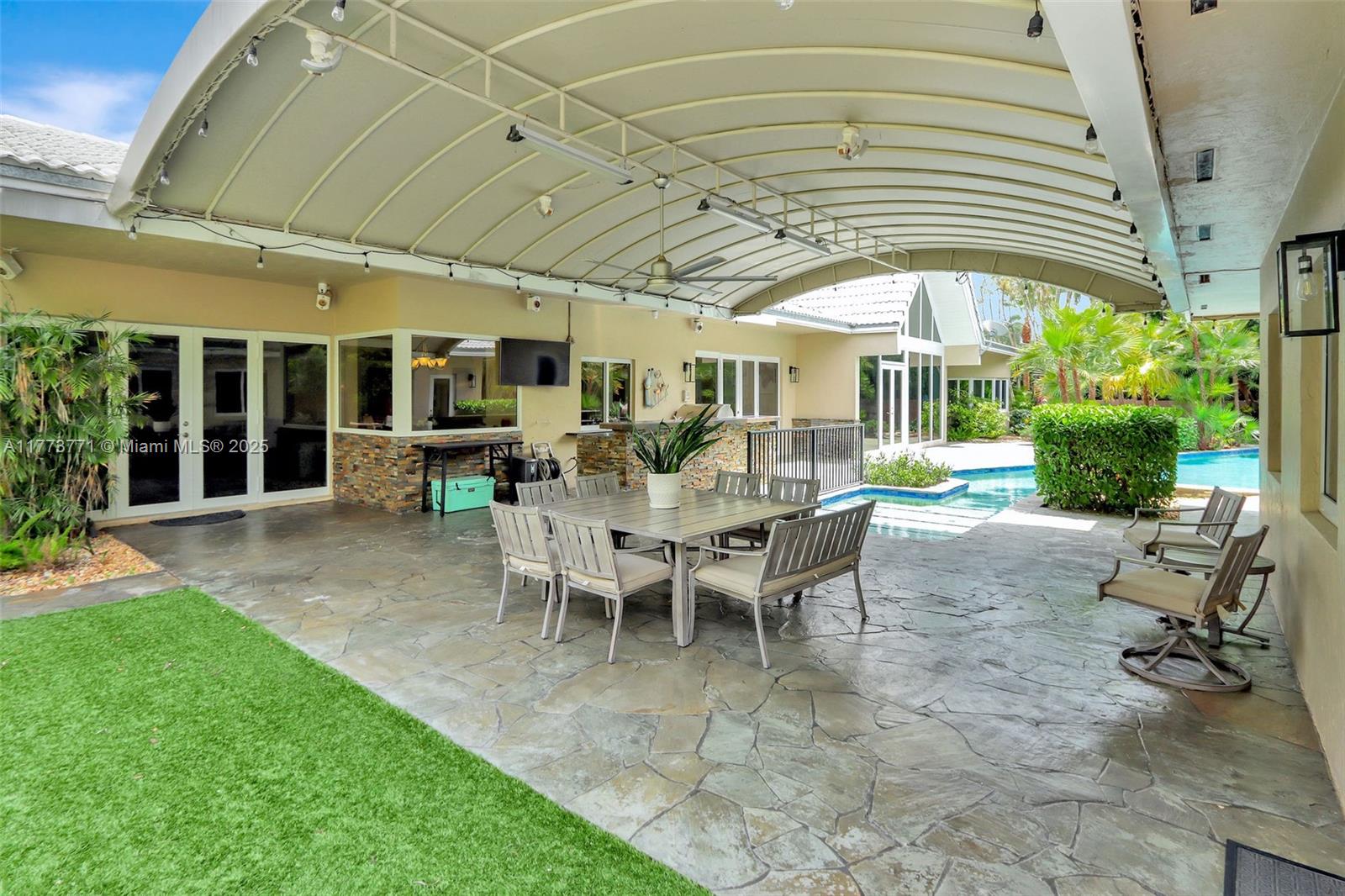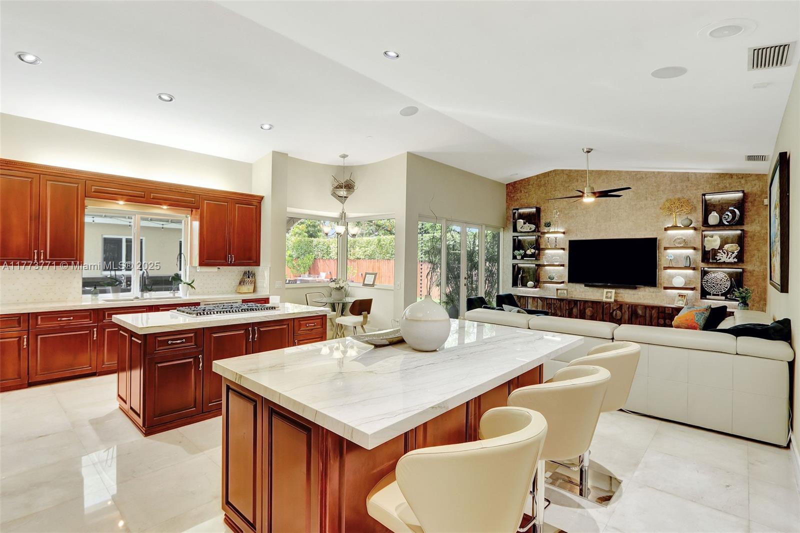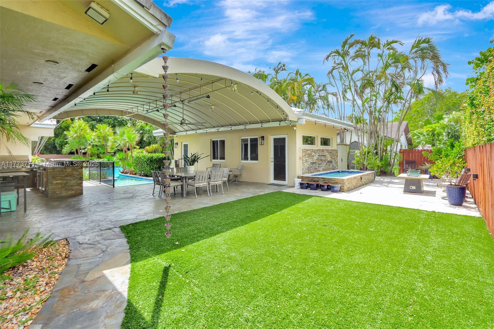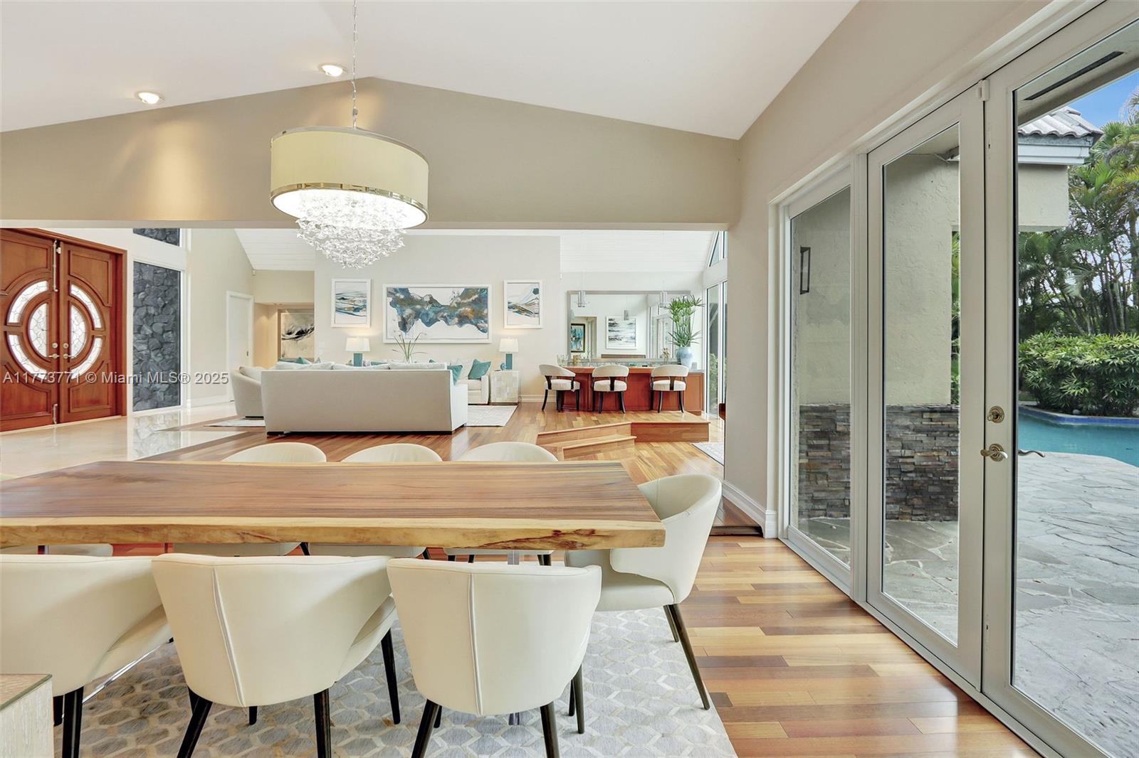 You will love this STUNNING, tastefully appointed 5 bedroom, 4 bath residence situated on a secluded avenue in the Falls area! The unbelievably spacious and open floor plan is designed with beautiful flooring throughout, impact windows and doors, and a private primary retreat. An A-framed wall of glass is the grand centerpiece upon entry, illuminating the living area and inviting you to the gorgeous pool oasis beyond. The amazing, fully equipped gourmet kitchen features two islands, gas cooking, an oversized refrigerator, custom wood cabinetry, and ample storage. The backyard is breathtaking with a resort-style pool, outdoor kitchen, and a SEPARATE 477 sq. ft. GUEST HOUSE with bedroom, bath, and sauna. This one-of-a-kind entertainer's dream home exudes the ultimate lifestyle!