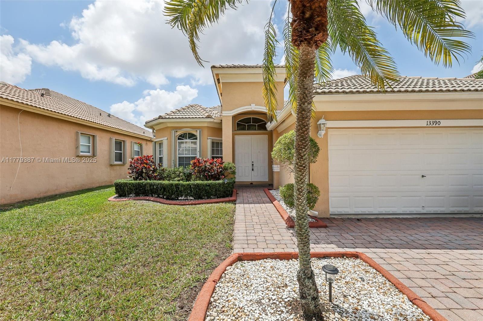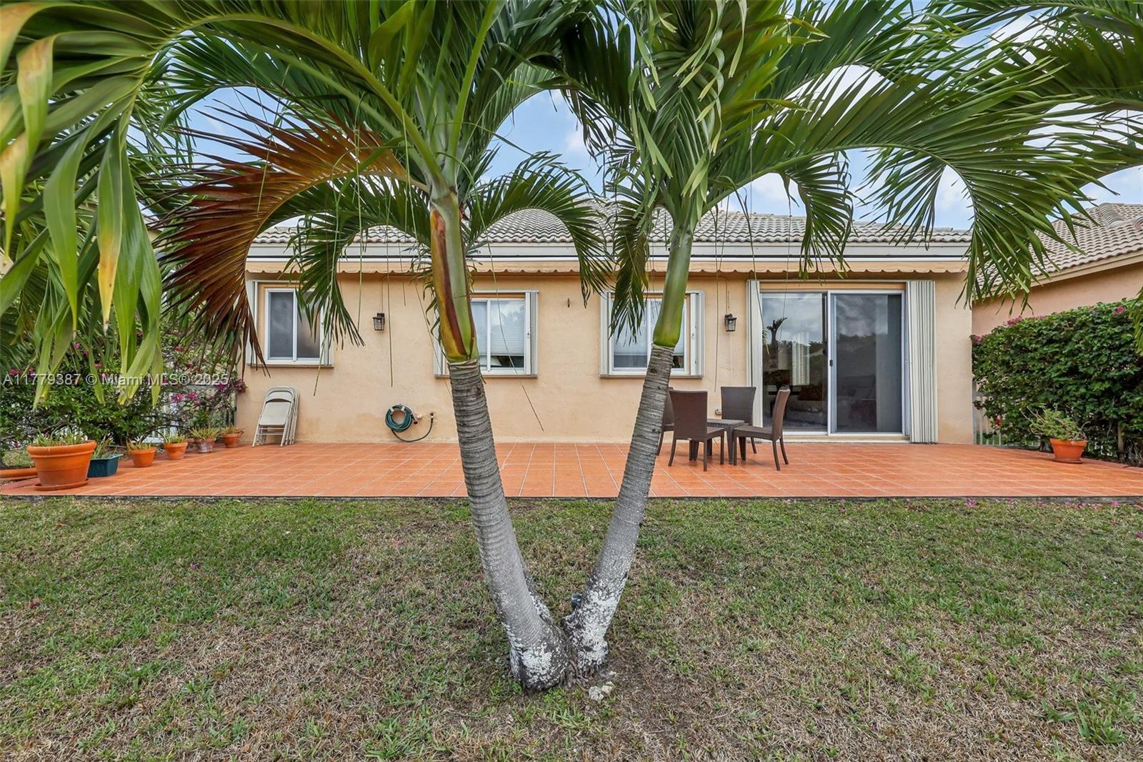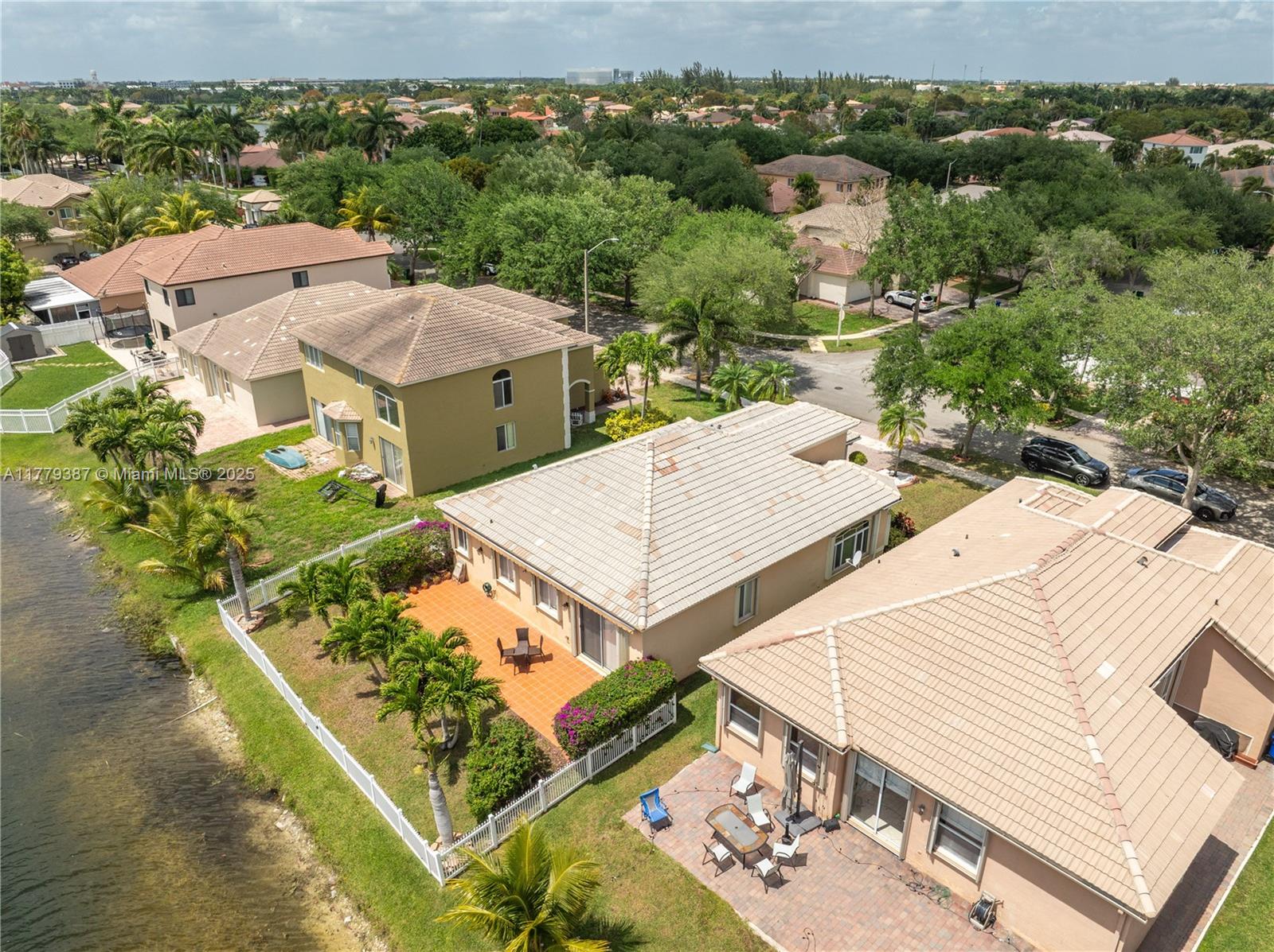 Beautiful home in a gated community with stunning unobstructed lake views. Features cherry wood floors in all bedrooms, custom wall mirrors, and a unique dining area with a framed mirror. Enjoy new stainless steel appliances, including kitchen and garage refrigerators, microwave, stove, dishwasher, and a new washer/dryer. Spacious garage with extra storage, large tiled patio with electric awning—perfect for entertaining. Lush garden with bougainvillea and palms, exterior lighting front and back. Low HOA, great schools, and close to Publix, restaurants, and shops.