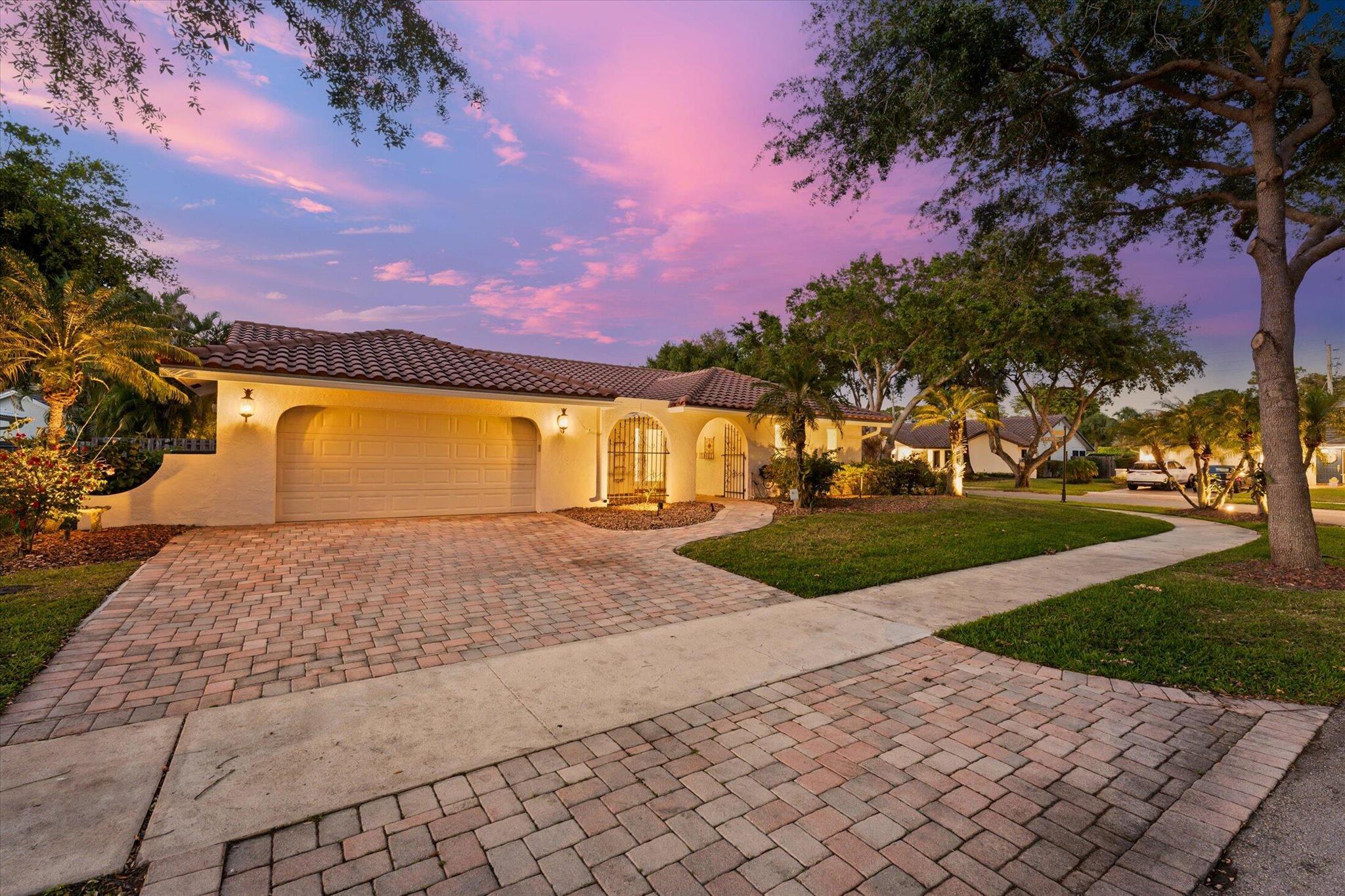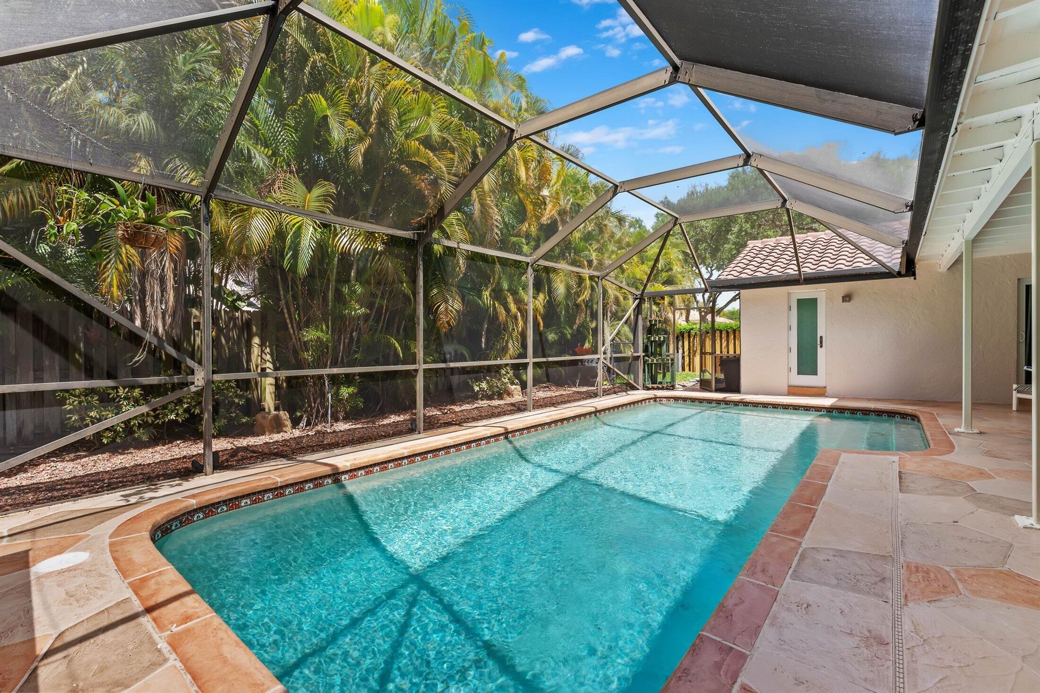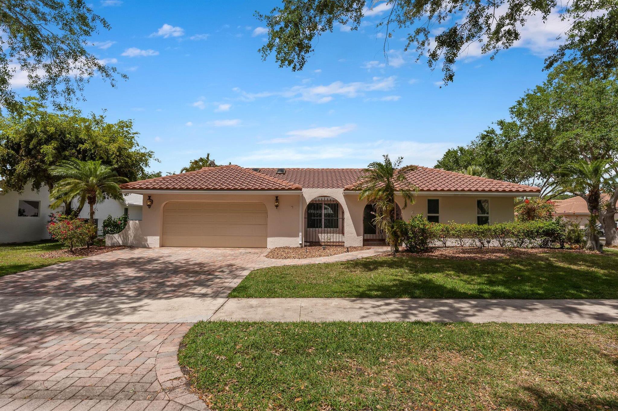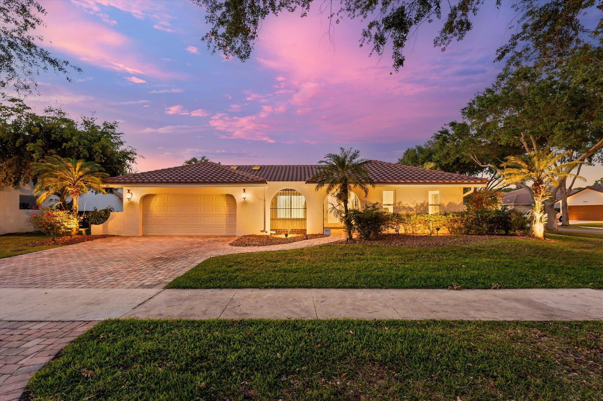 Welcome to your dream home nestled in the picturesque neighborhood of Lakewood Oaks in Boca Raton! This charming single-family residence boasts four spacious bedrooms and two beautifully renovated bathrooms, a family room, separate living room and dining room with skylights, a large kitchen with Pantry and laundry room.Step inside through the front wrought iron entry and open garden into the foyer. You will discover an open concept home with tall ceilings, beautiful Mexican Tile, and a floor plan that can easily accommodate many different living options. The kitchen gleams with stainless steel appliances, a sink overlooking your pool & yard, plus plenty of cabinets, some with glass fronts, granite countertops and breakfast bar area.