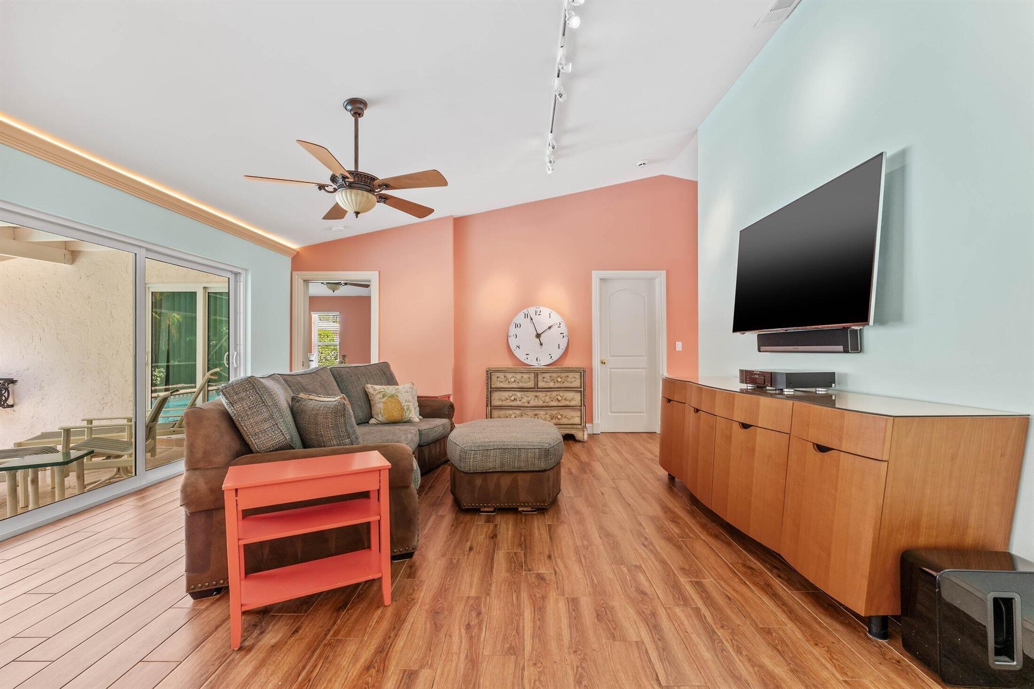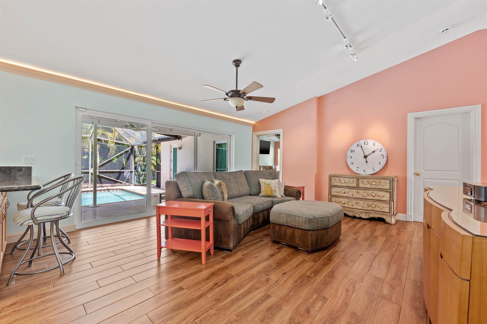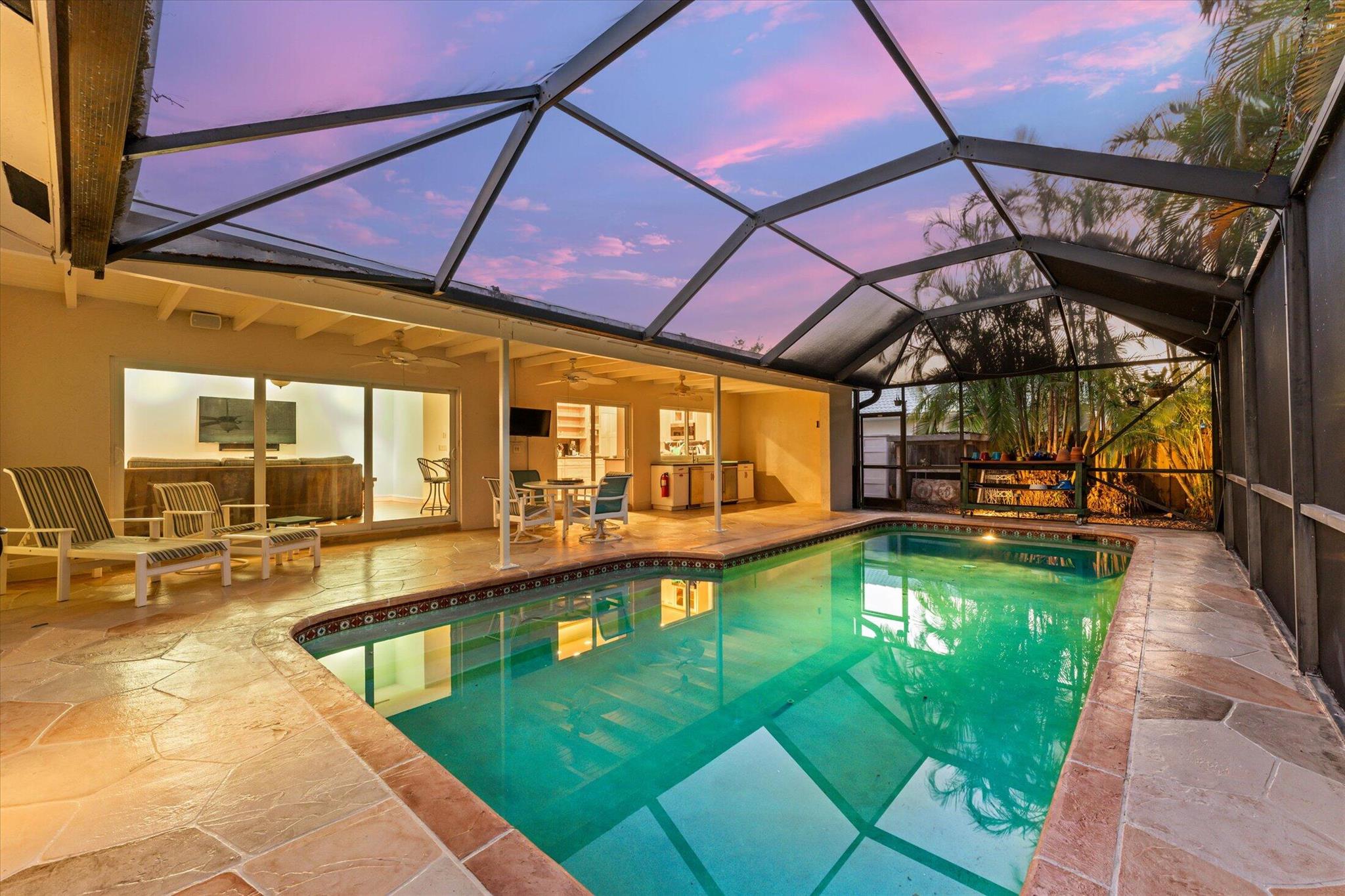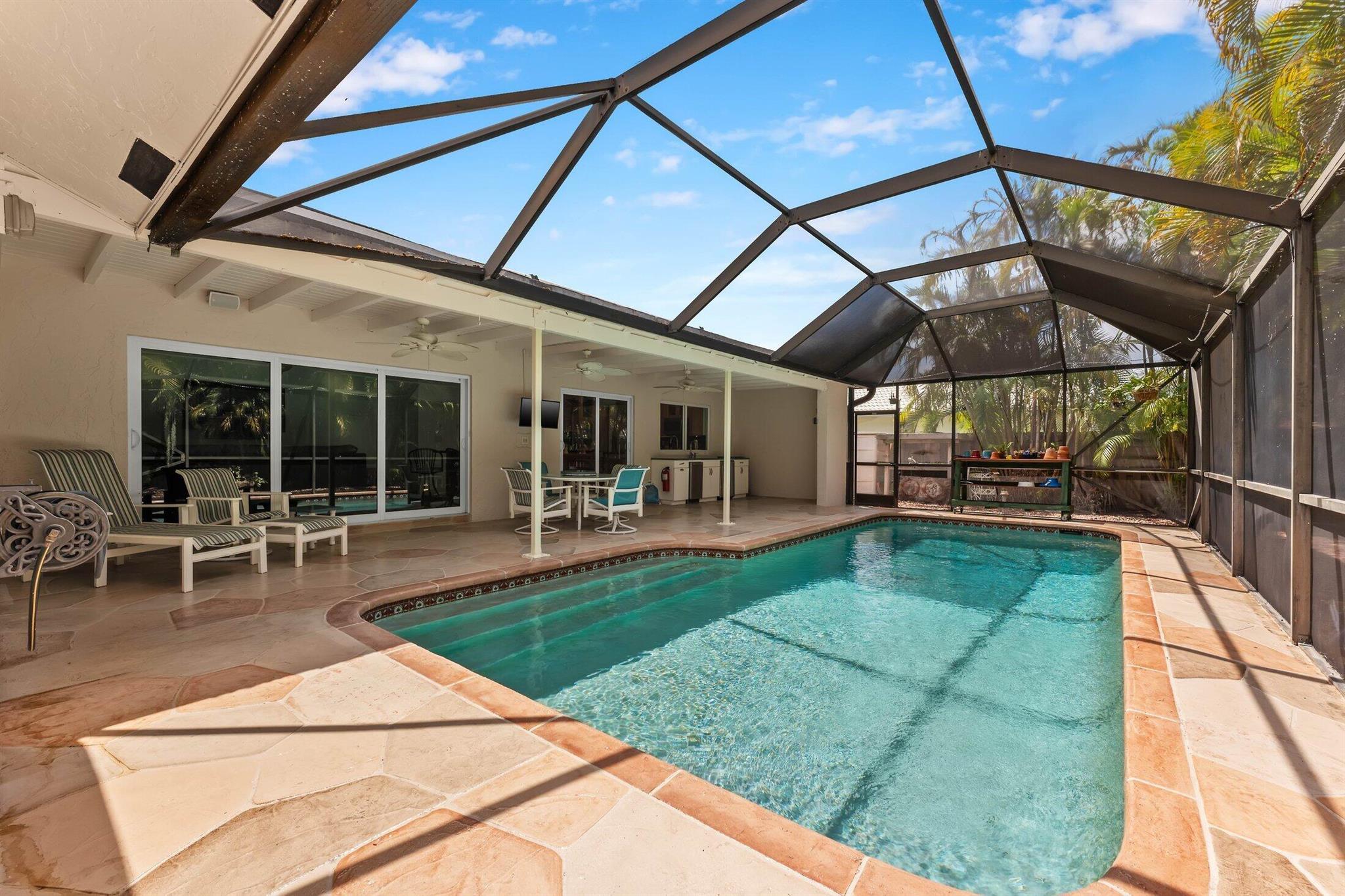 Welcome to your dream home nestled in the picturesque neighborhood of Lakewood Oaks in Boca Raton! This charming single-family residence boasts four spacious bedrooms and two beautifully renovated bathrooms, a family room, separate living room and dining room with skylights, a large kitchen with Pantry and laundry room.Step inside through the front wrought iron entry and open garden into the foyer. You will discover an open concept home with tall ceilings, beautiful Mexican Tile, and a floor plan that can easily accommodate many different living options. The kitchen gleams with stainless steel appliances, a sink overlooking your pool & yard, plus plenty of cabinets, some with glass fronts, granite countertops and breakfast bar area.